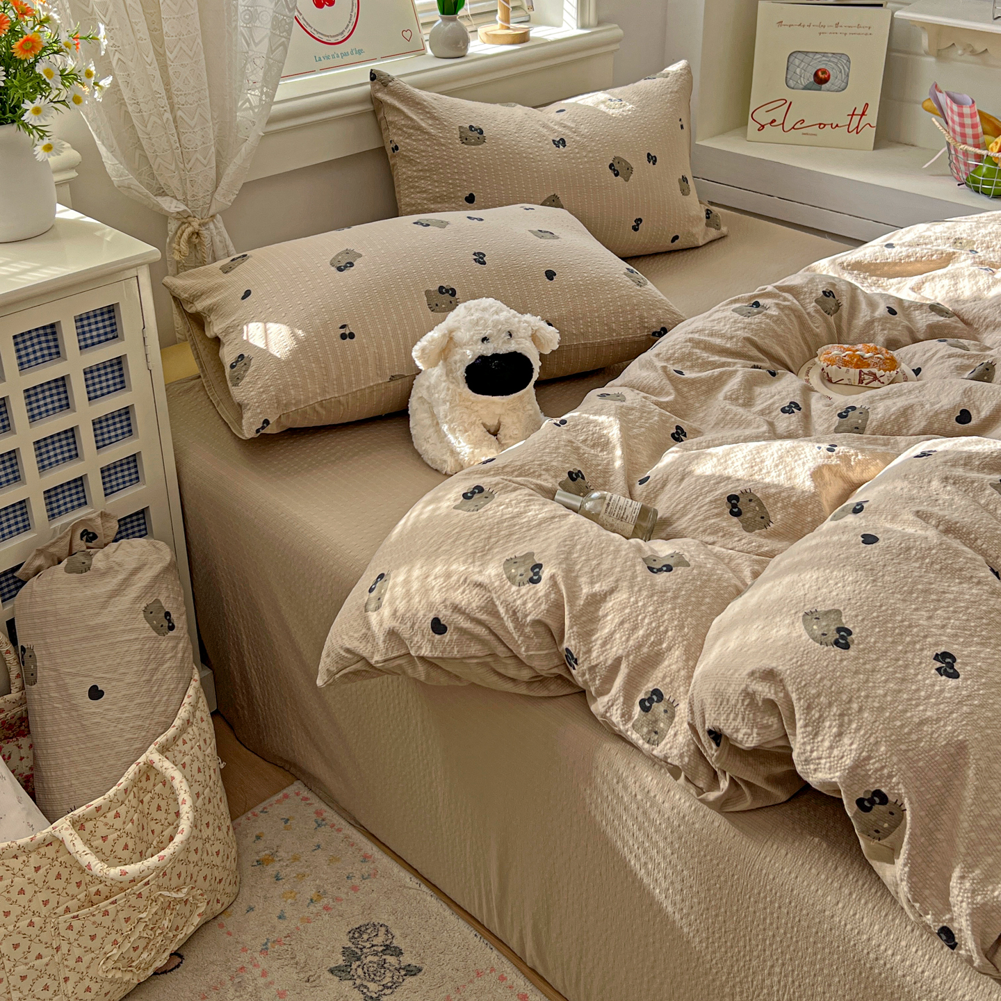 (总)暖伊家居 2026新款澳洲原单仿棉布袋四件套 硬包,腊肠狗,可可糖豆,格韵,野卉春,繁花,樱花可可,咖啡熊,芊朵,米蔷薇,清叙,樱花集,紫蝶