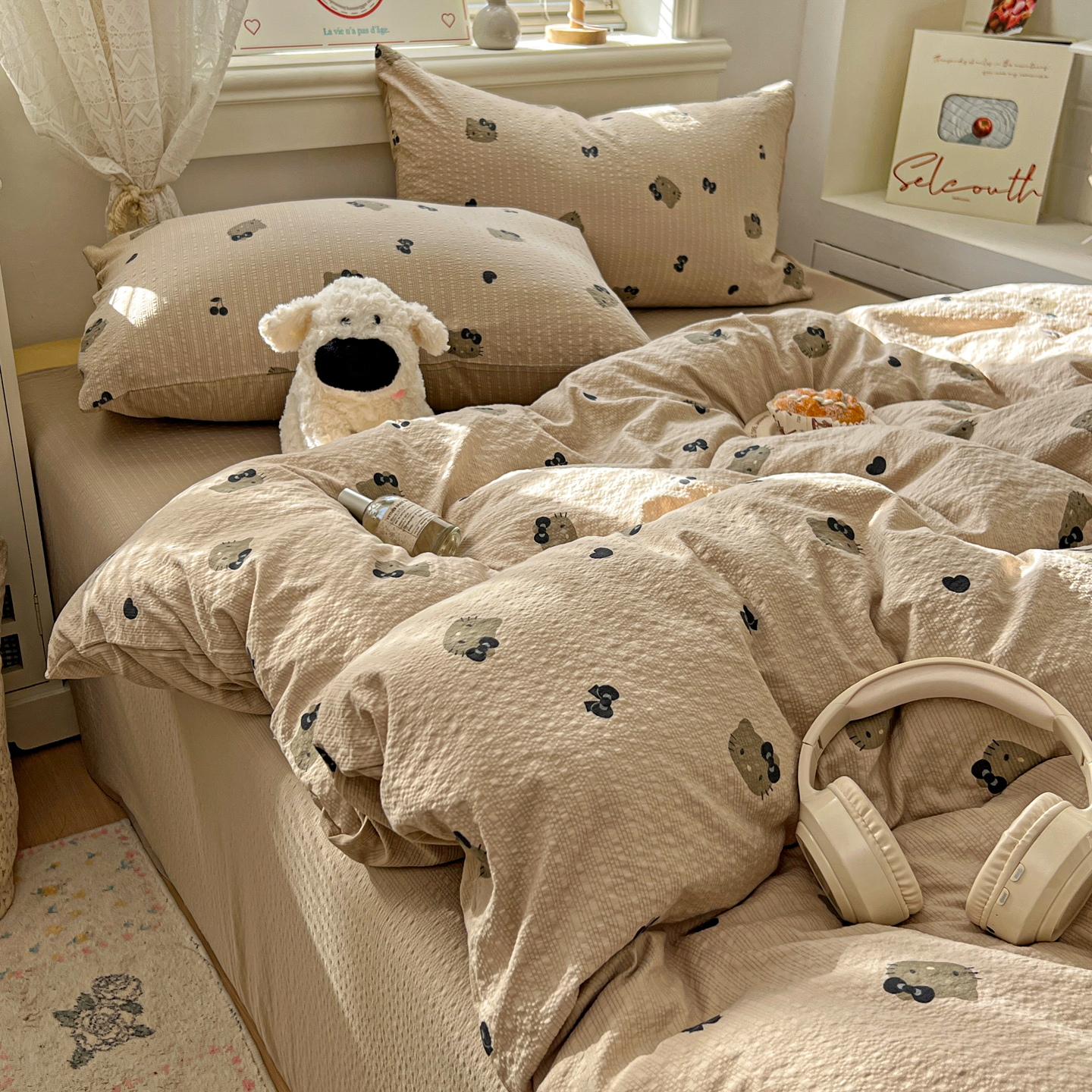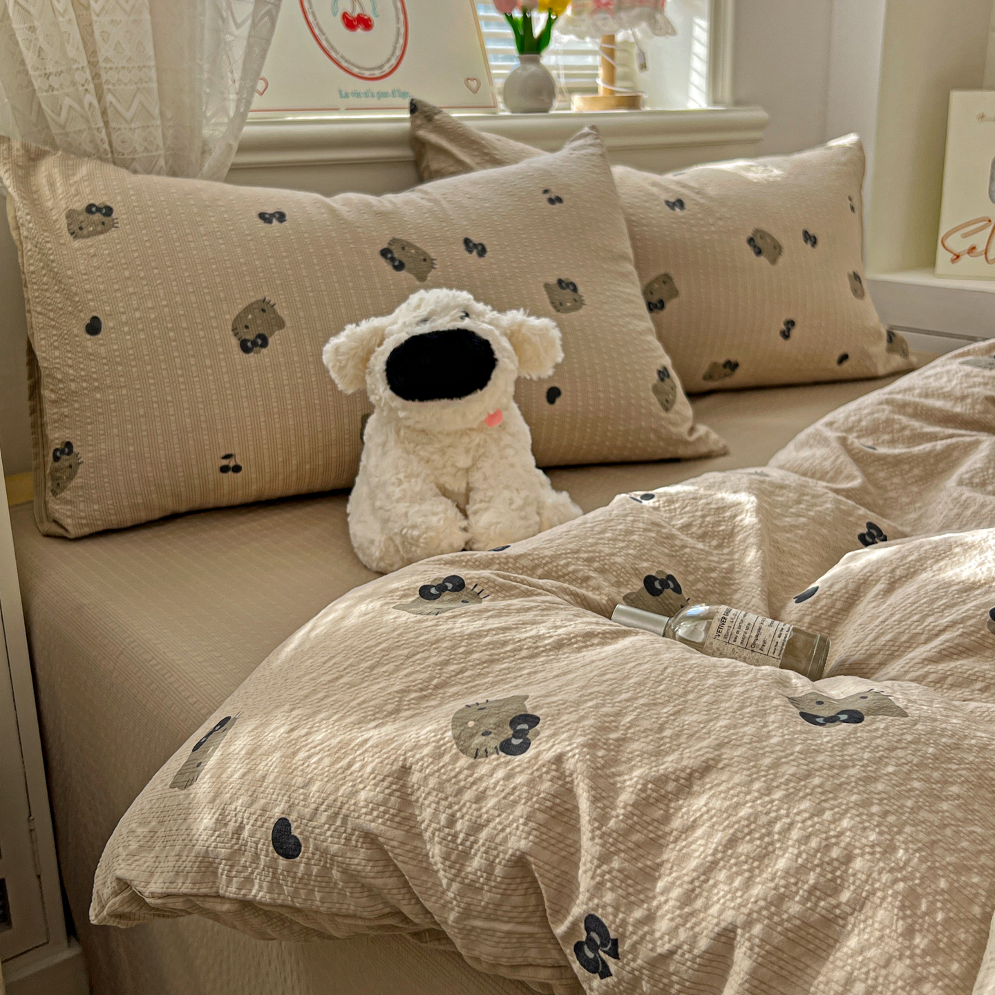 暖伊家居 2026新款糖果小布袋泡芙纱四件套 黑皮KT