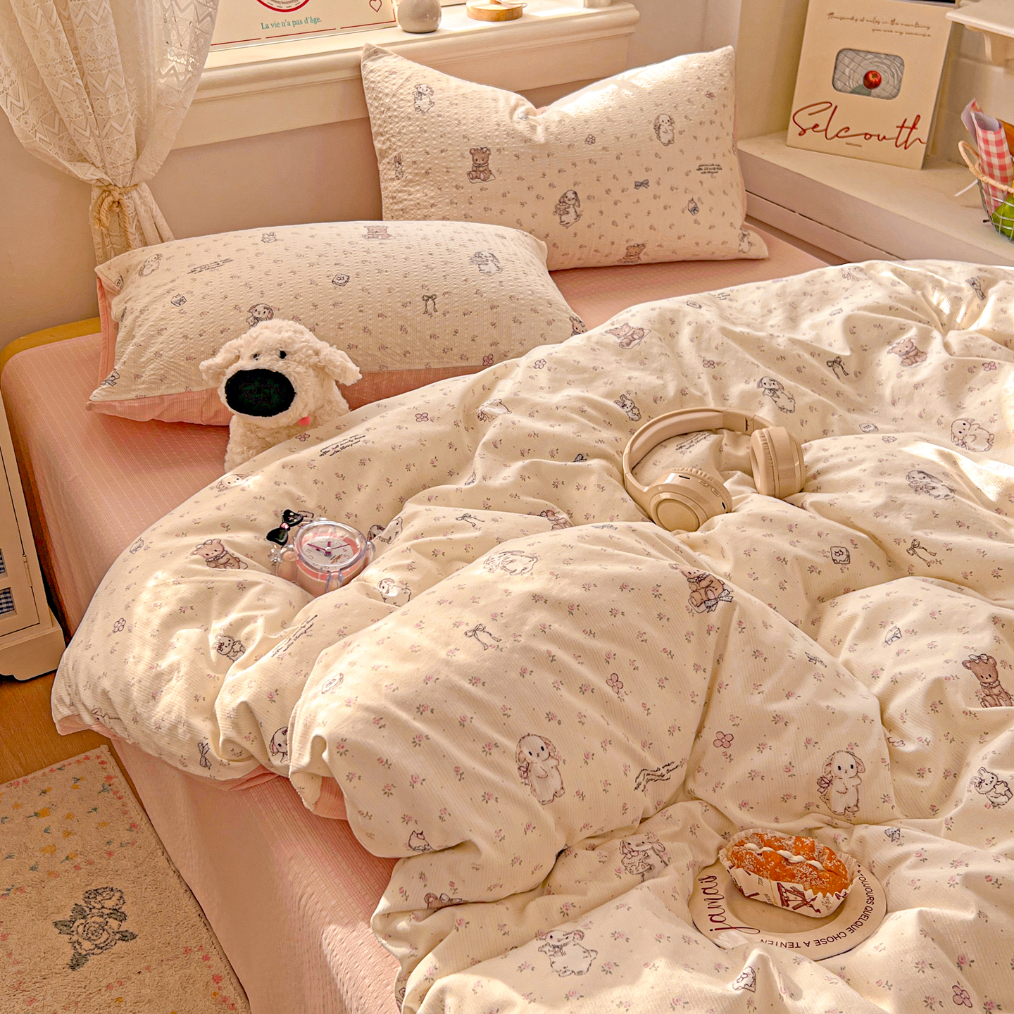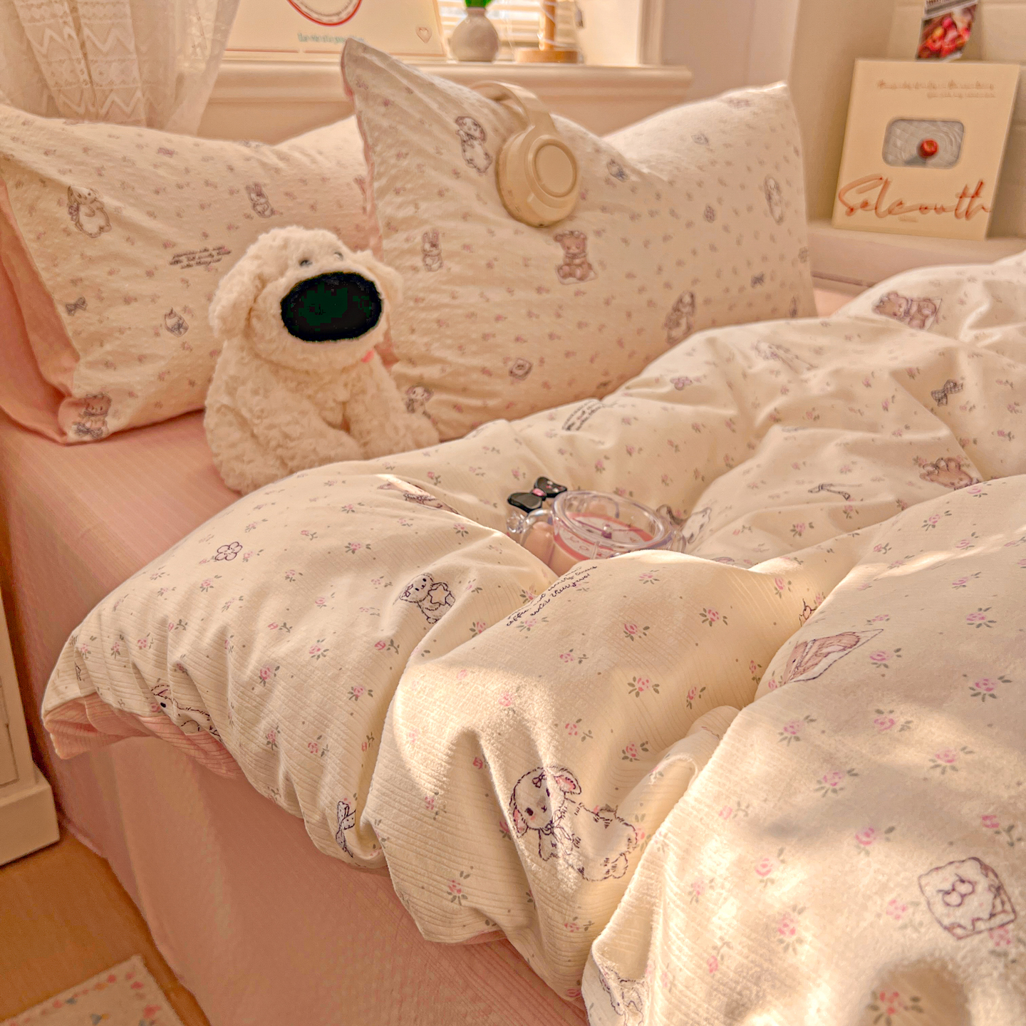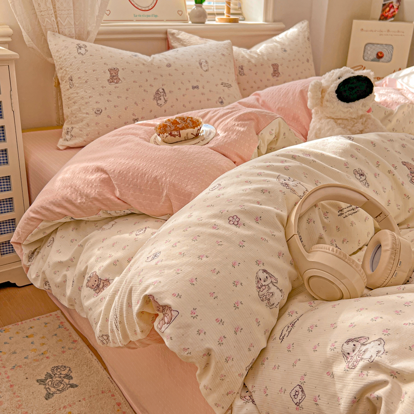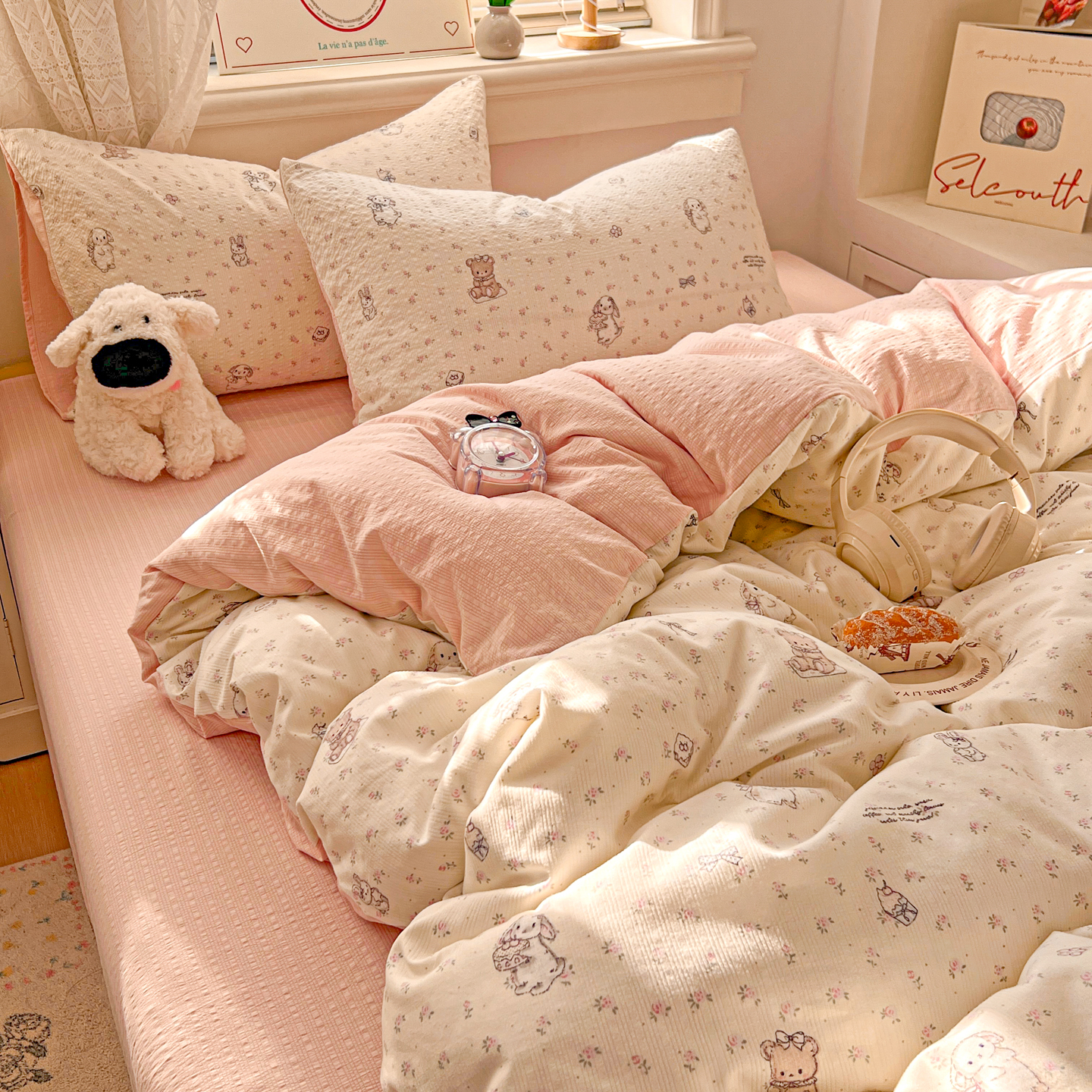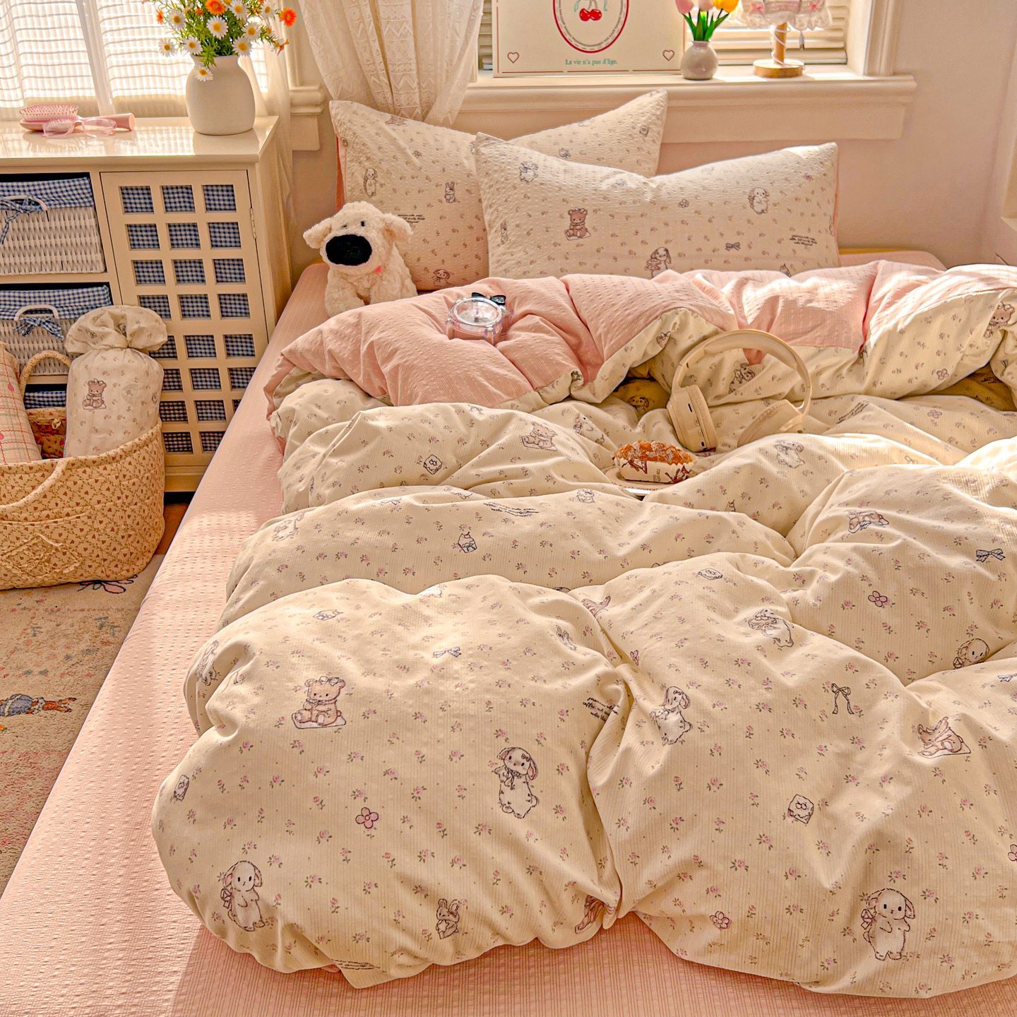 暖伊家居 2026新款糖果小布袋泡芙纱四件套 碎花兔熊