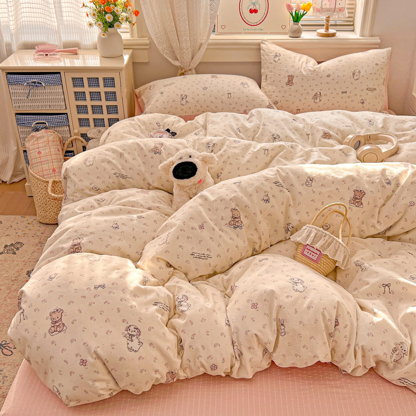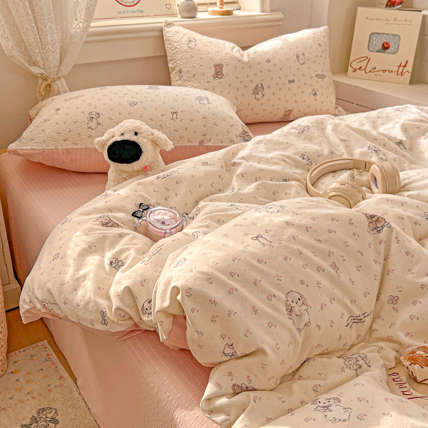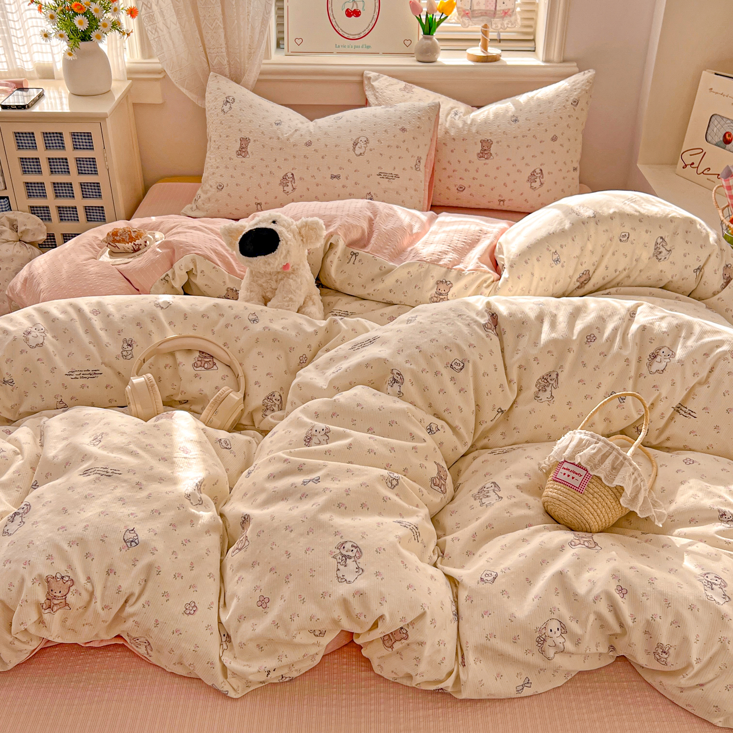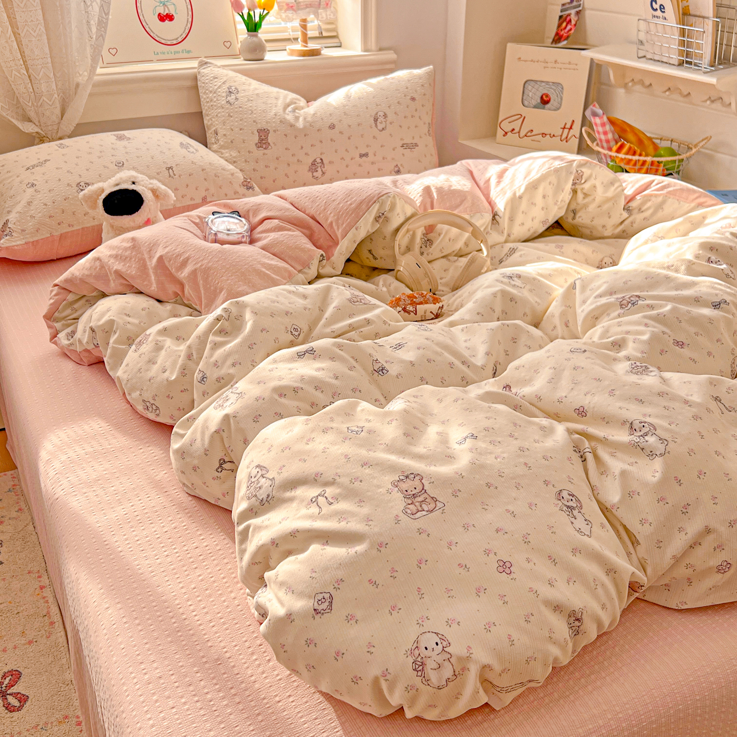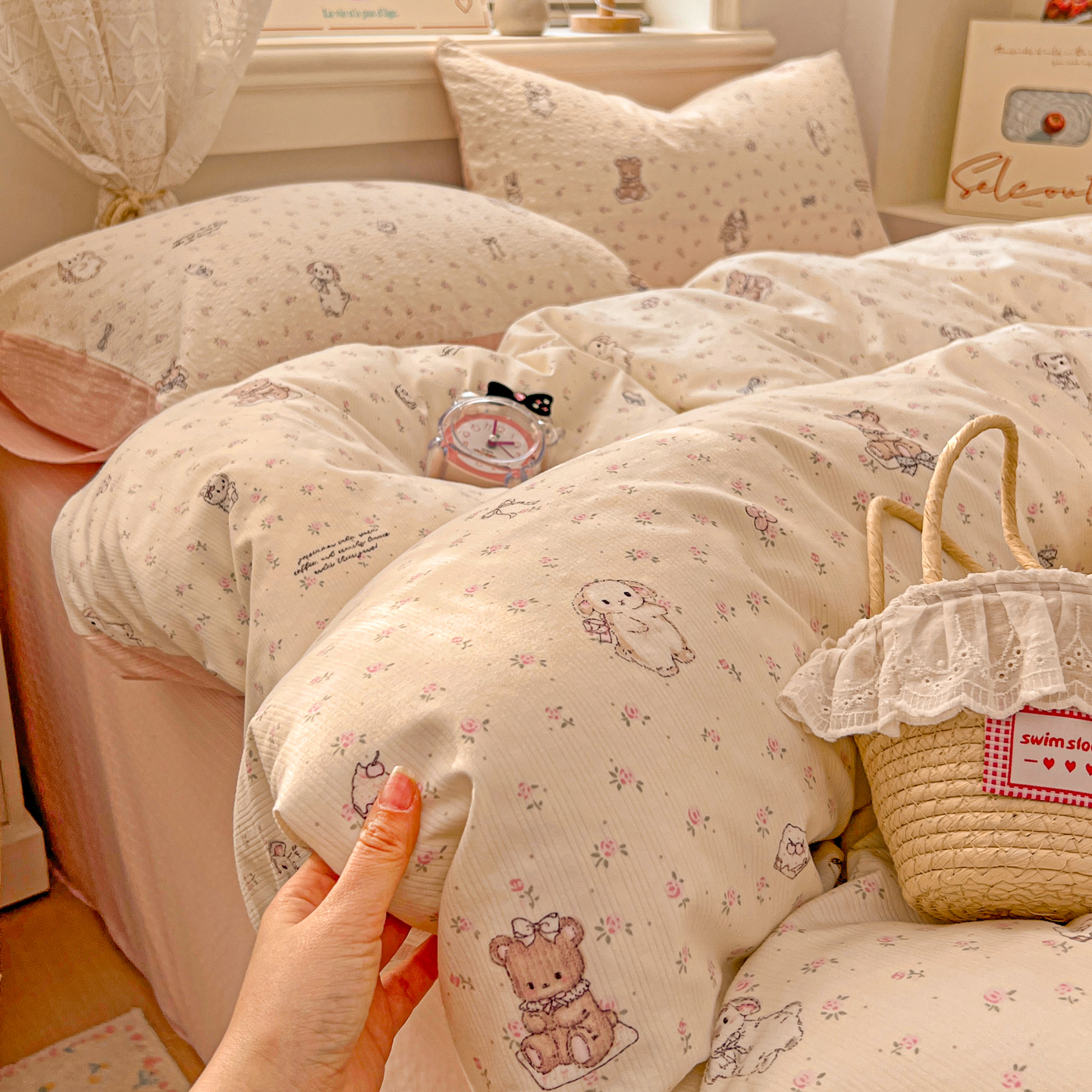 暖伊家居 2026新款糖果小布袋泡芙纱四件套 碎花兔熊