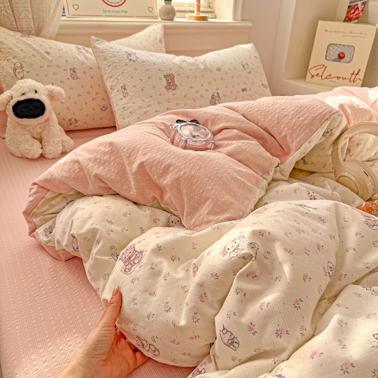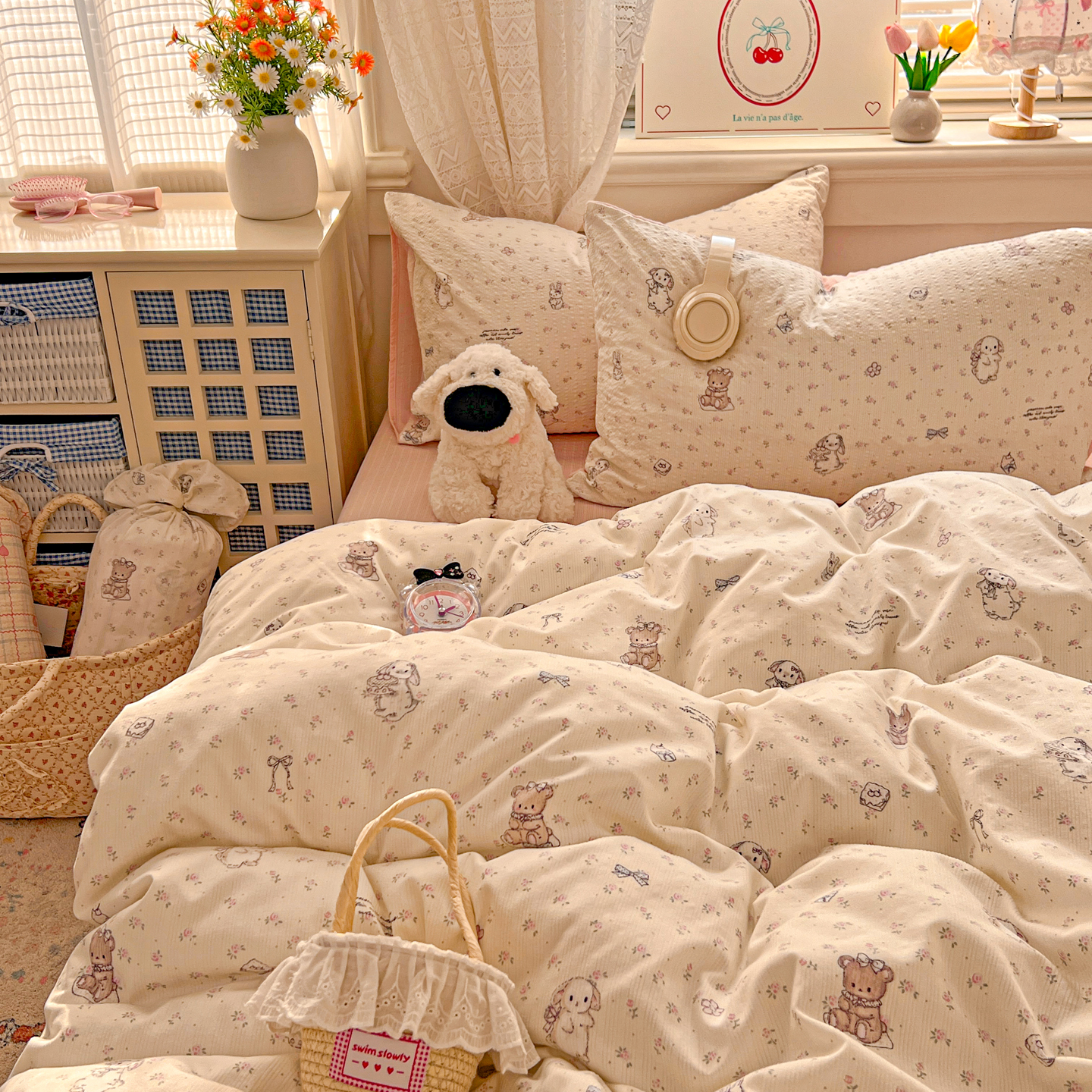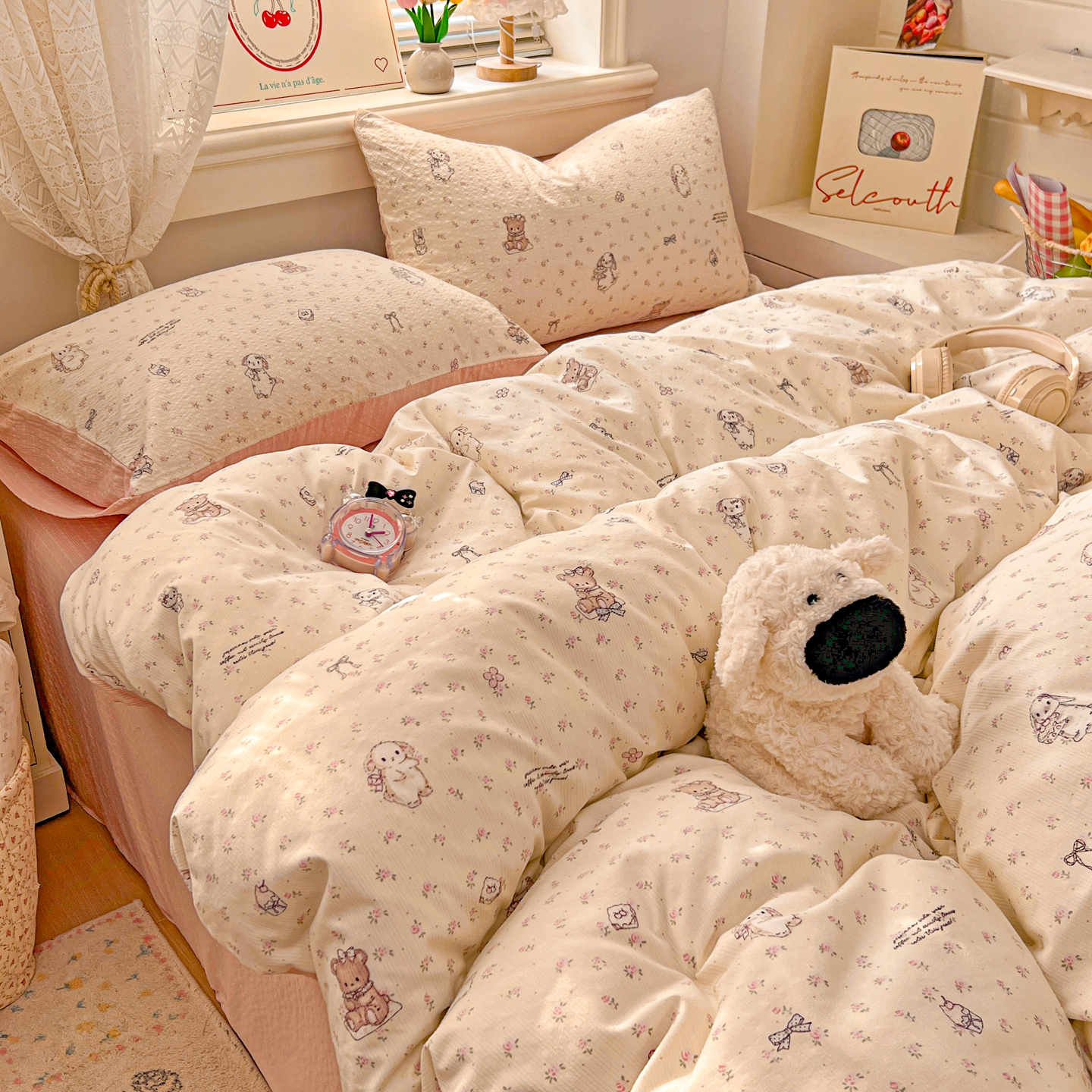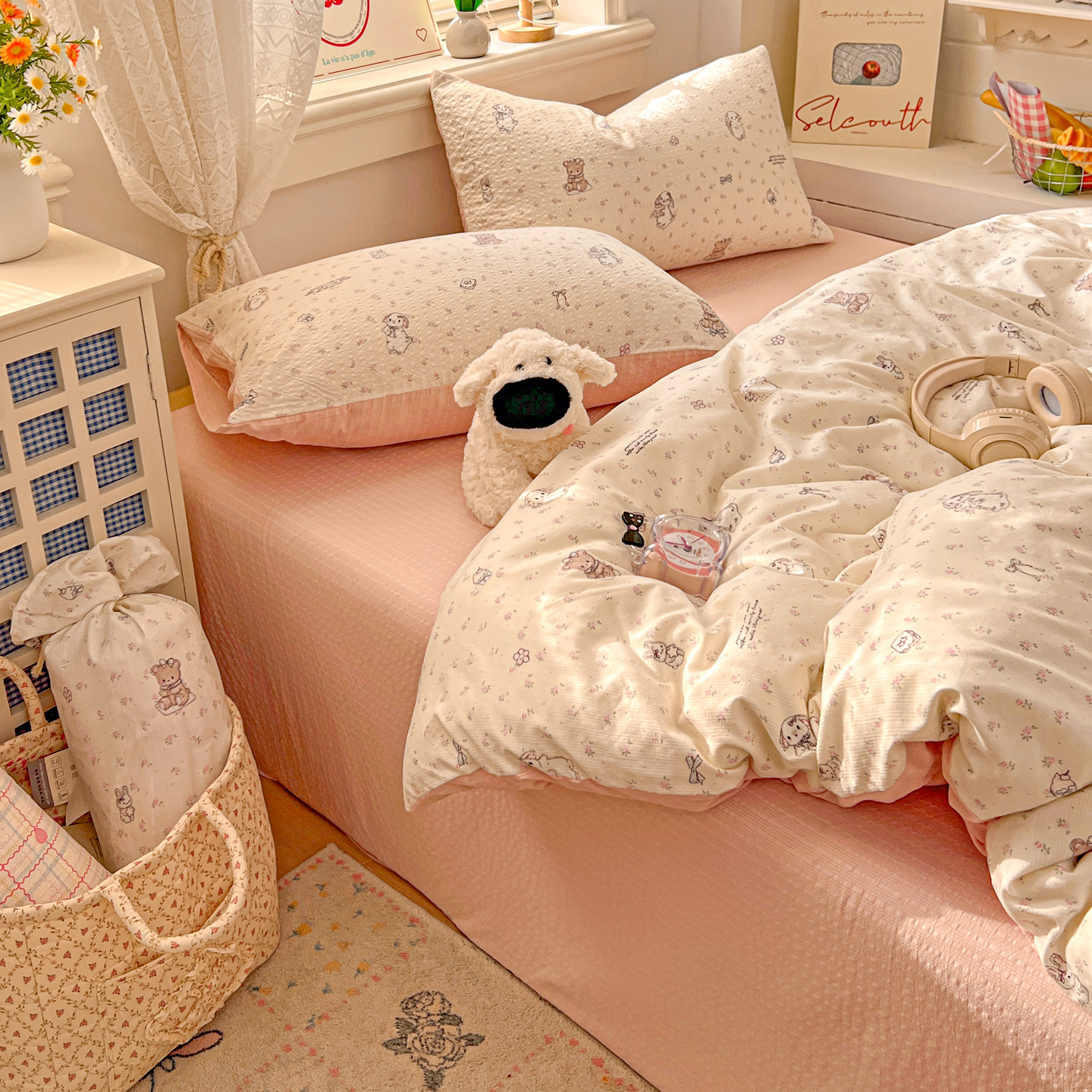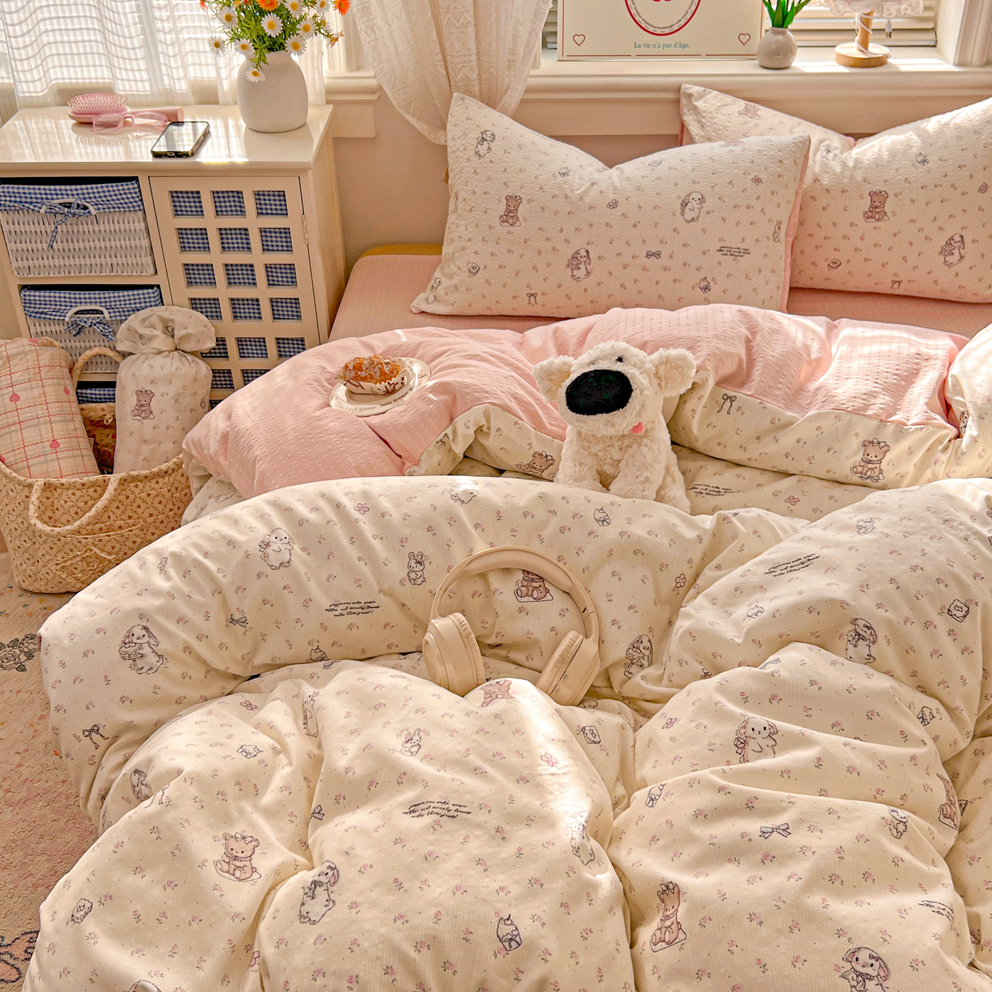 暖伊家居 2026新款糖果小布袋泡芙纱四件套 碎花兔熊