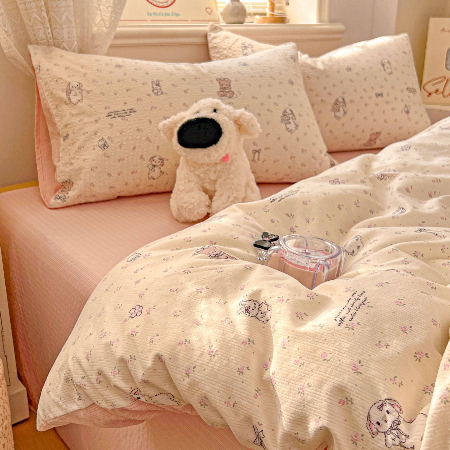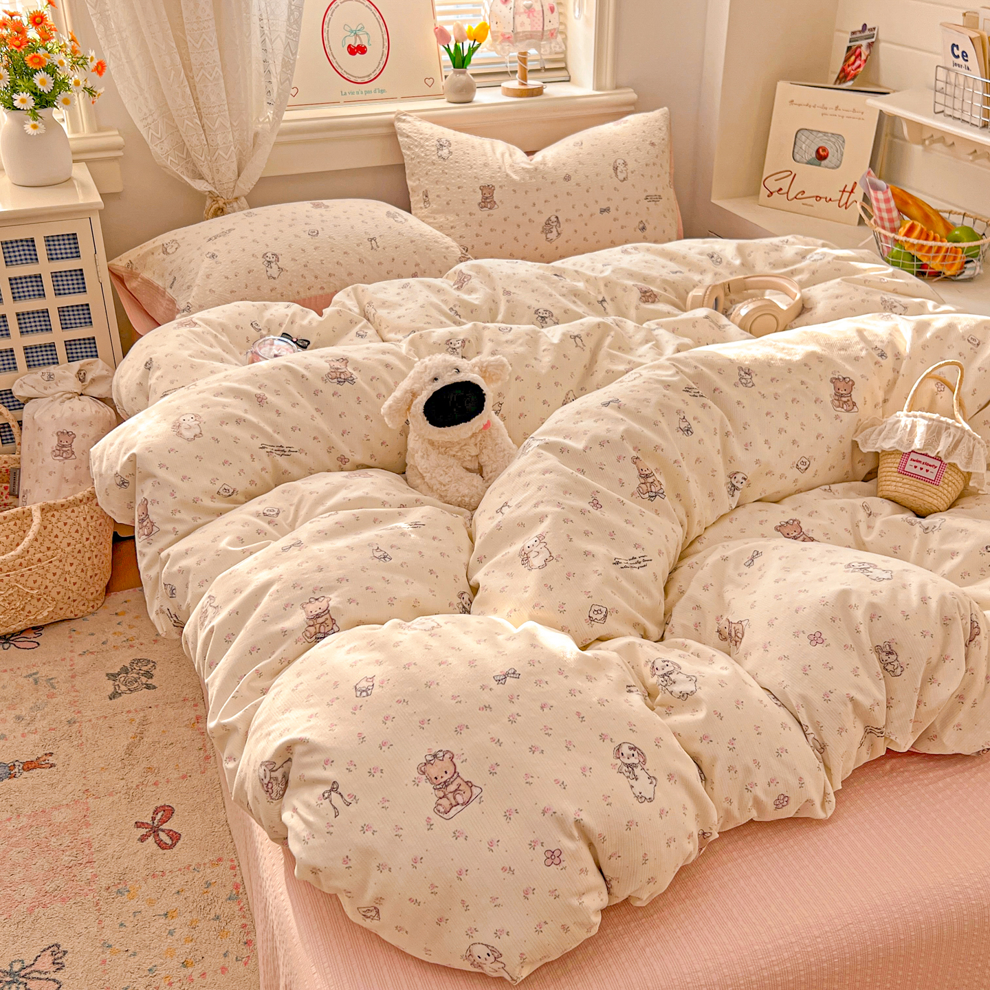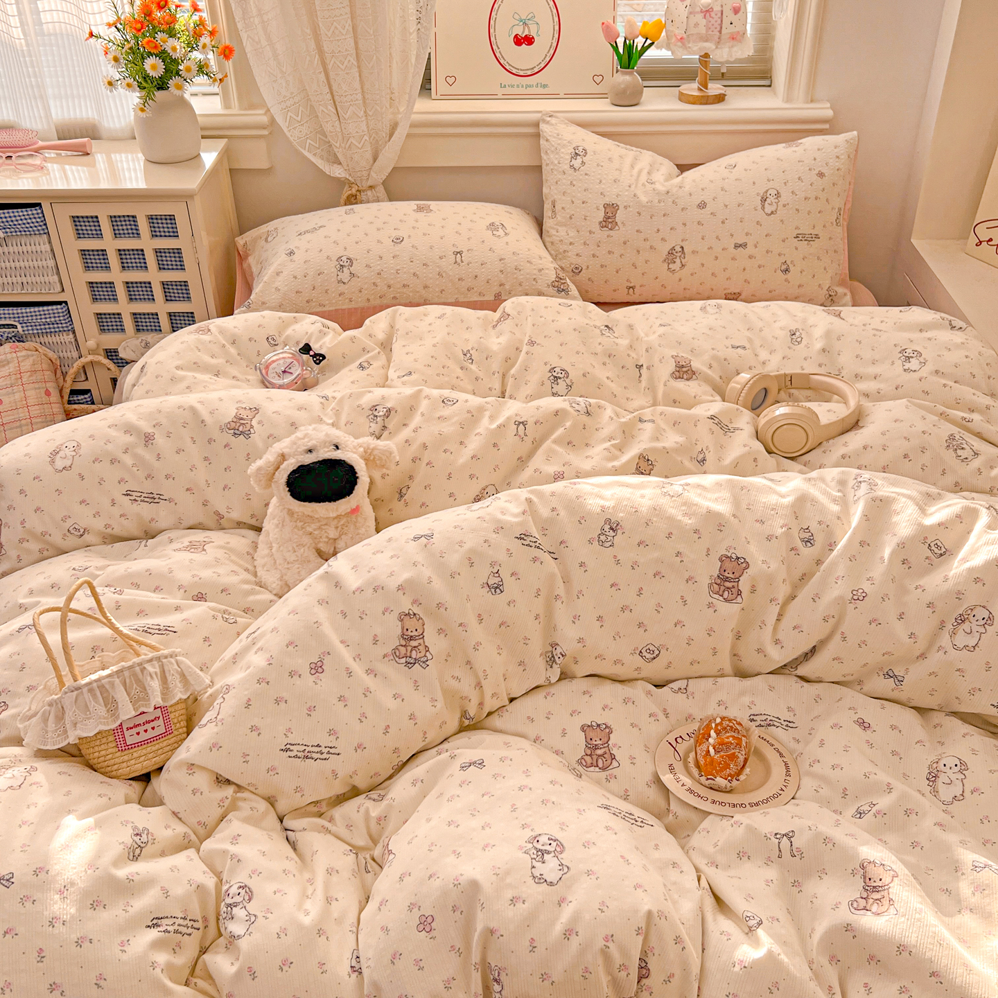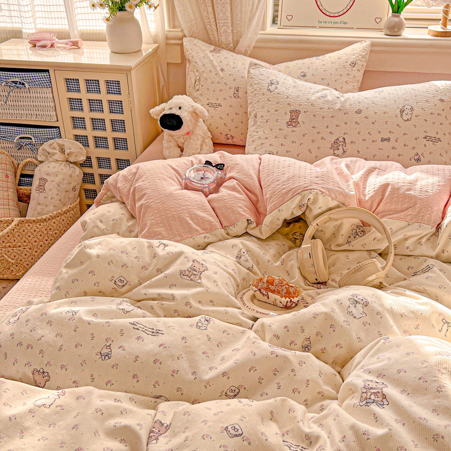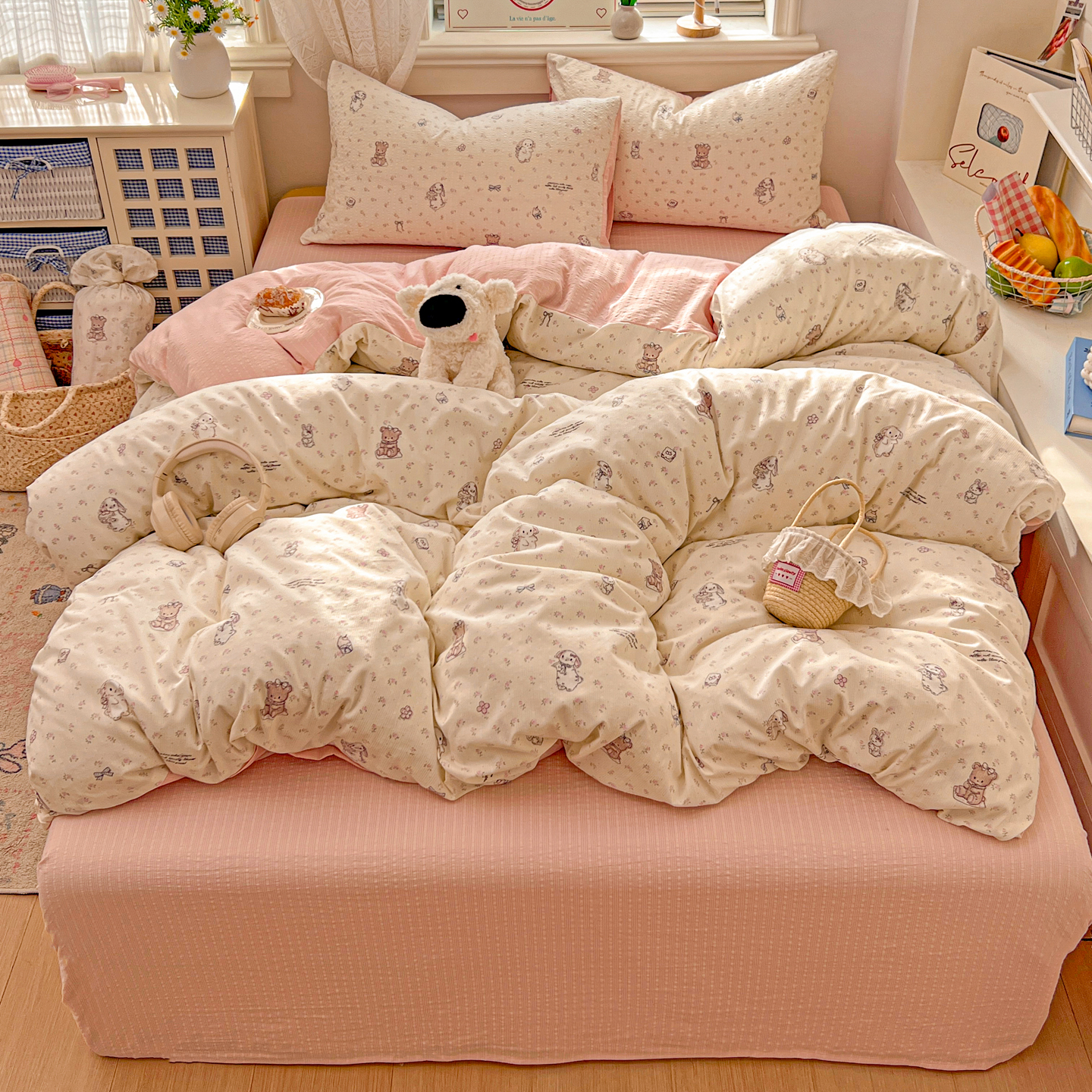 暖伊家居 2026新款糖果小布袋泡芙纱四件套 碎花兔熊