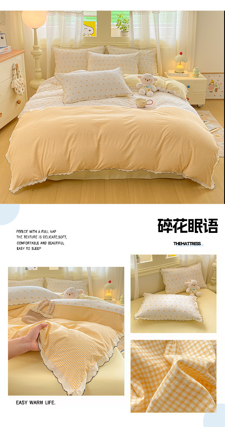 豫见家纺 2026新款A类仿棉云感纱花边四件套 碎花眠语