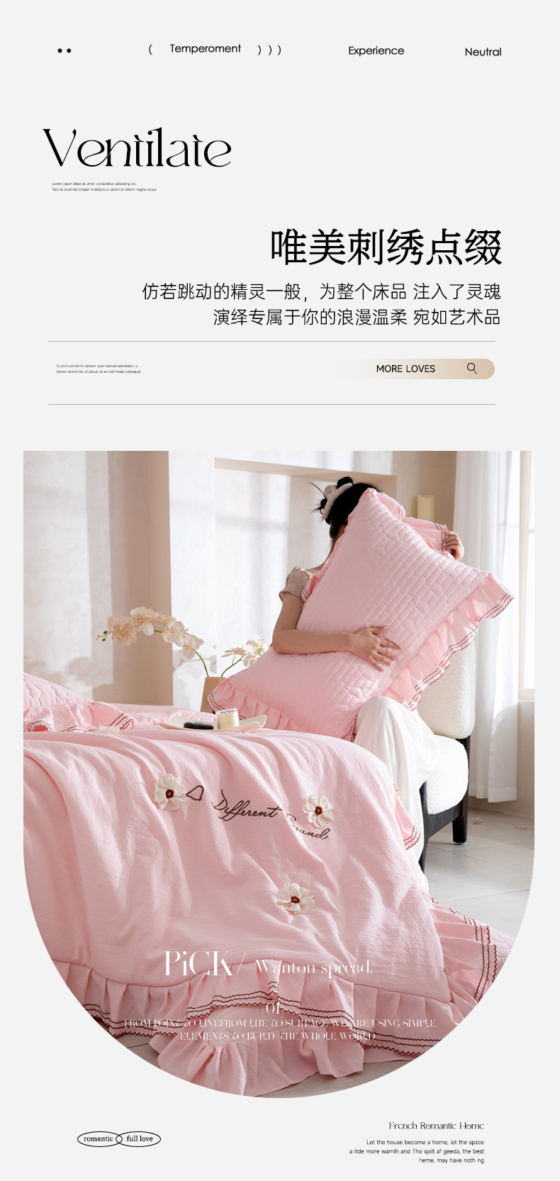 商品名称:红夫人 2026新款春夏韩版床盖款多功能夏被床盖四件套--花絮 豆沙