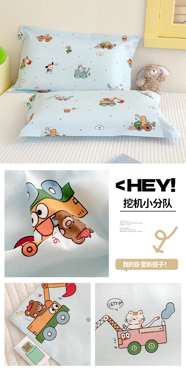 商品名称:良佐生活 2026年新款铂金全棉压线枕套 挖机小分队