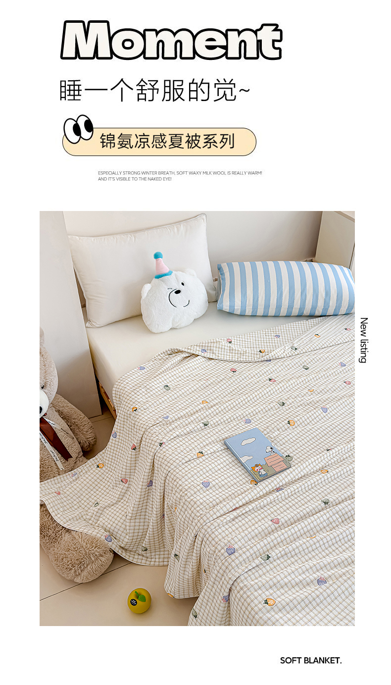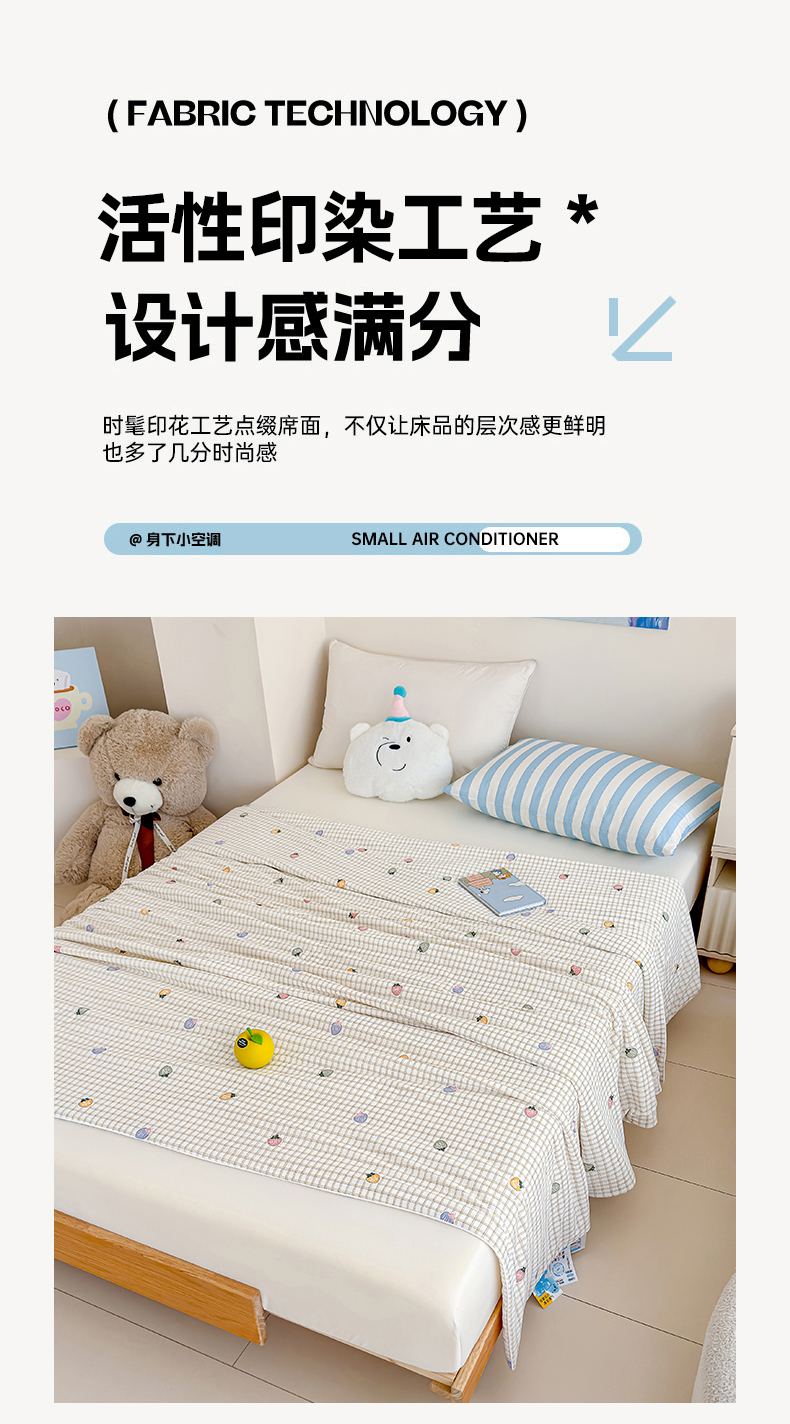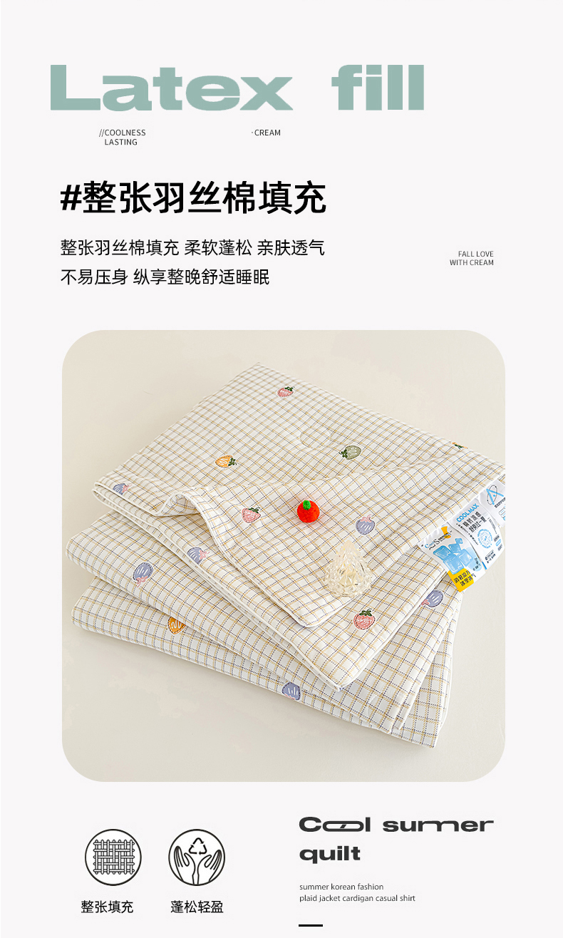 芯恋家居 2026年新款小冰川凉感夏被冰皮凉感印花夏被凉感丝夏被(四周踩棉工艺) 格纹莓莓
