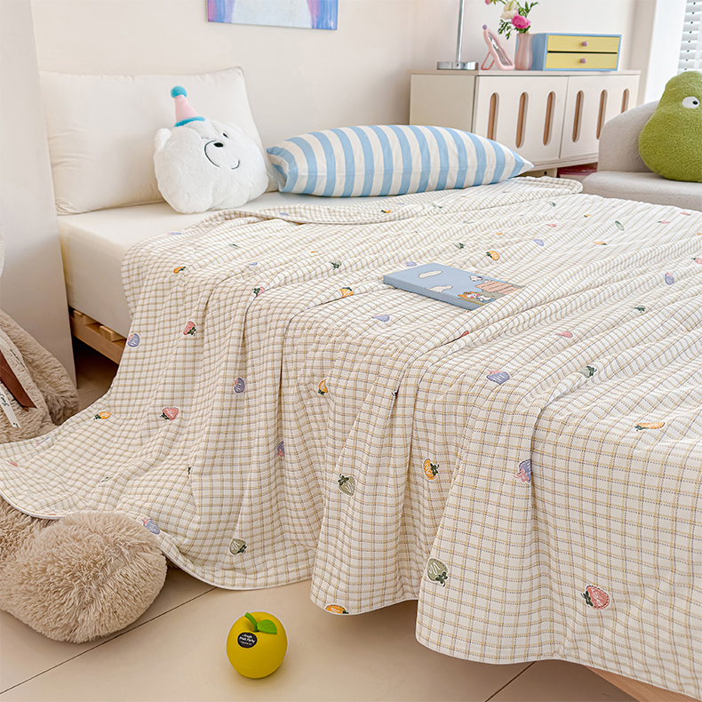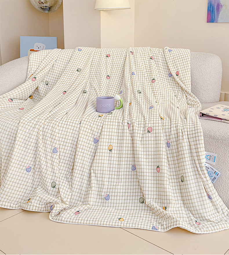 商品名称:芯恋家居 2026年新款小冰川凉感夏被冰皮凉感印花夏被凉感丝夏被(四周踩棉工艺) 格纹莓莓