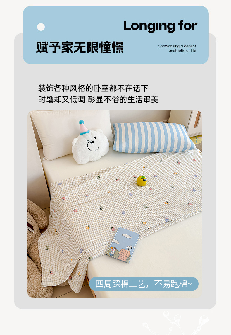 (总)芯恋 2026新款母婴级全棉皱皱纱儿童被双层纱夏被,可爱猫咪,可乐熊,夏日柠檬,樱桃草莓免,荷包蛋,可爱多,欢乐小象,花解语,霓虹小狗,多米兔,熊猫,元气恐龙,蛇来运转,柚见小熊,爱尼熊,快乐巴士,小樱桃,动物派对,桔子熊,北极熊