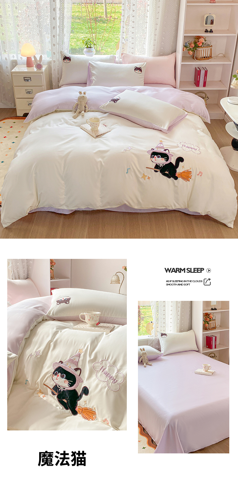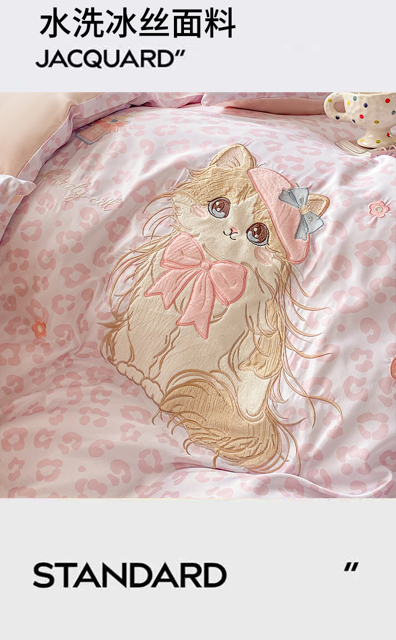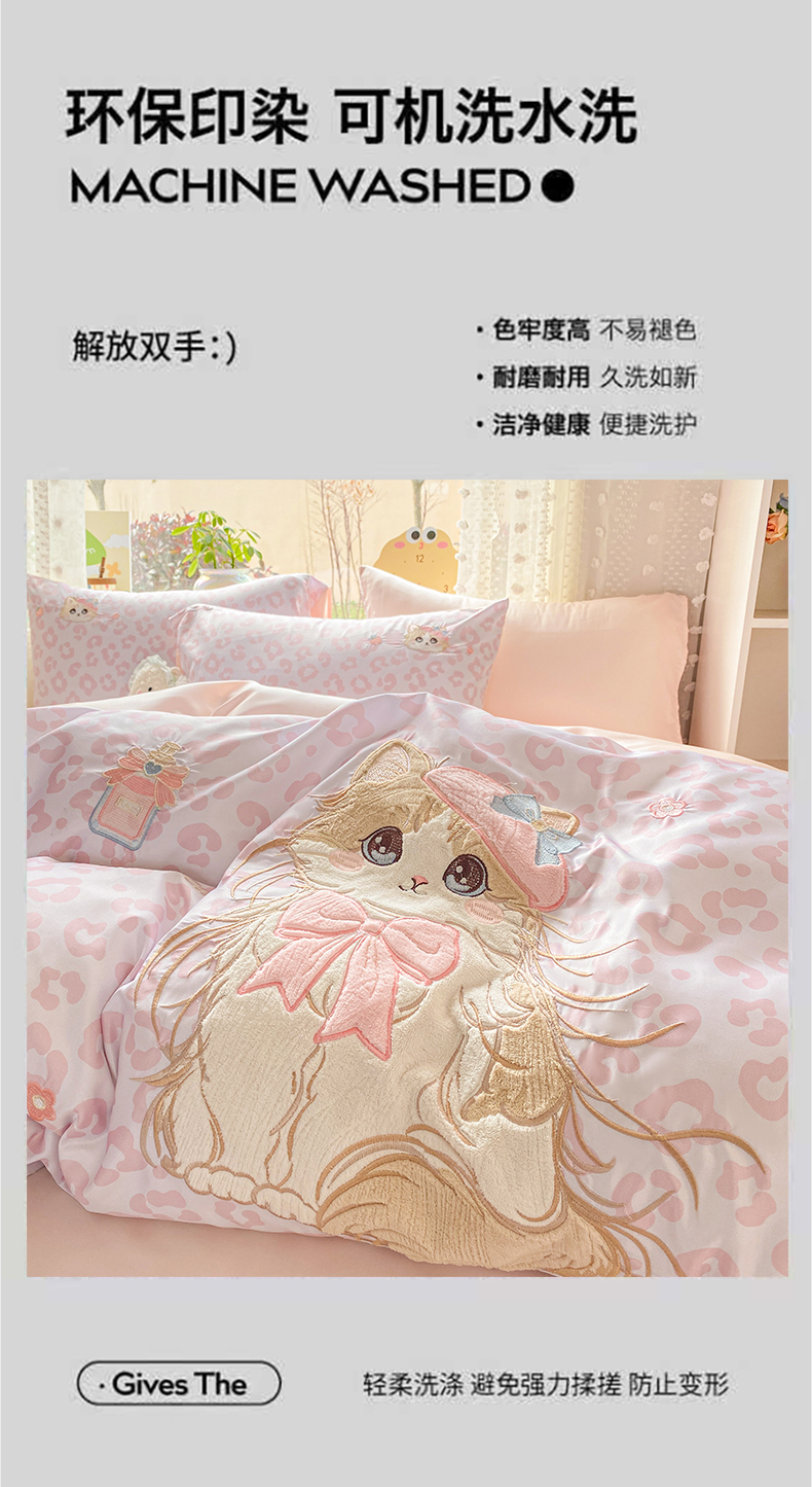 (总)优贝家纺 2026新款水洗真丝天丝专版贴布绣四件套,白色布偶猫,粉色布偶猫,蝴蝶结,魔法猫,奶蓝兔仔,泡芙奶狗,绅士小熊