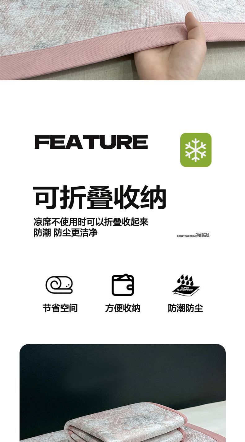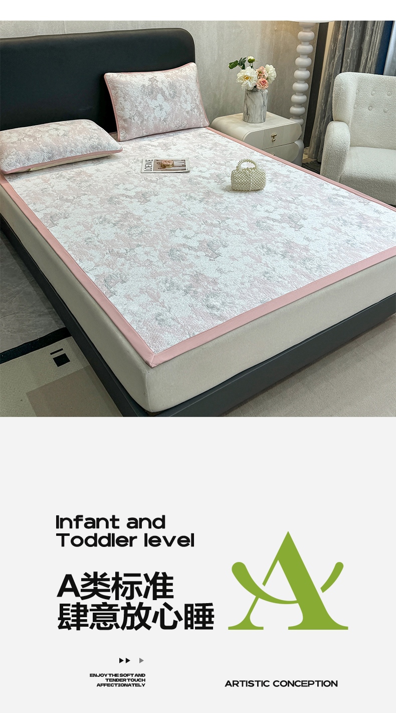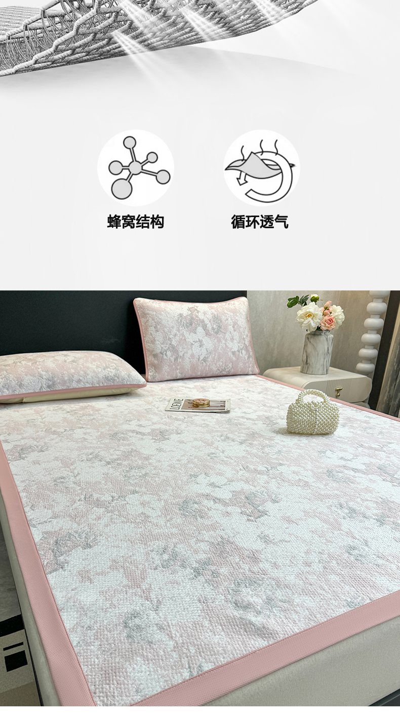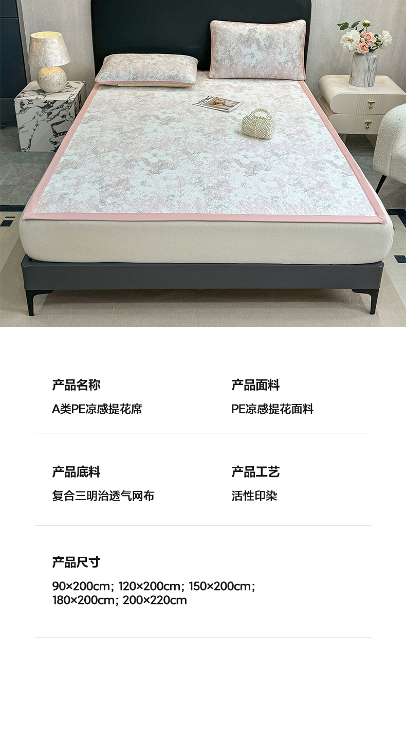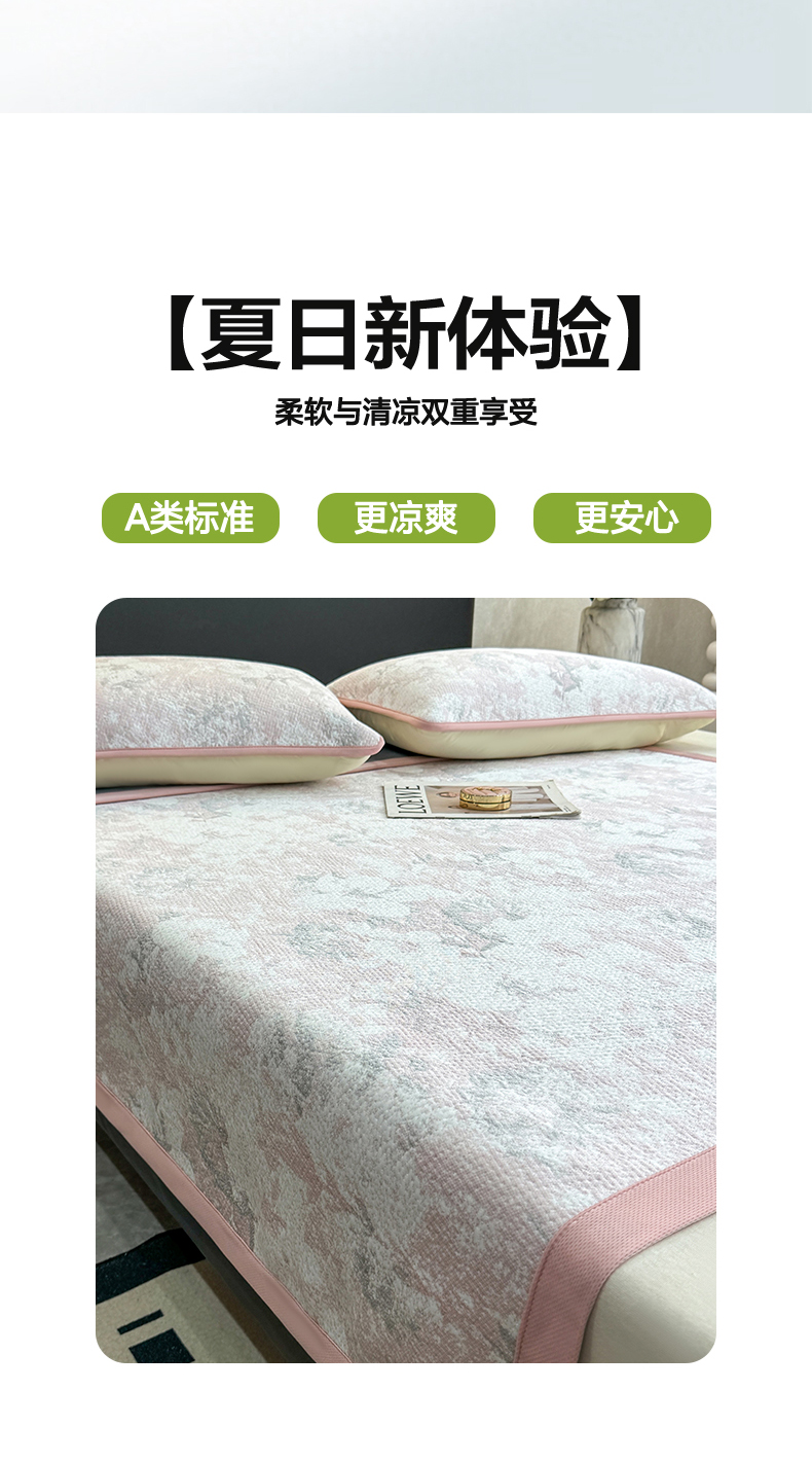 商品名称:伊人坊 2026新款A类550克凉感提花值过0.21冰豆豆家用凉席子三件套夏季---凉席款 繁花-粉