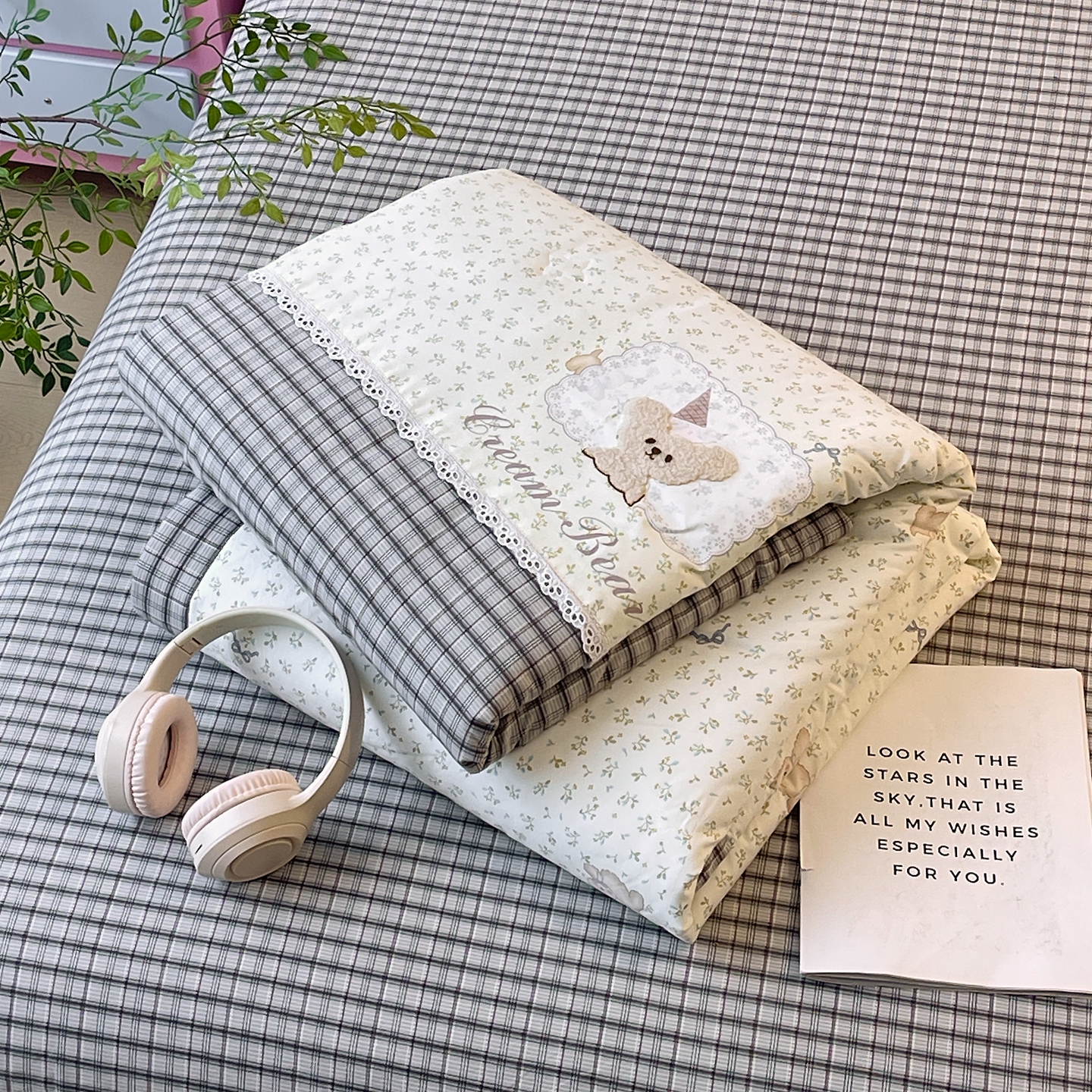 当前位置: 91家纺网 > 商品网购 > 被子 > 夏被 > 梵克保罗 2026春夏新款10A抗菌全棉花边双拼云朵棉单夏被夏被夏凉被空调被四件套 双拼灰格-蝴蝶花卉