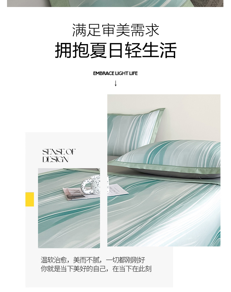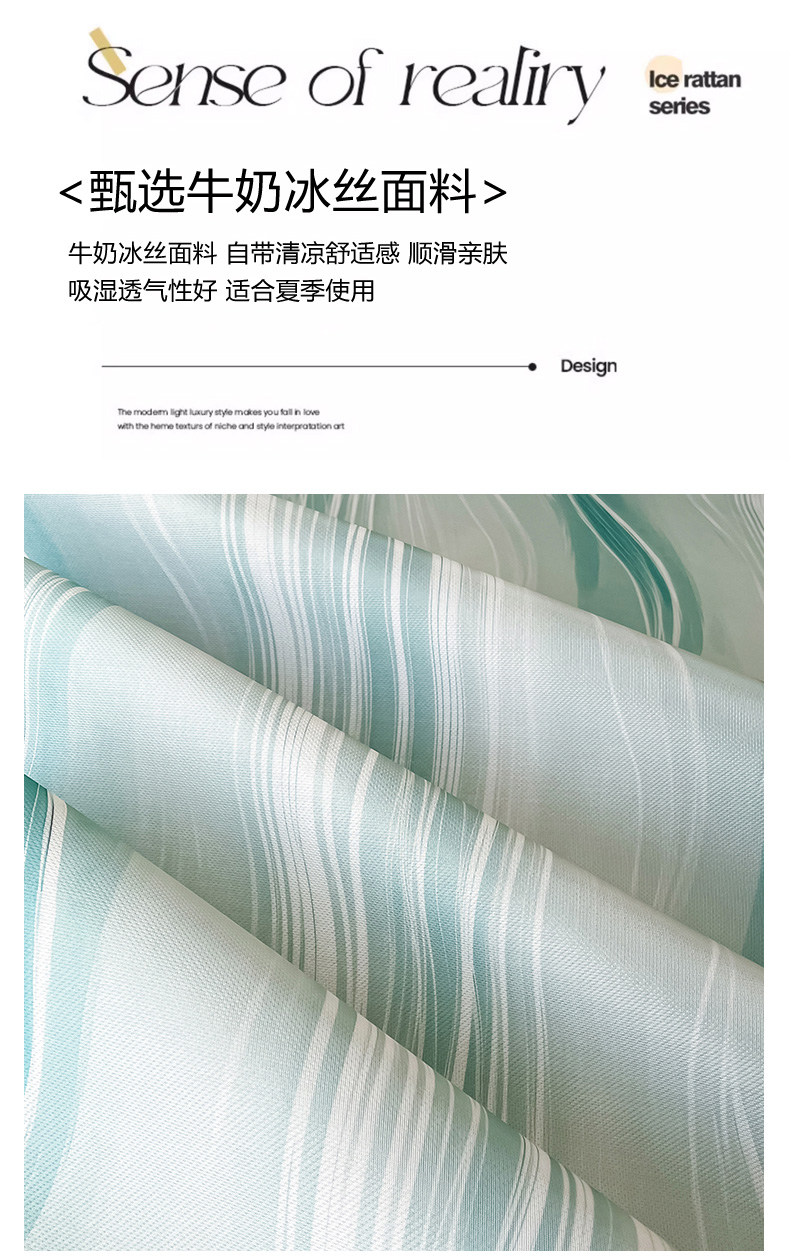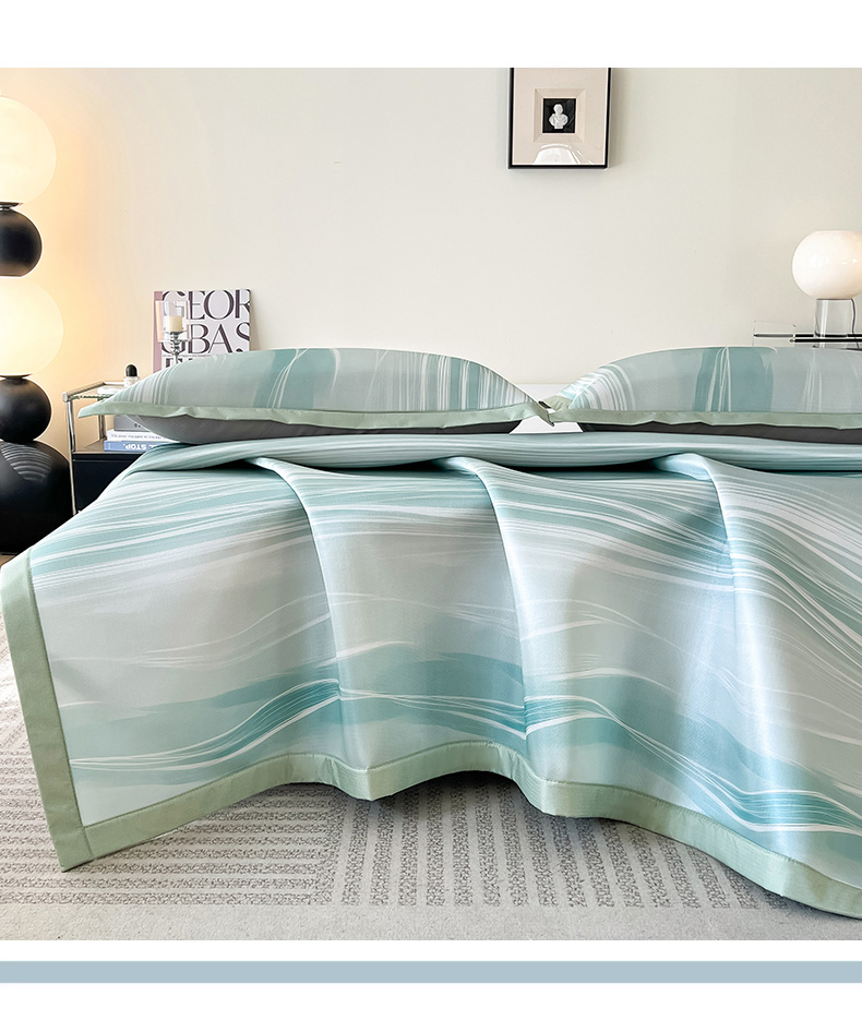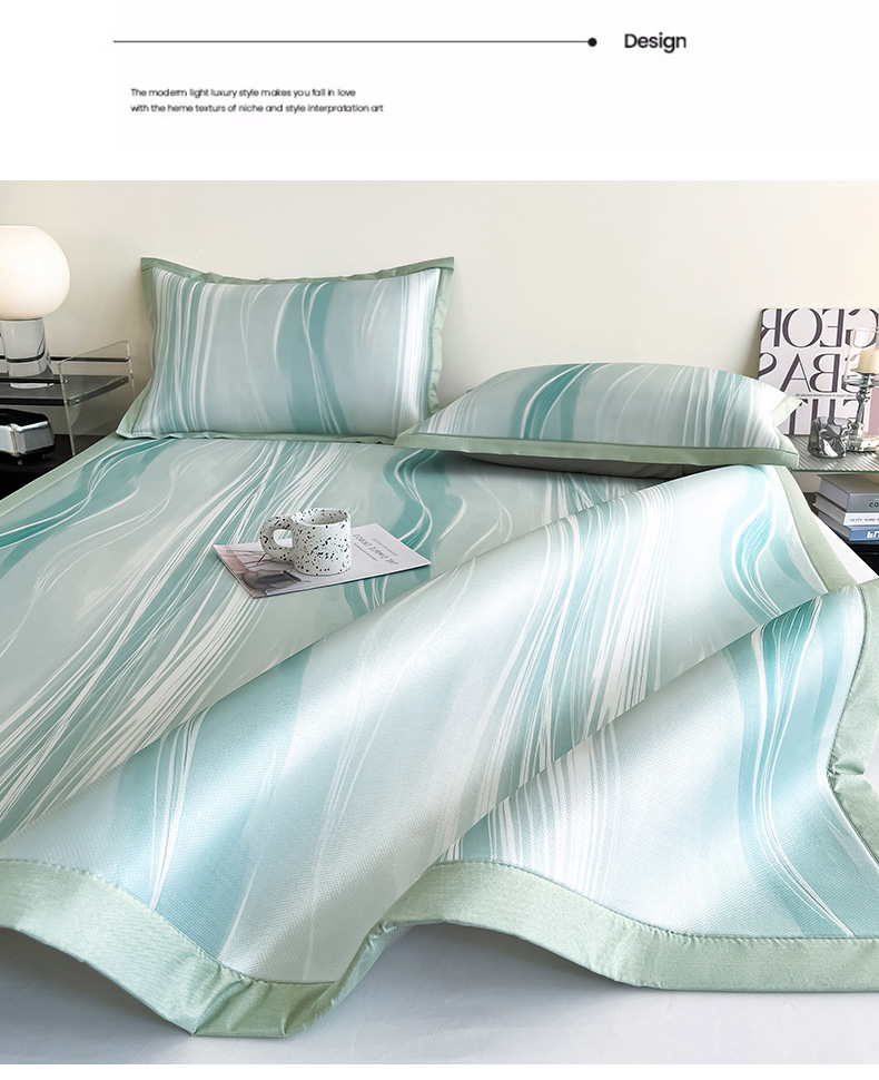 商品名称:倾慕家纺 2026新款A类简约风牛奶丝数码印花冰丝凉席 曲线幻影绿