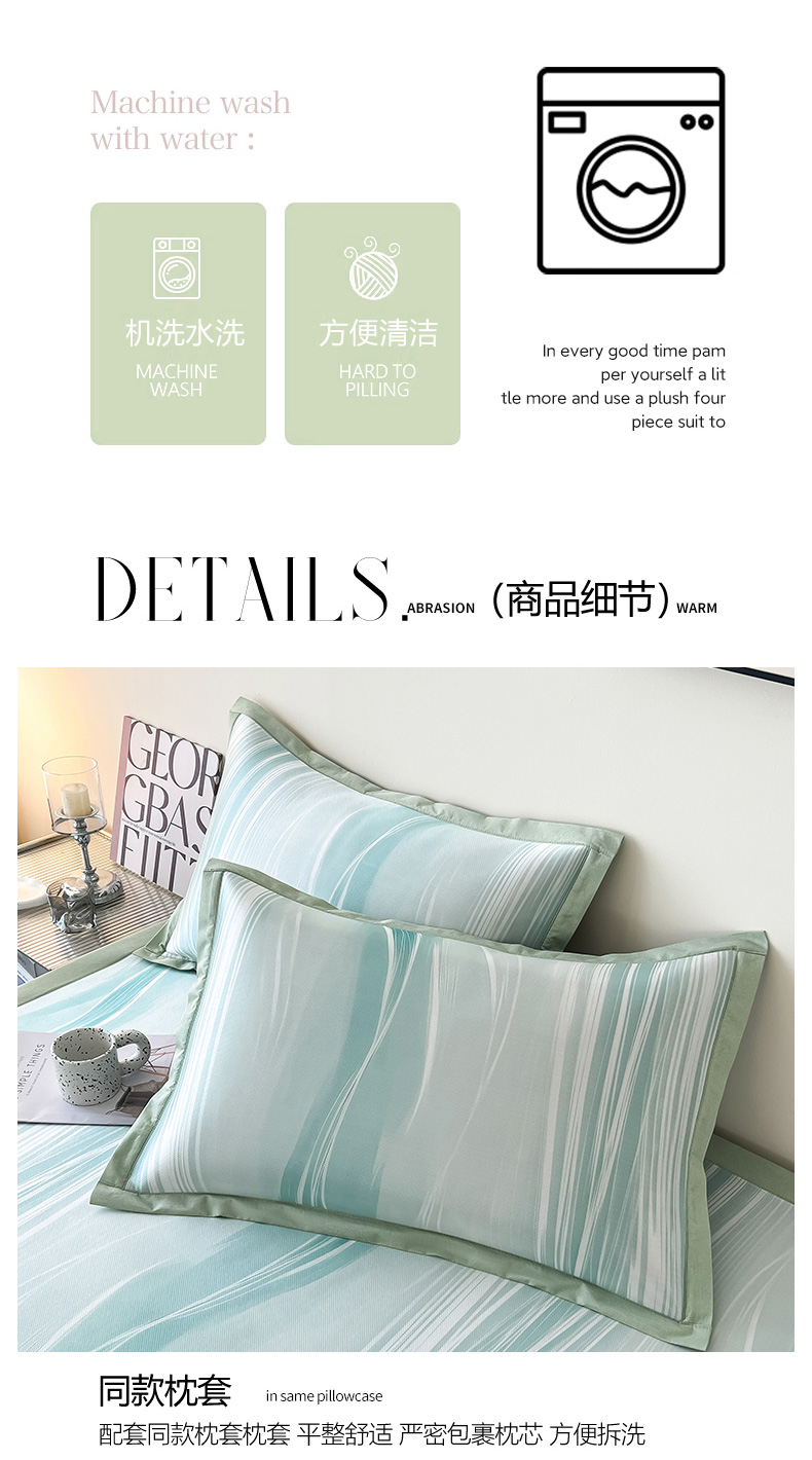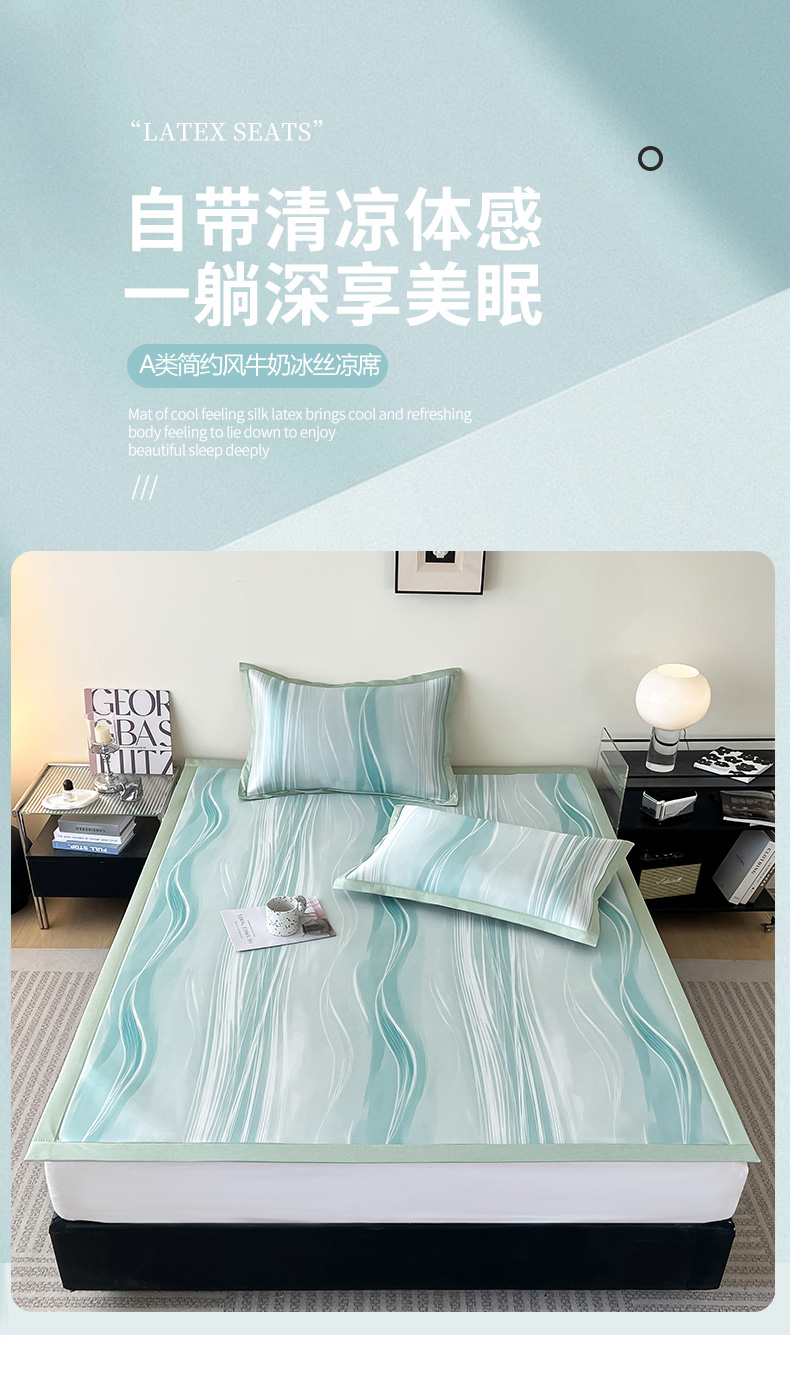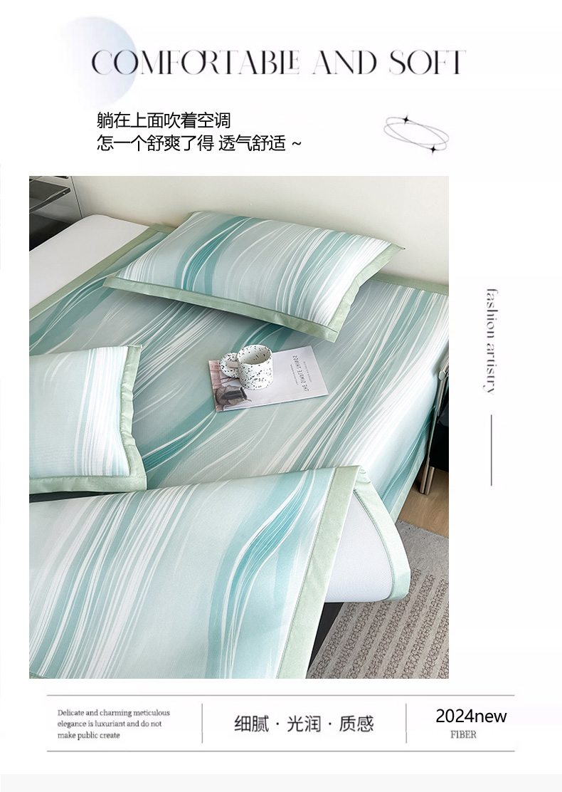 商品名称:倾慕家纺 2026新款A类简约风牛奶丝数码印花冰丝凉席 曲线幻影绿