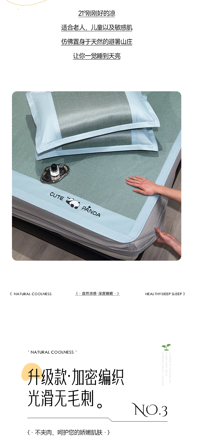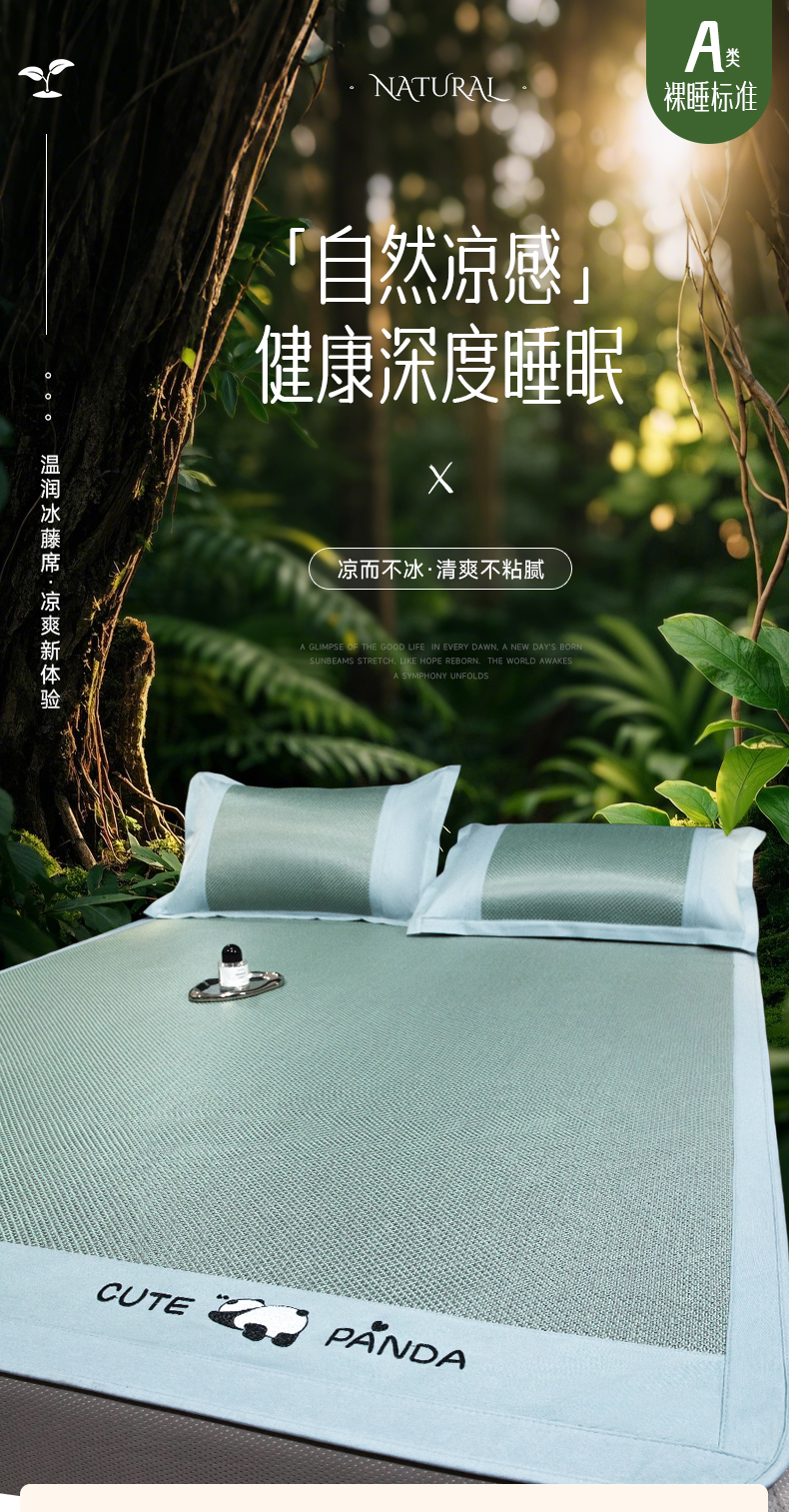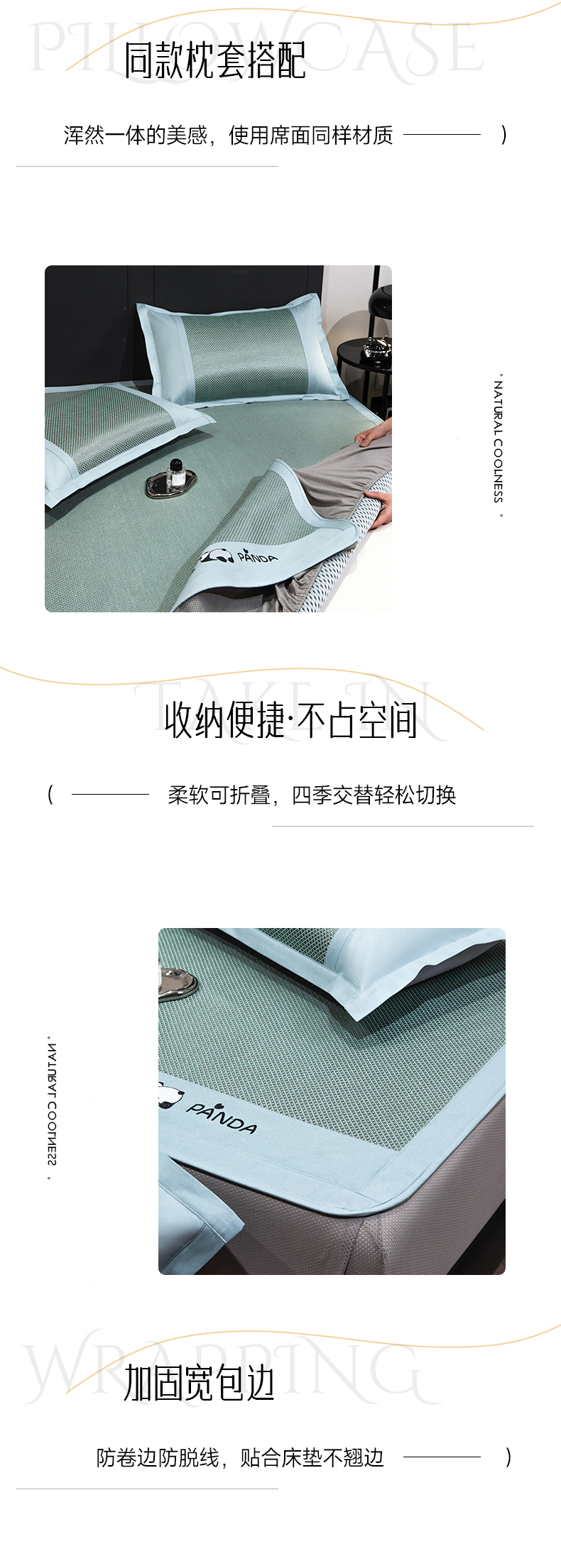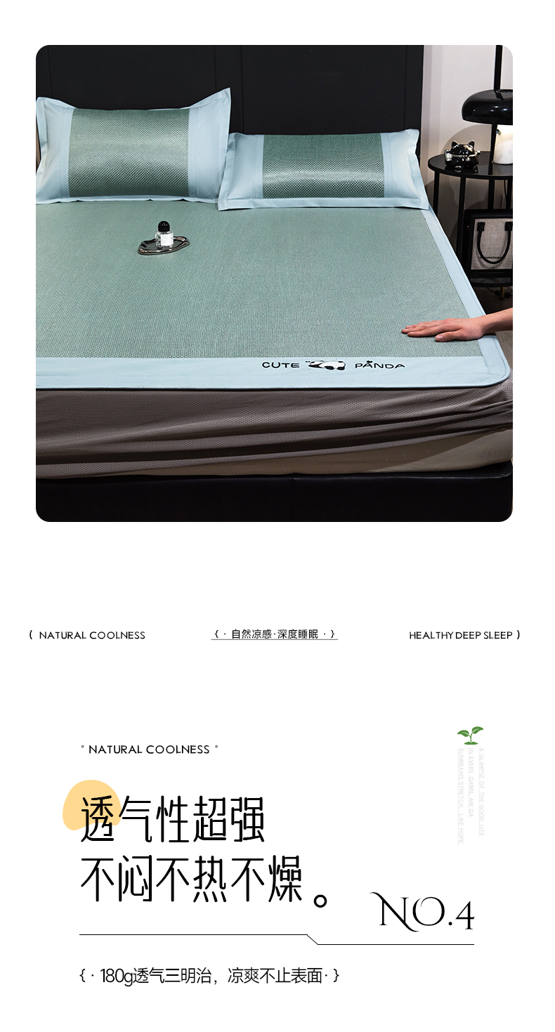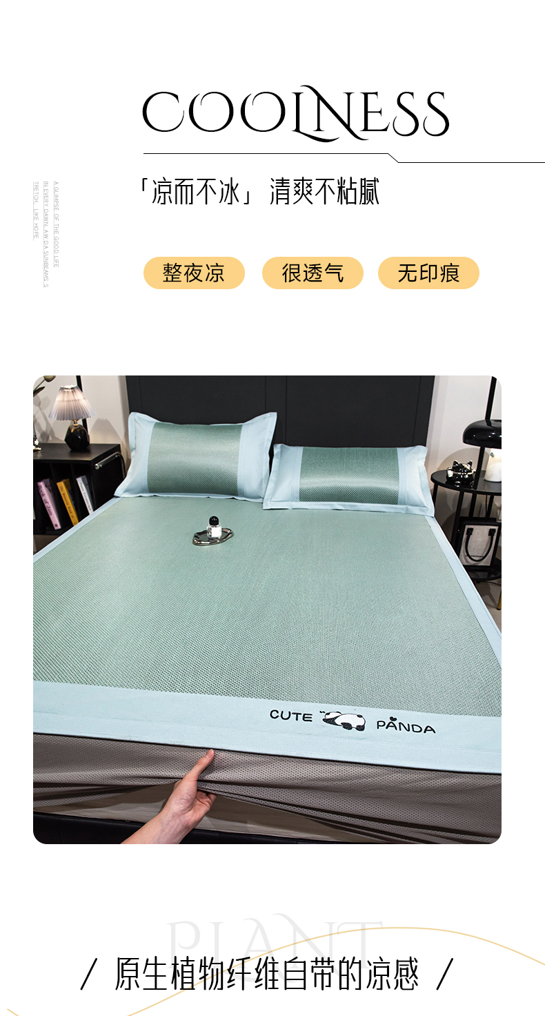 商品名称:倾慕家纺 2026新款A类刺绣冰藤席--床笠款 刺绣熊猫绿色床笠款