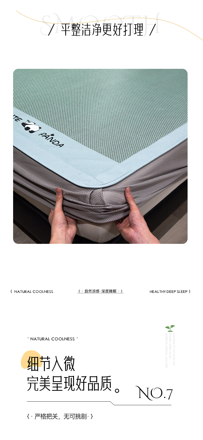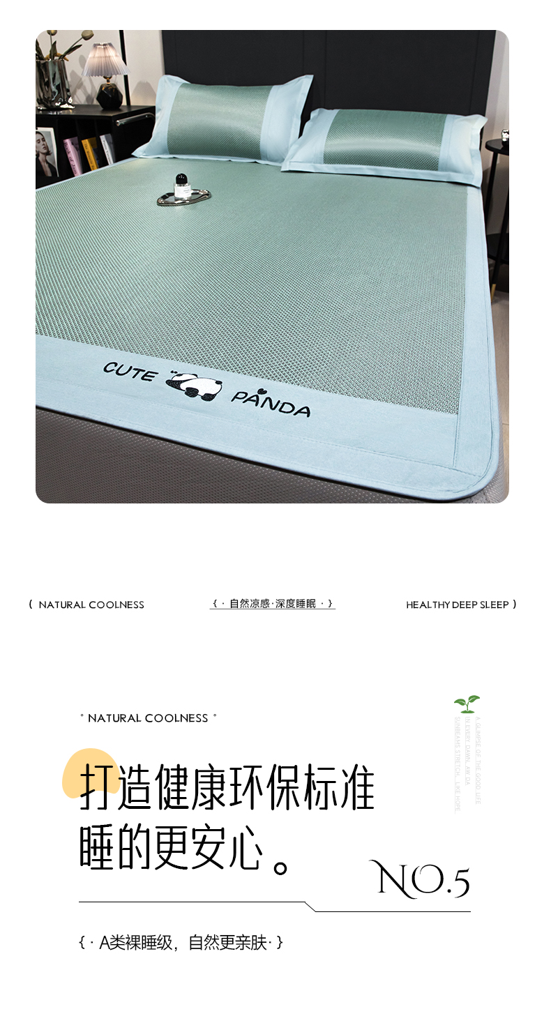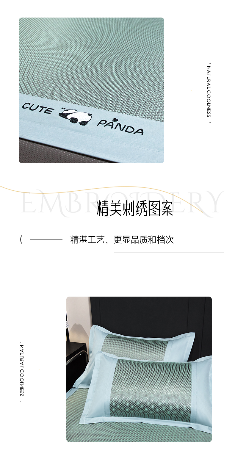 倾慕家纺 2026新款A类刺绣冰藤席--床笠款 刺绣熊猫绿色床笠款