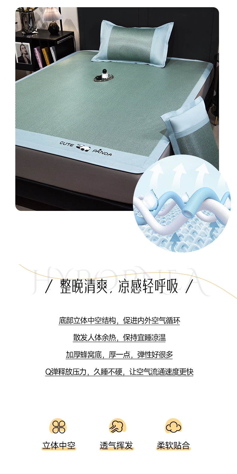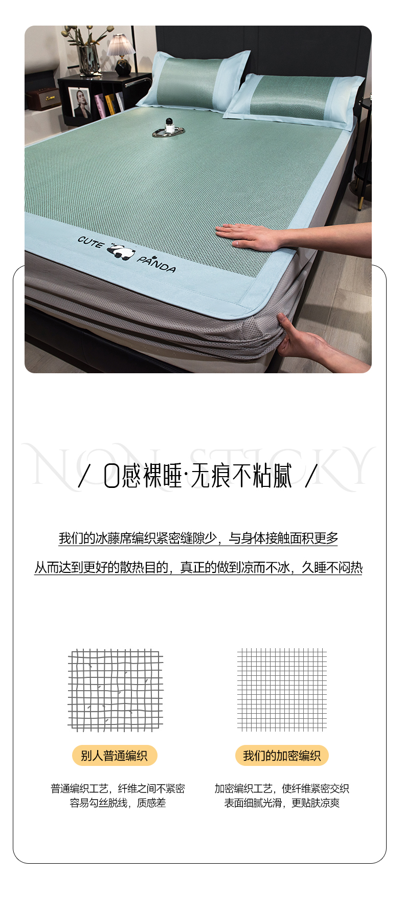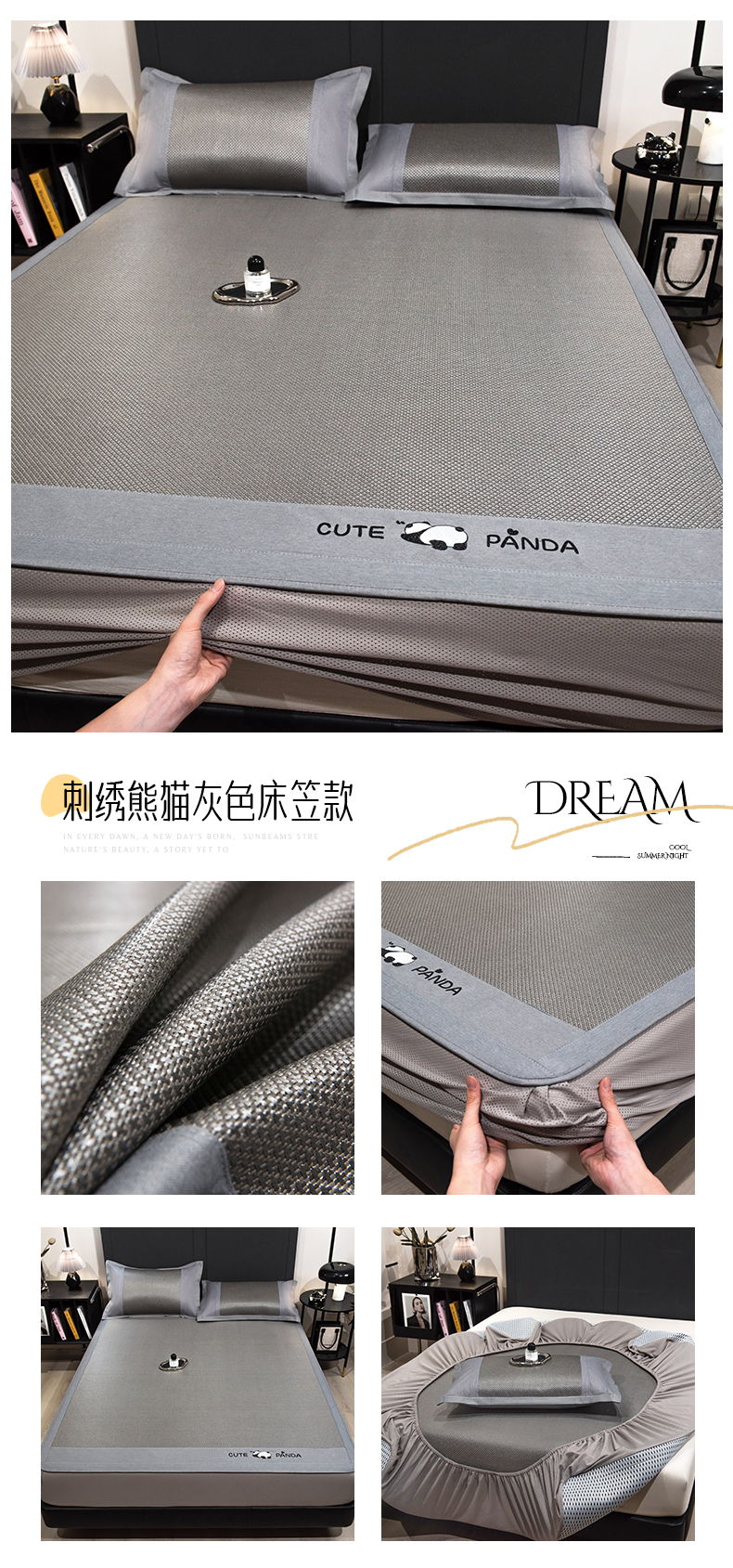倾慕家纺 2026新款A类刺绣冰藤席--床笠款 刺绣熊猫绿色床笠款