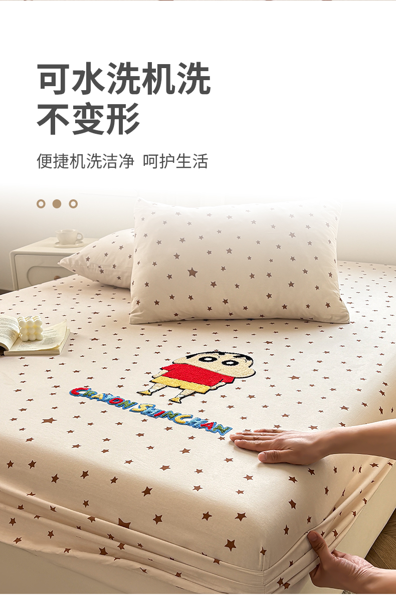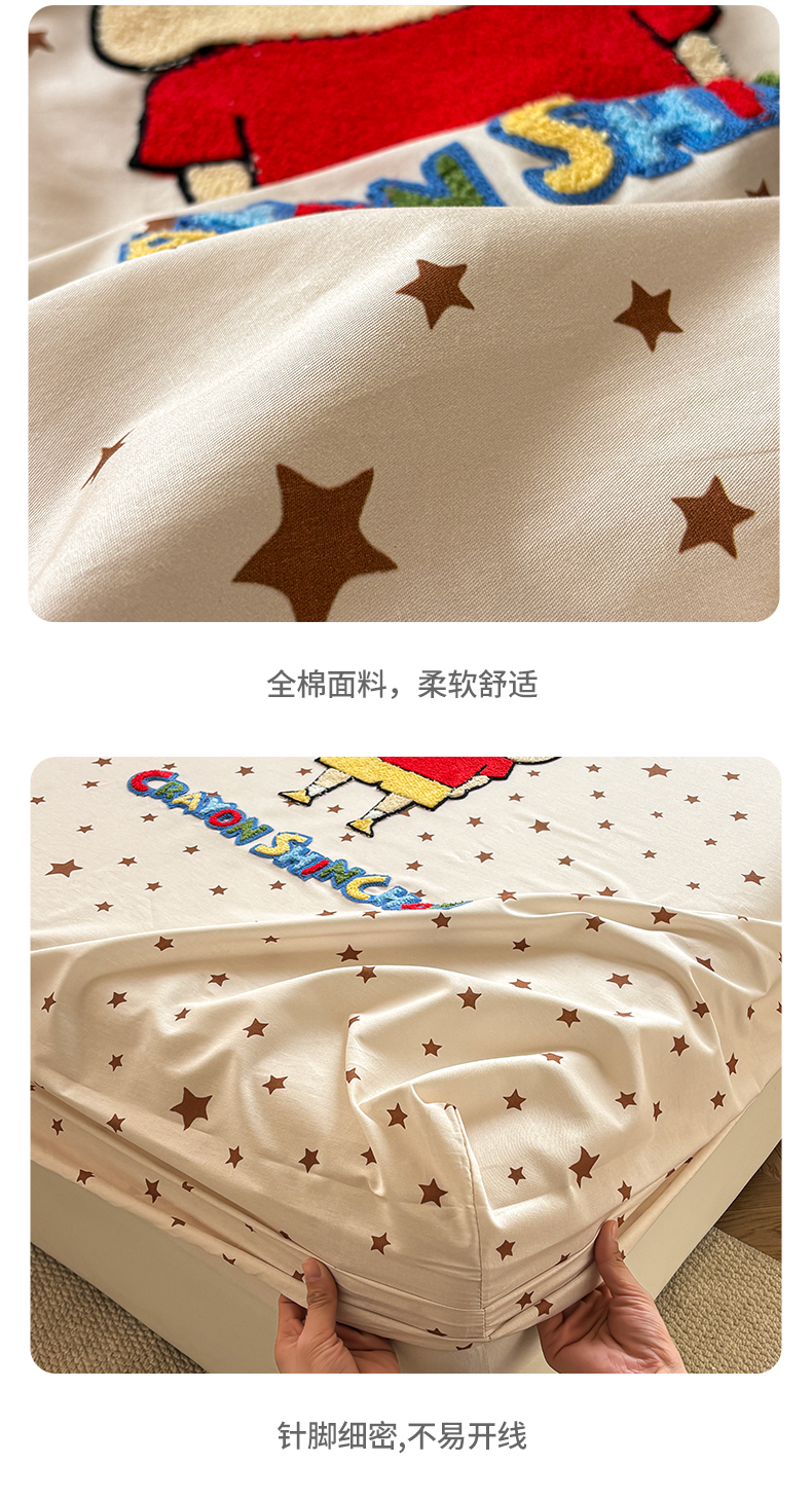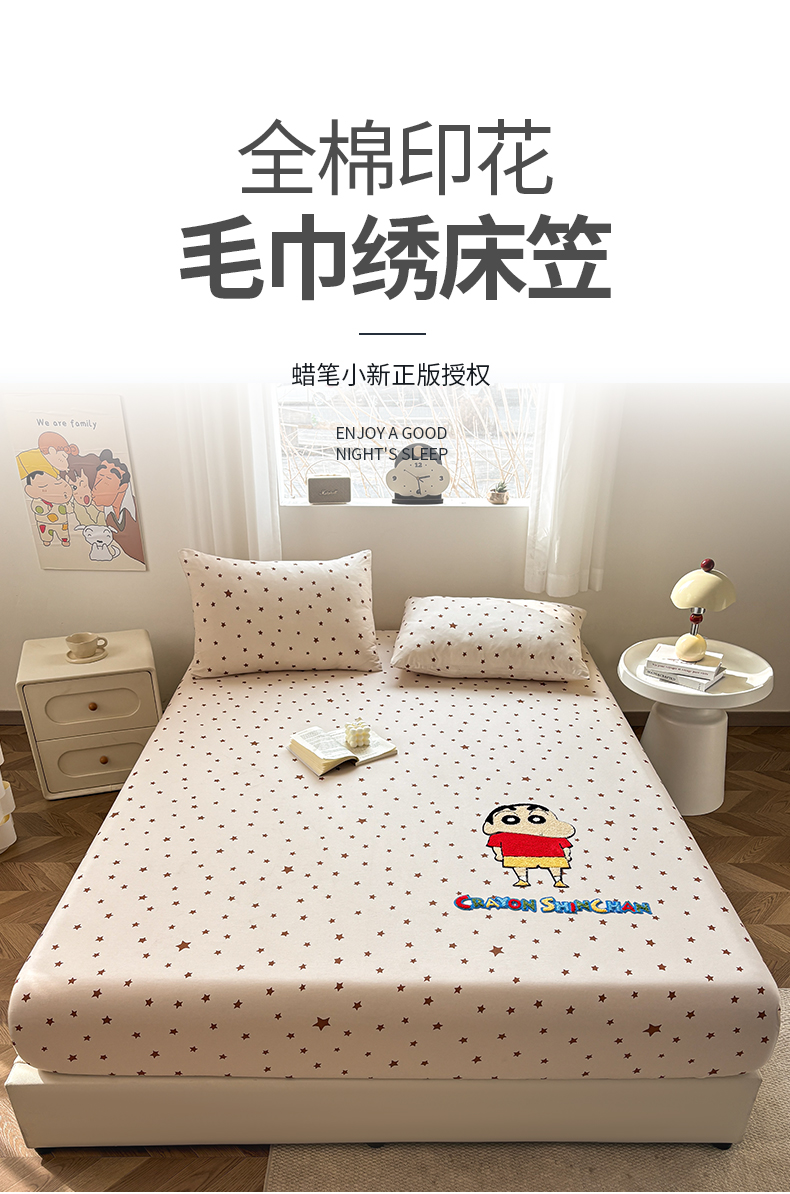 商品名称:居眠 2026新款全棉刺绣蜡笔小新床笠 亮晶晶咖-小新