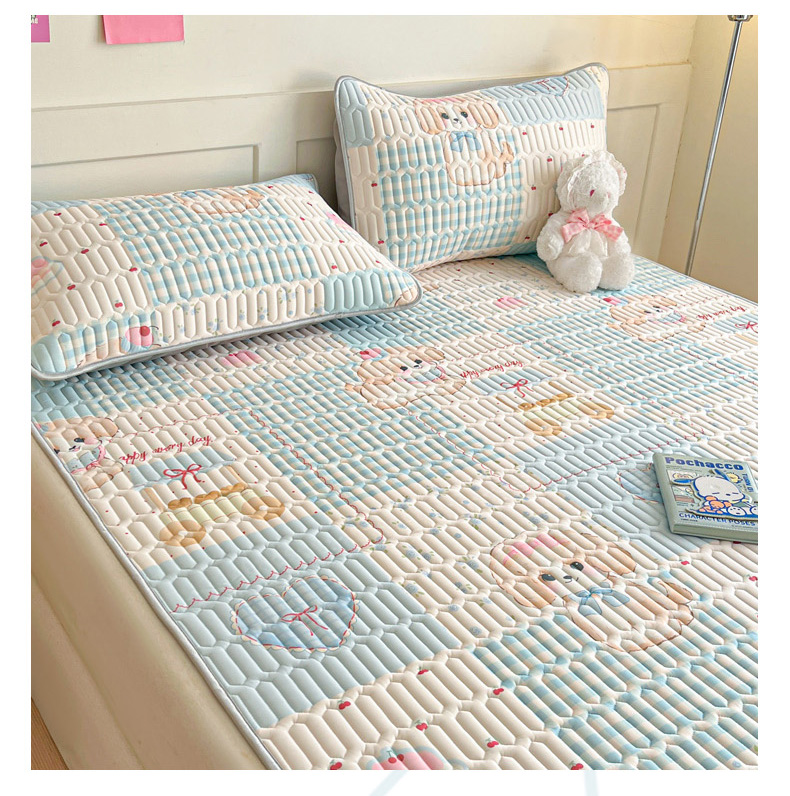 柒月家居 2026新款小清新乳胶凉席三件套 蓝块汪仔