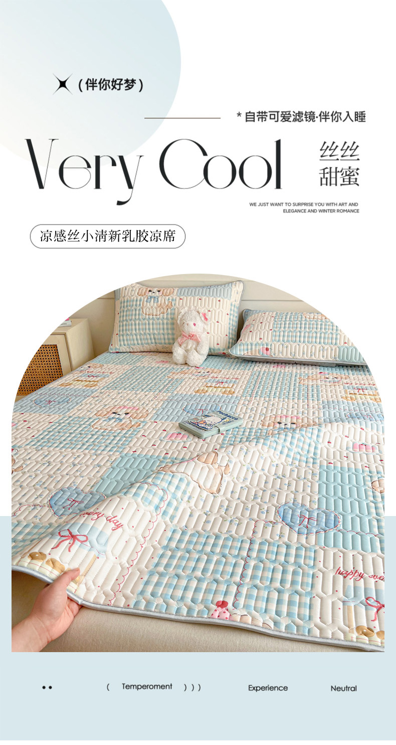 (总)柒月家居 2026新款小清新乳胶凉席三件套,粉格凯蒂,爱心小熊,爱心熊猫,豹纹精灵,波点萌宠,彩色木马,格调,花季,灰格小熊,简约甜喵,蓝格甜猫,蓝块汪仔,奶盖猫咪,碎花派对,桃桃奶猫,甜酷星兔,星帽小熊,星星月亮,字母小熊
