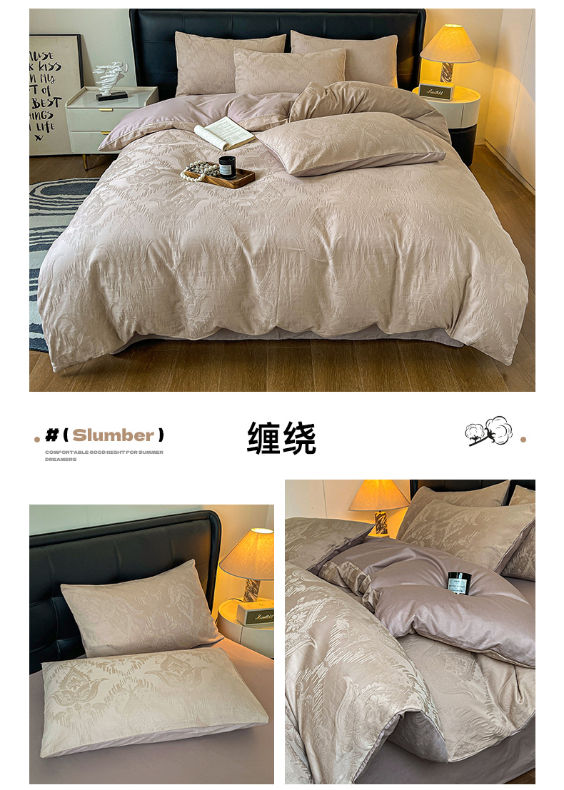 (总)乐家毛巾被(工厂自产自销) 2026春夏新款全棉60S长绒棉立体厚织提花四件套,碧罗,缠绕,翠微,叠框,叠影,蝶影,浮光掠影,花叶蝶影,花叶同枝,篱上花,露染,掠影,落痕,蔓延,眠琴,年轮,浅迹,素纹,碎影,同蔓,昔叶,纤条,叶间梦,隐花,印夏,余影