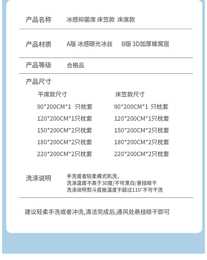 商品名称:可恩欣 2026新款冰感凉风席 床席-凉风蓝
