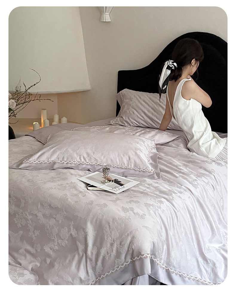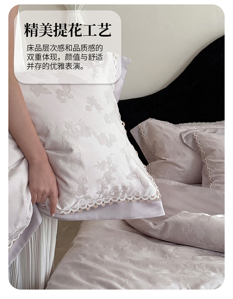 当前位置: 91家纺网 > 商品网购 > 床品套件 > 四件套 > 提花四件套 > 爱缦 2026新款玫瑰蝶翼系列高精密金银丝天丝棉提花工艺款优质高端四件套 芋泥紫