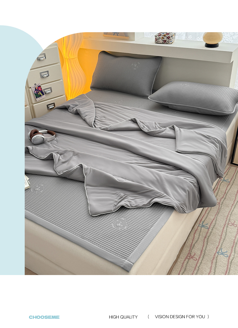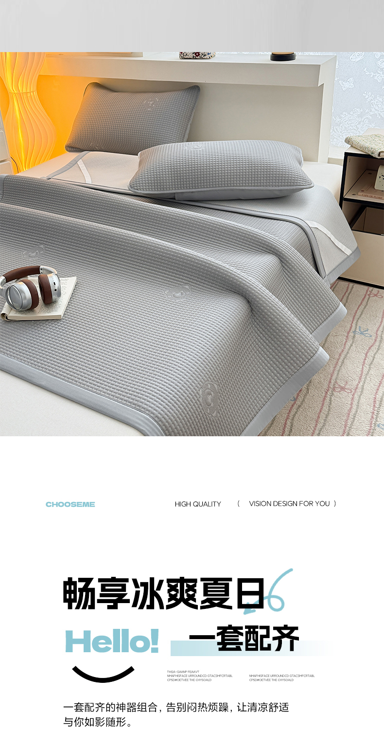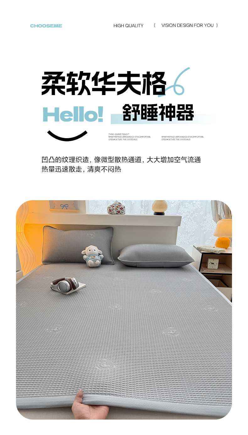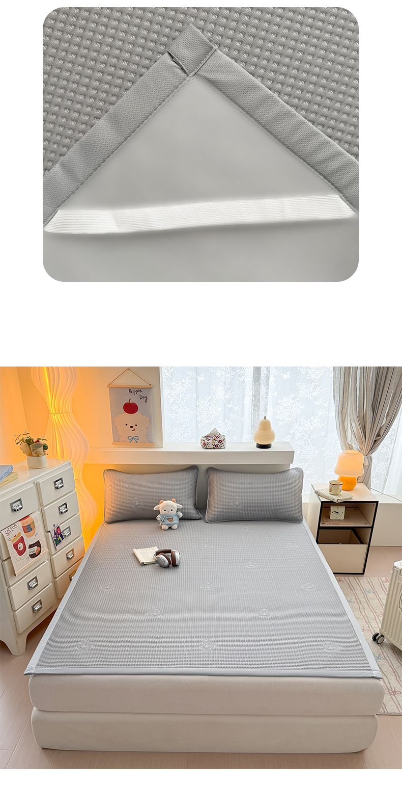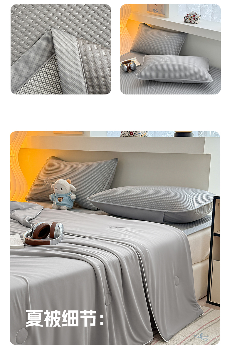 商品名称:(总)欧邦 2026新款华夫格小熊系列凉感冰豆豆凉席绑带款夏被套件