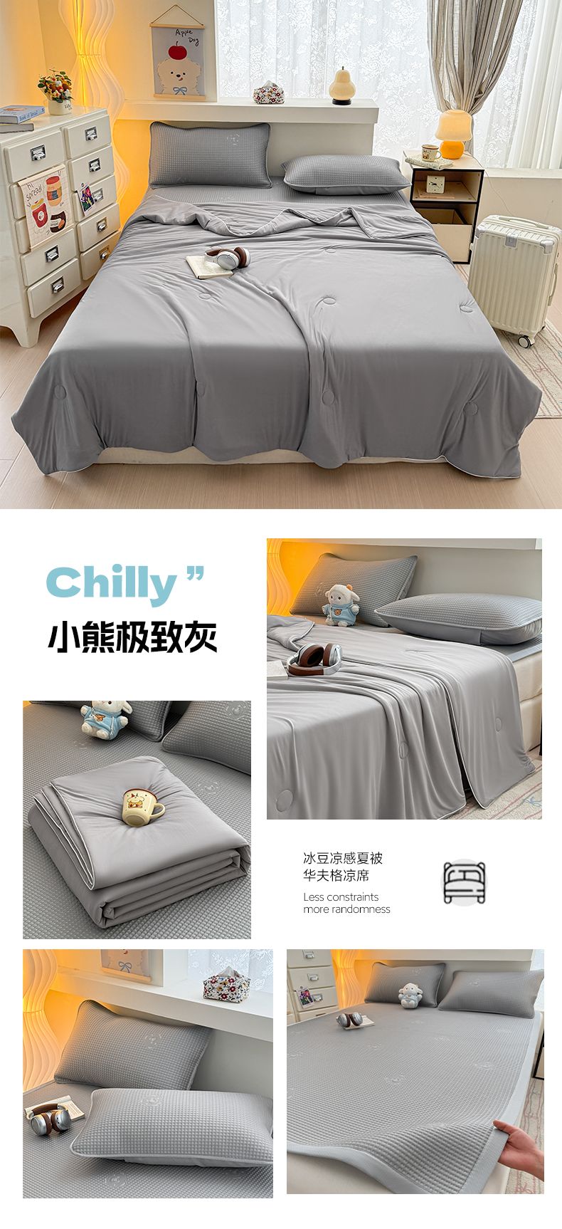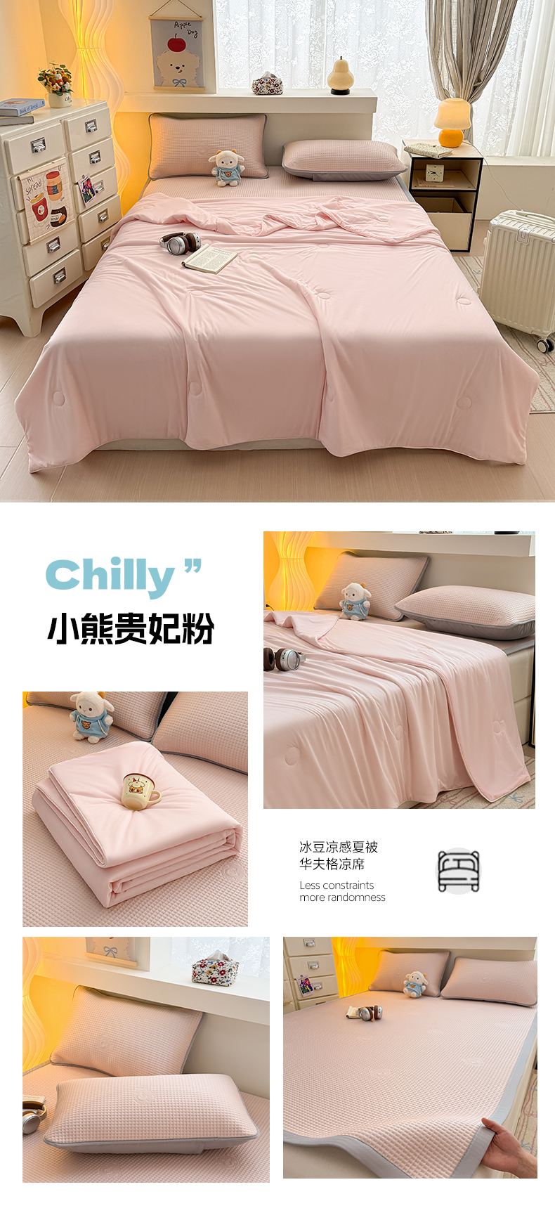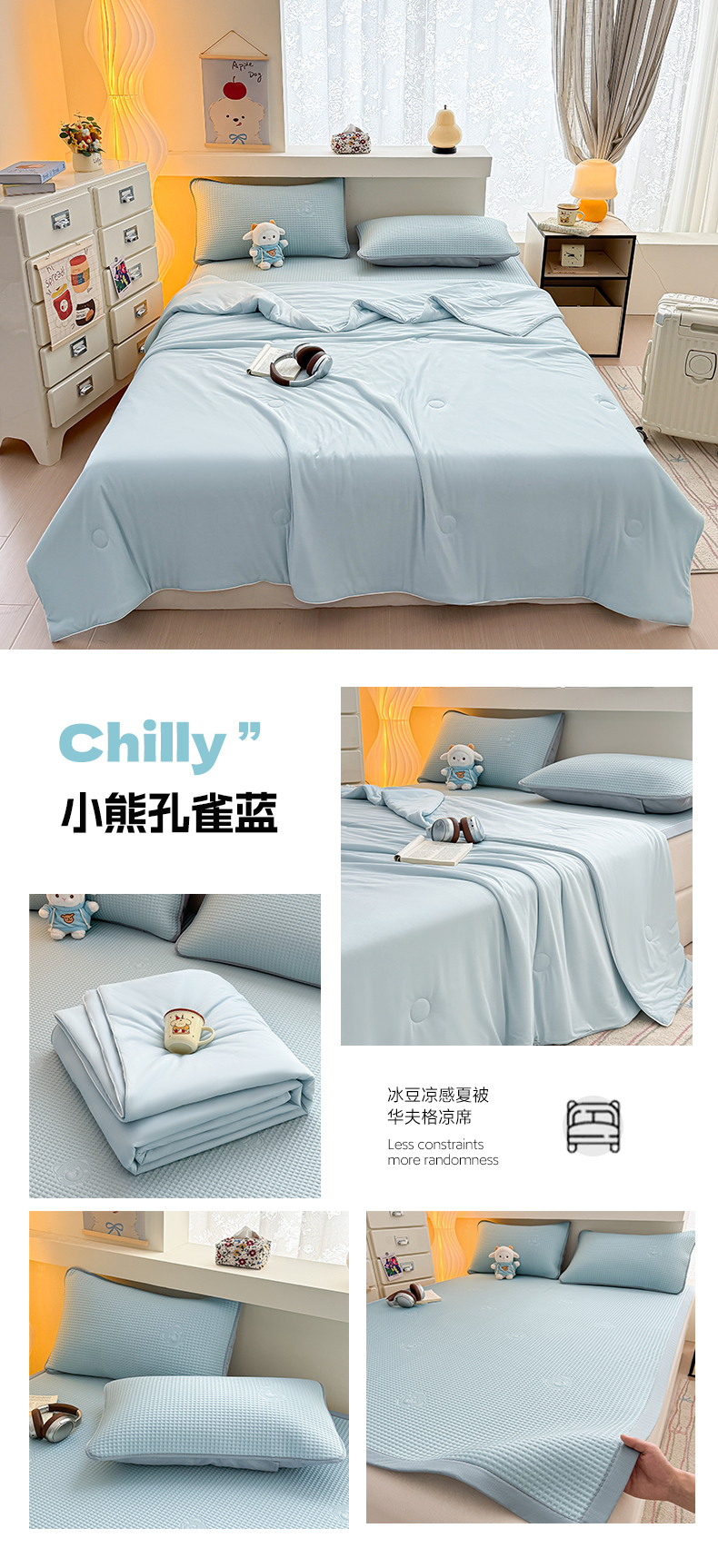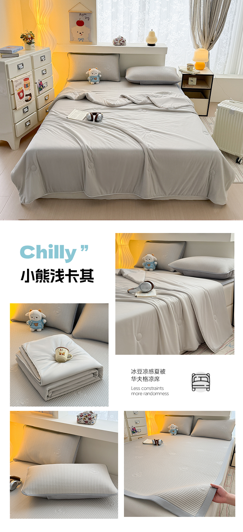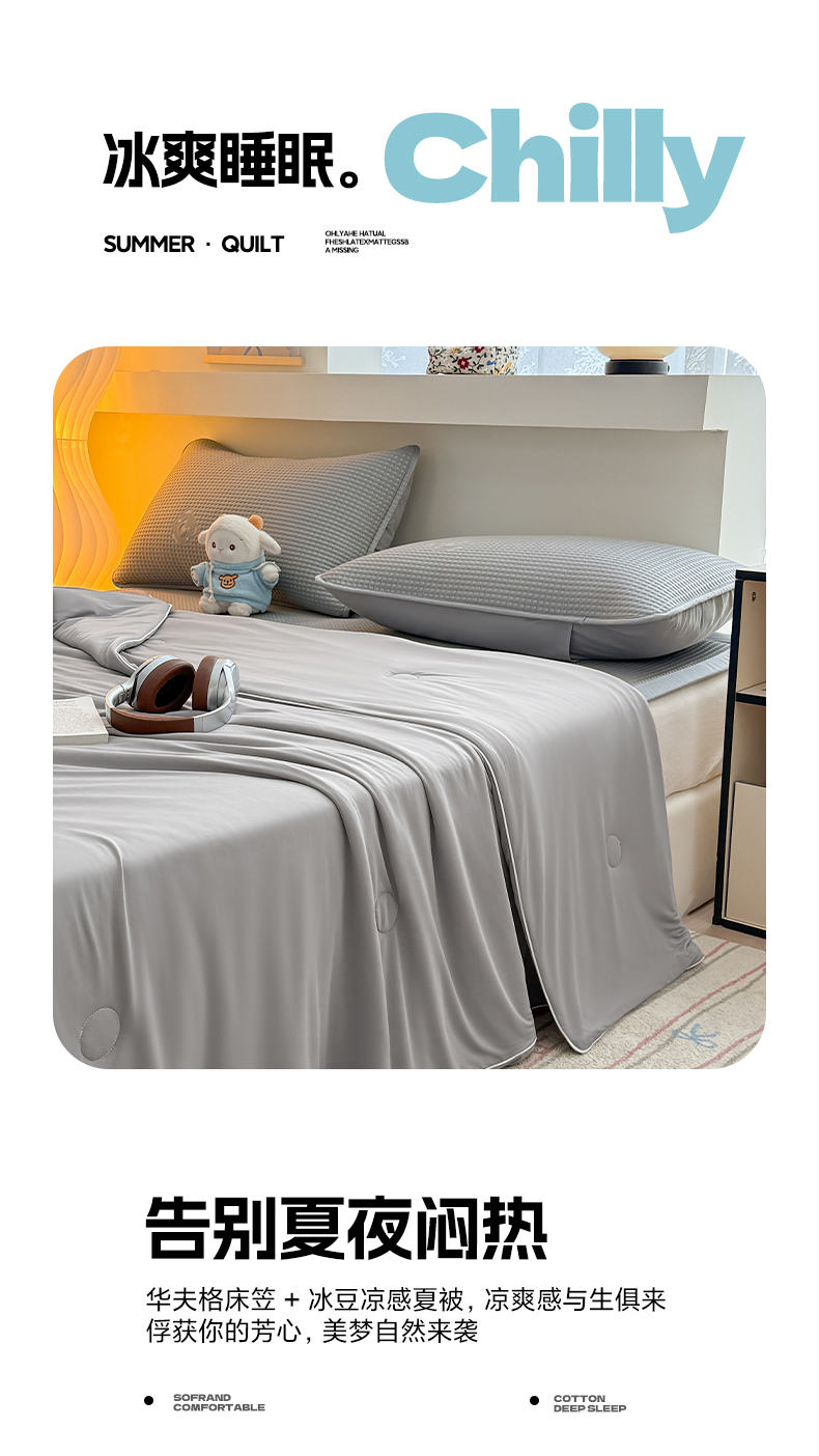 商品名称:(总)欧邦 2026新款华夫格小熊系列凉感冰豆豆凉席绑带款夏被套件
