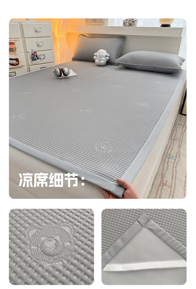(总)欧邦 2026新款三层复合刺绣超冷感PE软席雪藤席子-福禄,福禄-古铜,福禄-灰色,福禄-深棕,福禄-浅咖,组合图仅供展示-不可下单