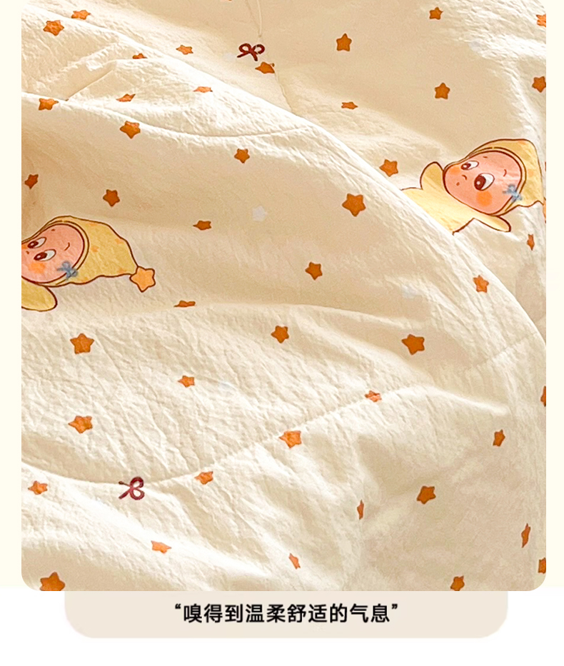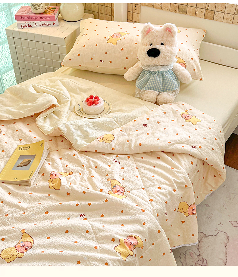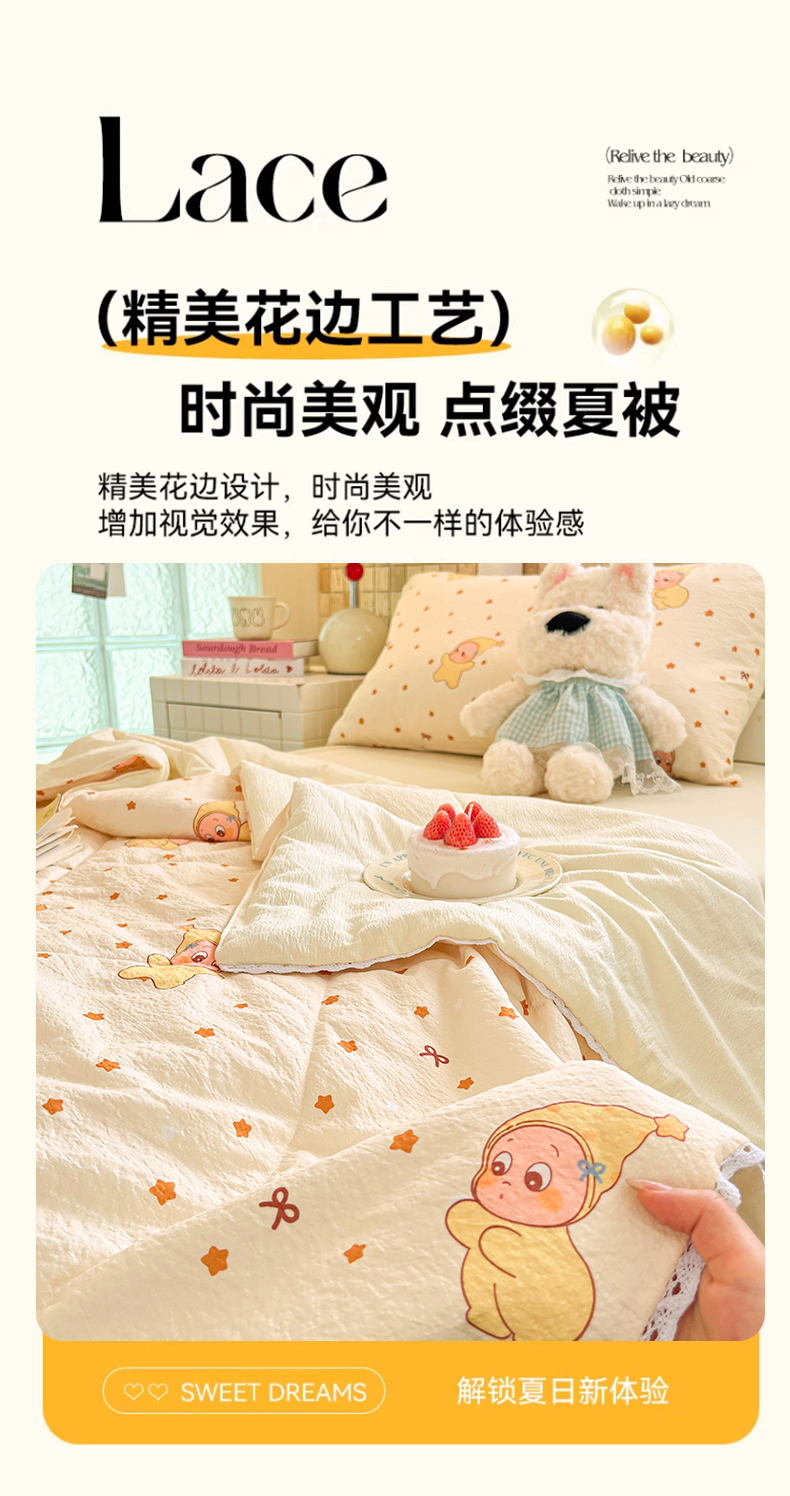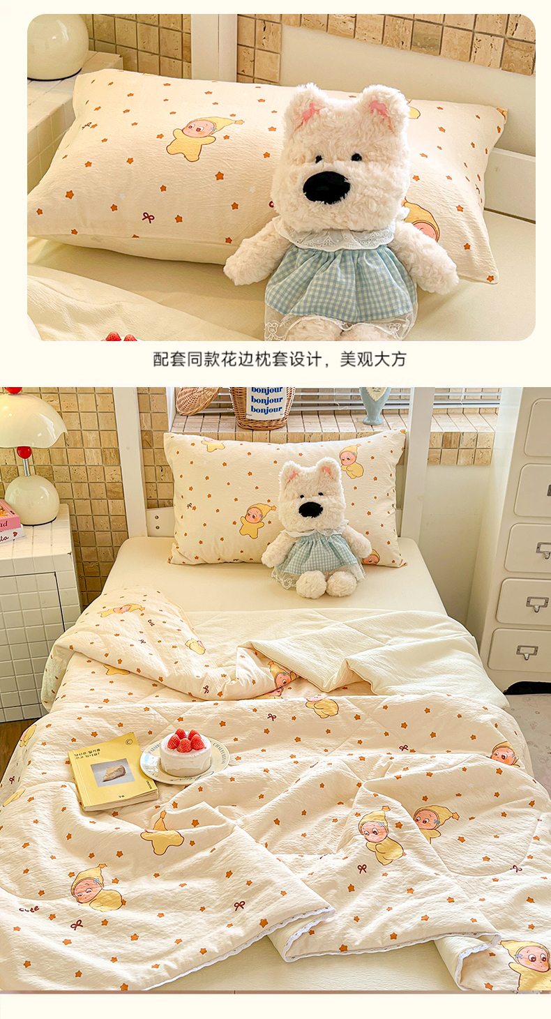 商品名称:川悦生活 2026春夏新款双层纱皱皱纱学生床夏被夏凉被空调被三件套 夏被恰星星