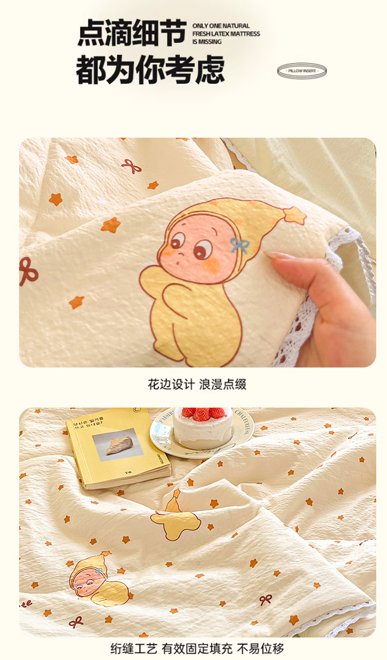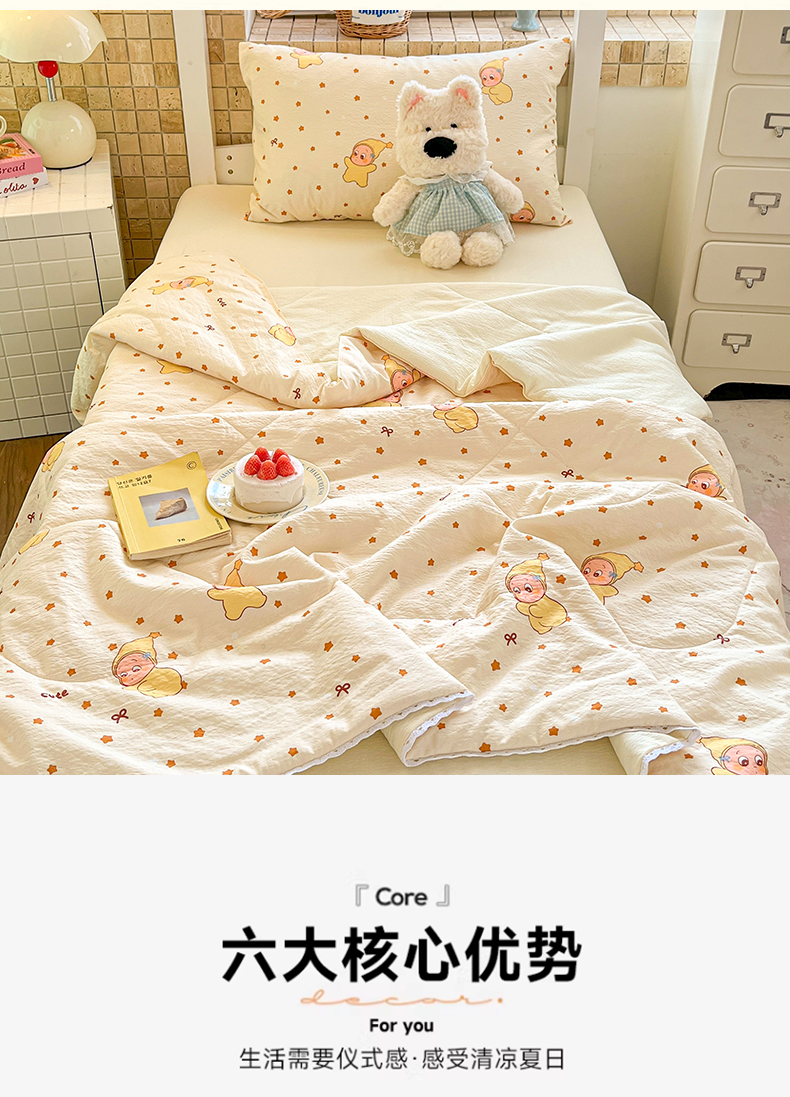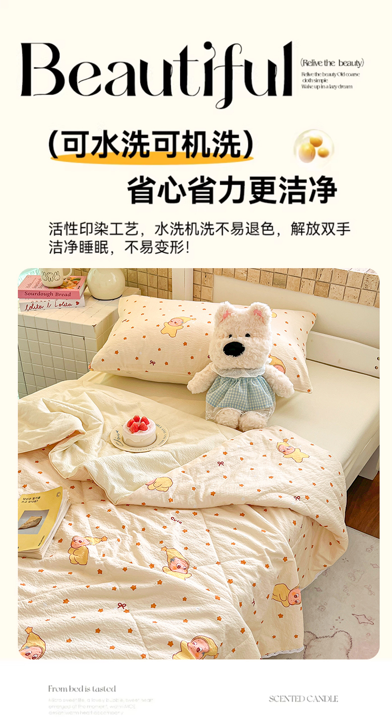 商品名称:川悦生活 2026春夏新款双层纱皱皱纱学生床夏被夏凉被空调被三件套 夏被恰星星