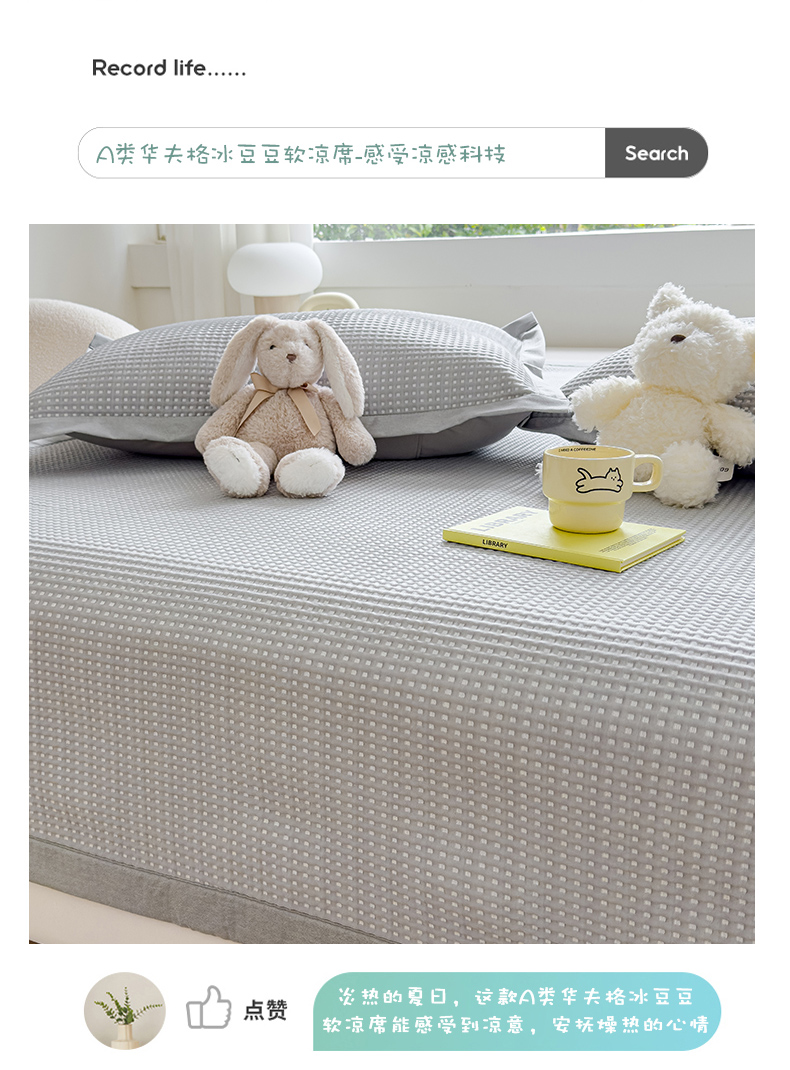 当前位置: 91家纺网 > 商品网购 > 床上用品 > 凉席 > 其他凉席 > 耀悦家纺 2026款100%乙纶凉席pe凉感华夫格凉席加厚三明治三件套床笠床席子枕套 华夫格-水绿床席款