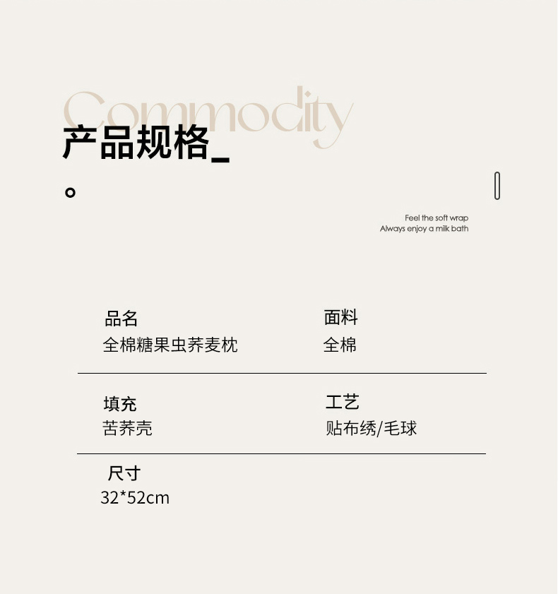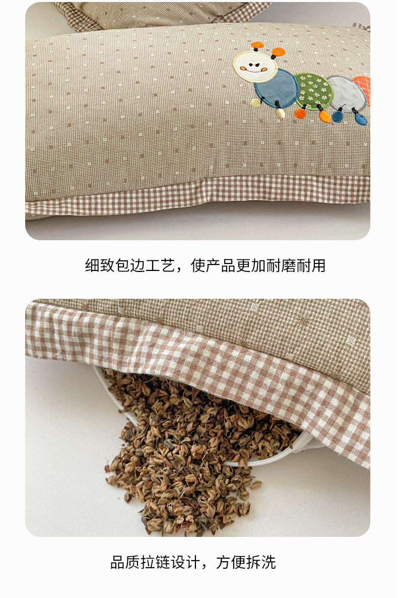 商品名称:梦叶草 2026新款全棉色织荞麦枕糖果虫荞麦枕枕头枕芯 糖果虫-咖色