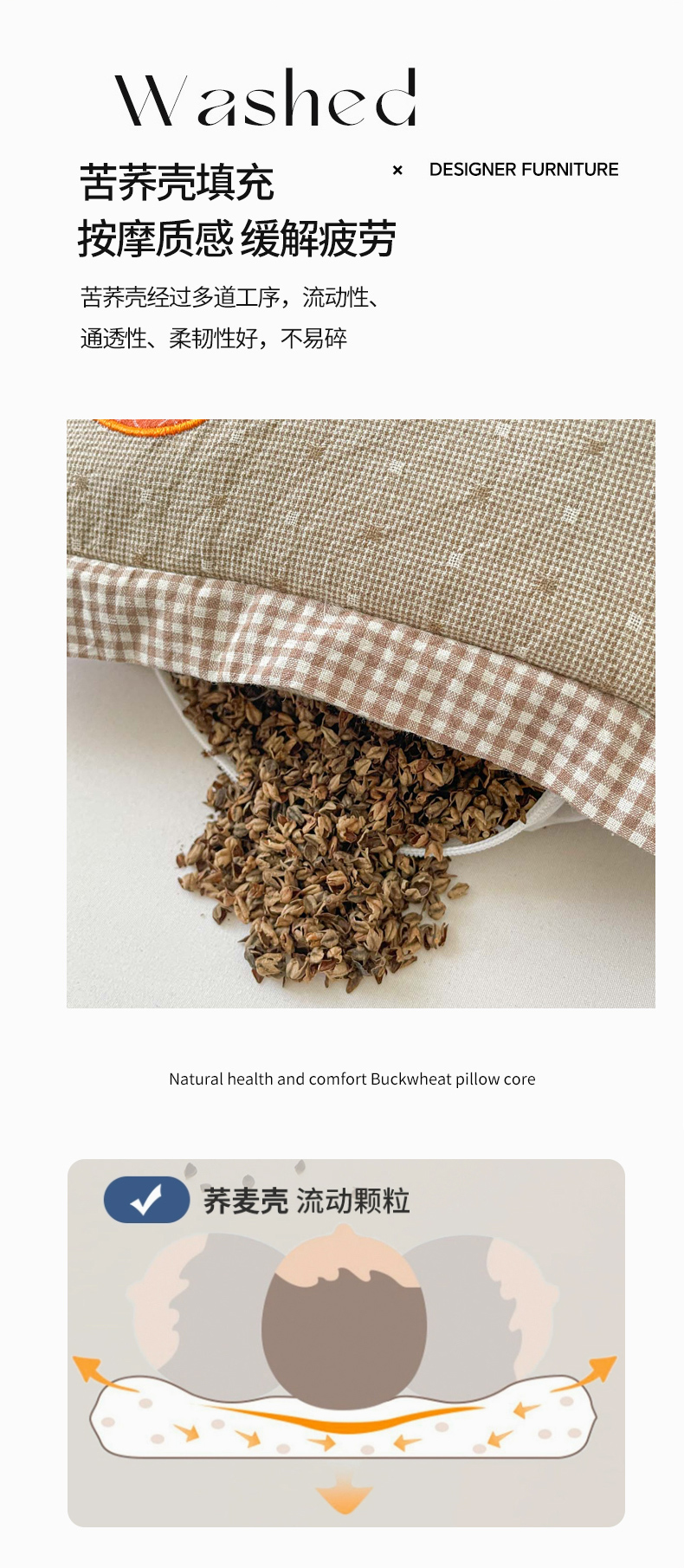 (总)梦叶草 2026新款棉麻贴布绣透气立体网荞麦枕 枕头枕芯,棉麻透气荞麦枕-灰色,棉麻透气荞麦枕-咖色,棉麻透气荞麦枕-蓝色,棉麻透气荞麦枕-绿色