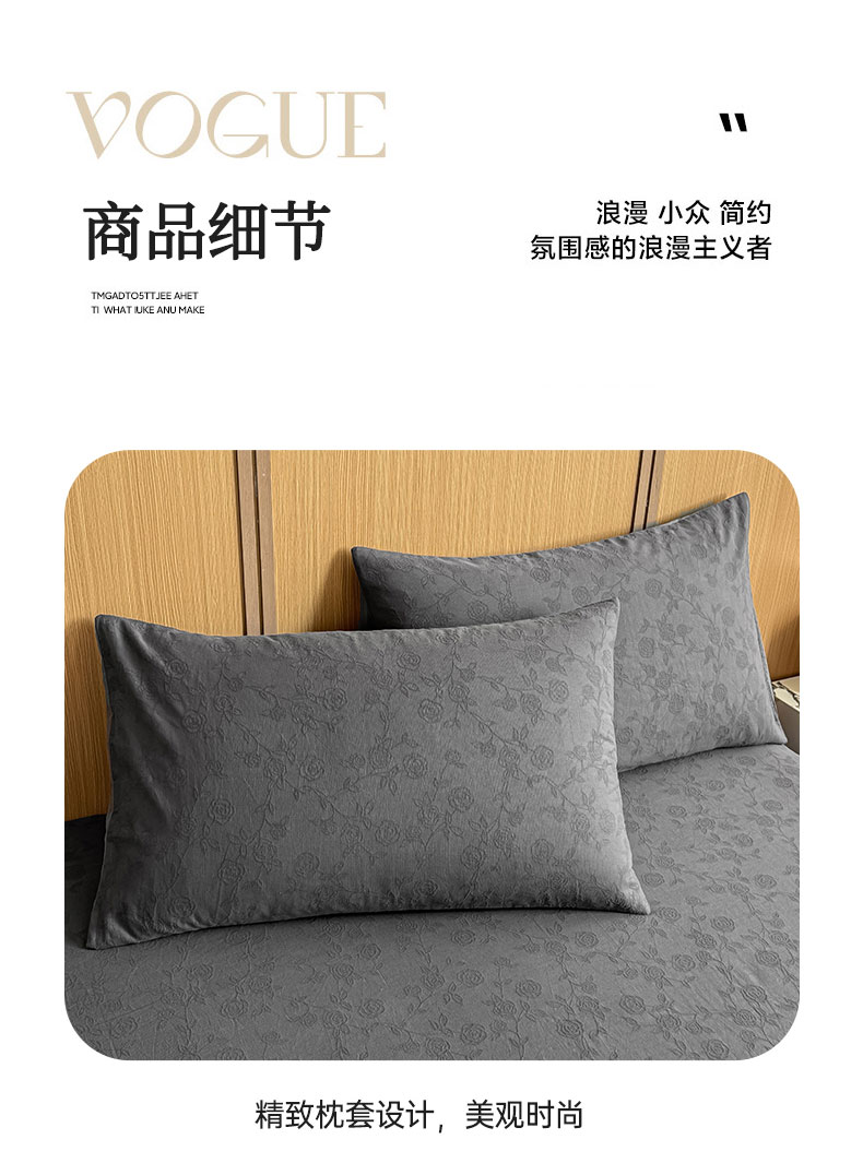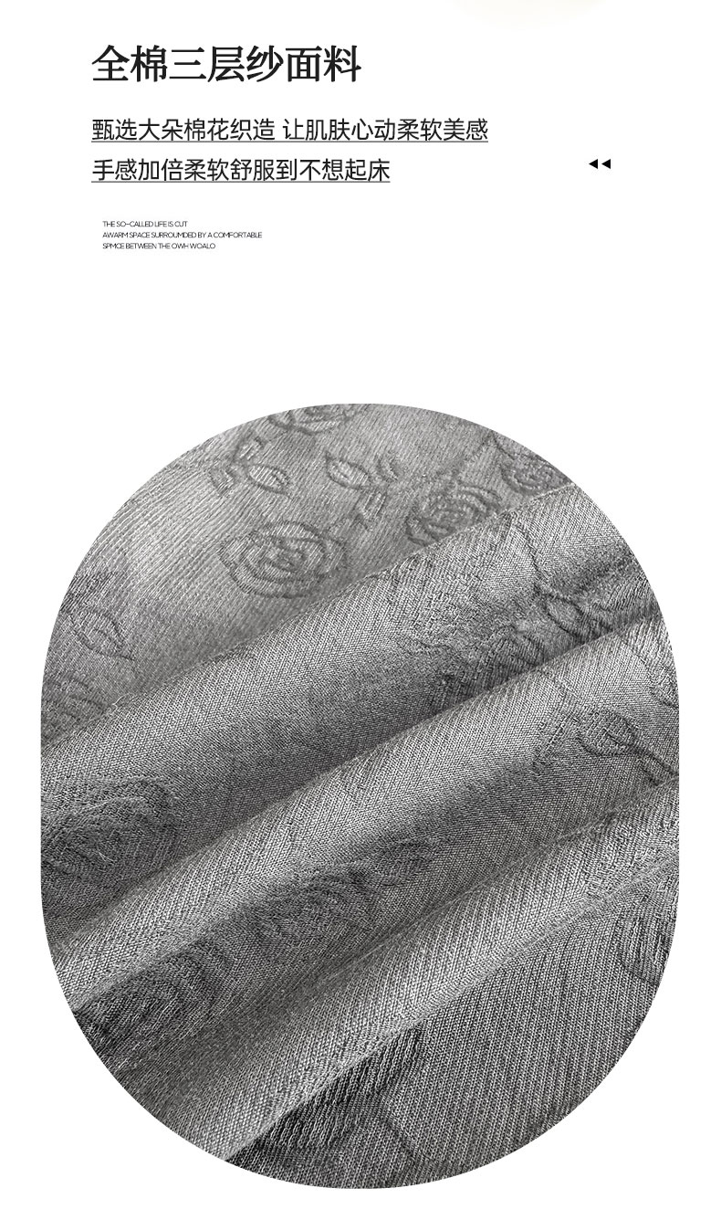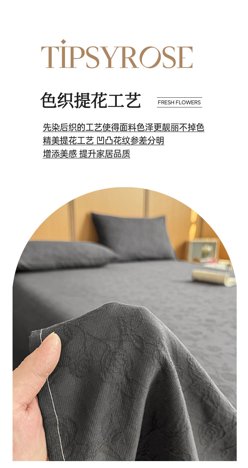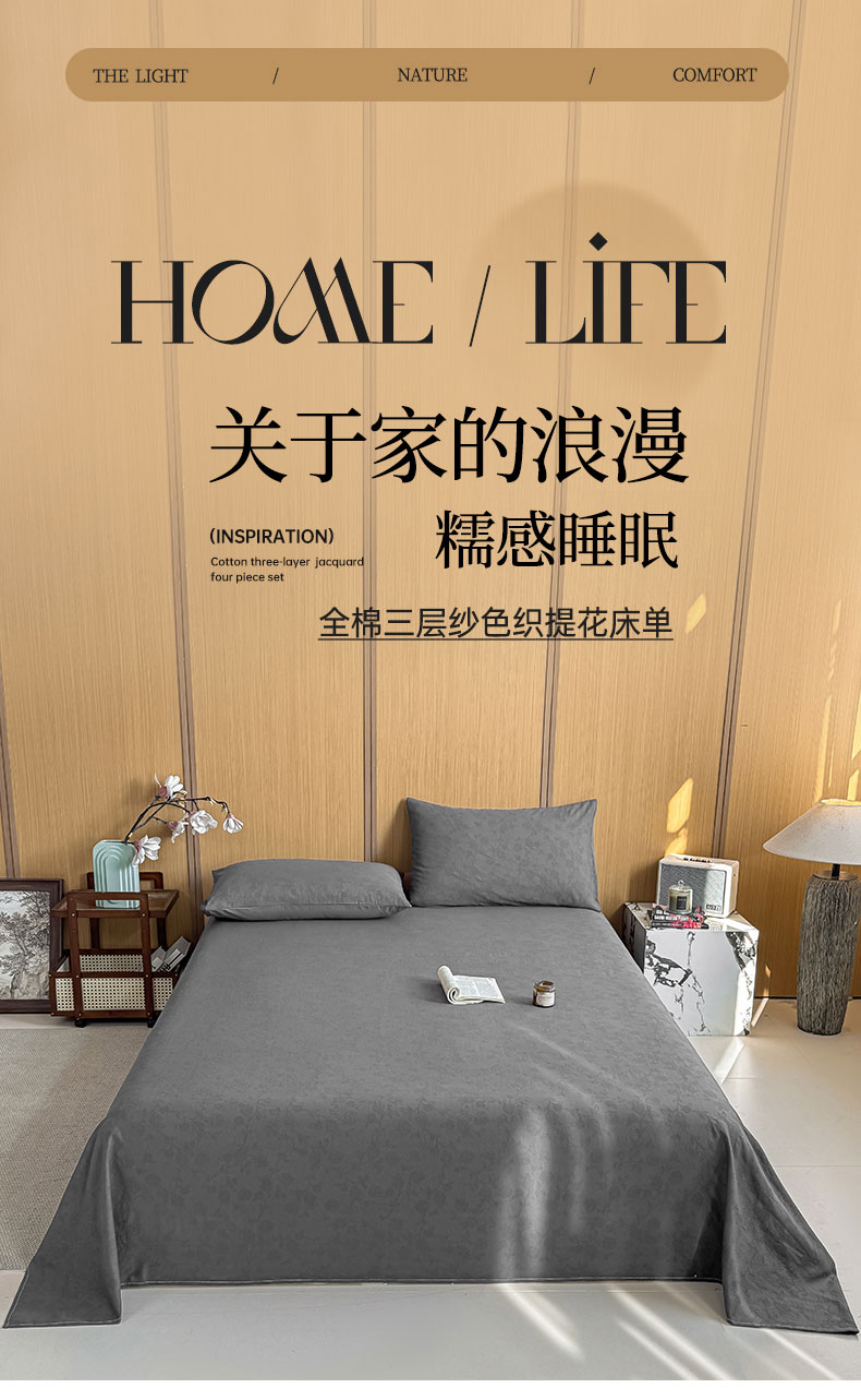 • 91家纺网 家纺一手货源 找家纺 灰鲸 2026新款全棉简约三层纱色织提花单品床单 蔷薇-素墨