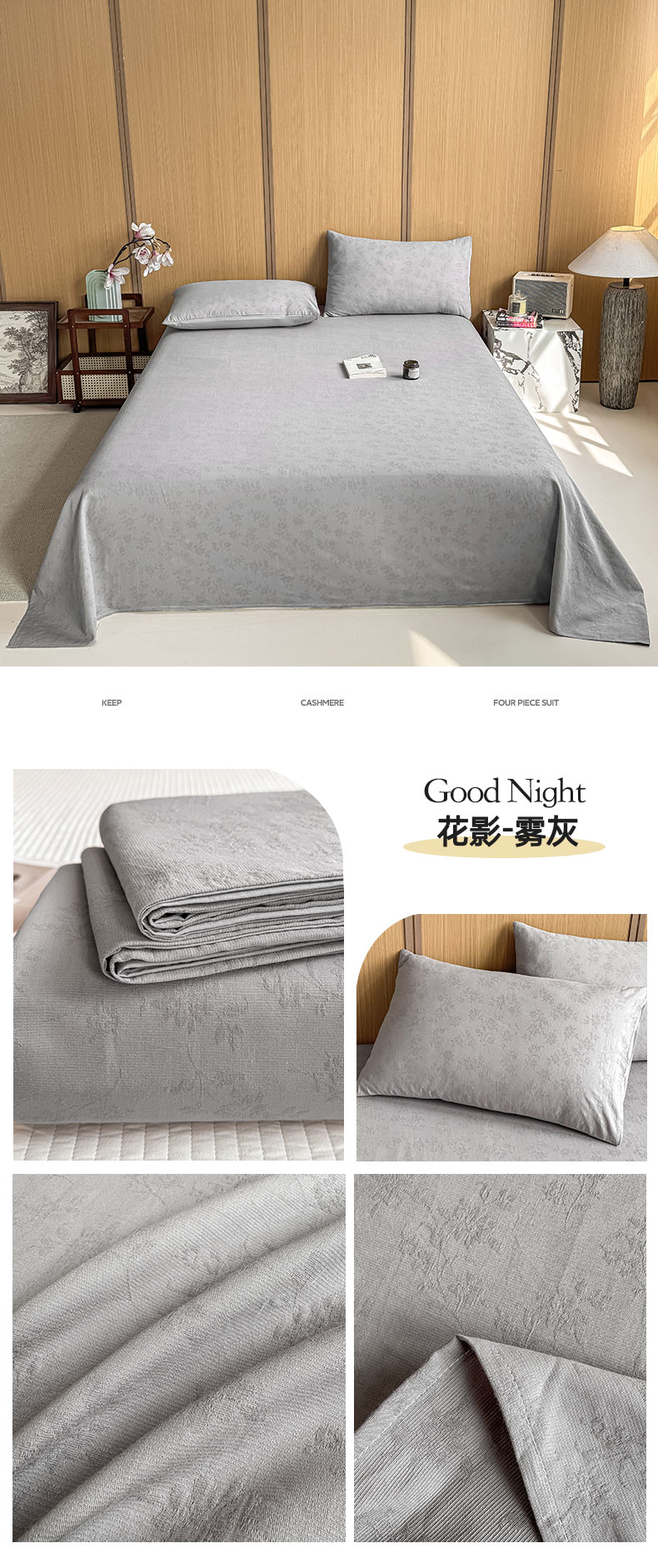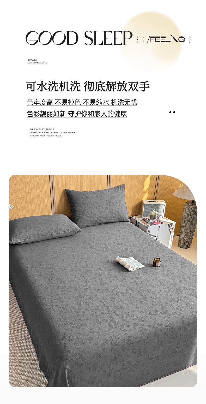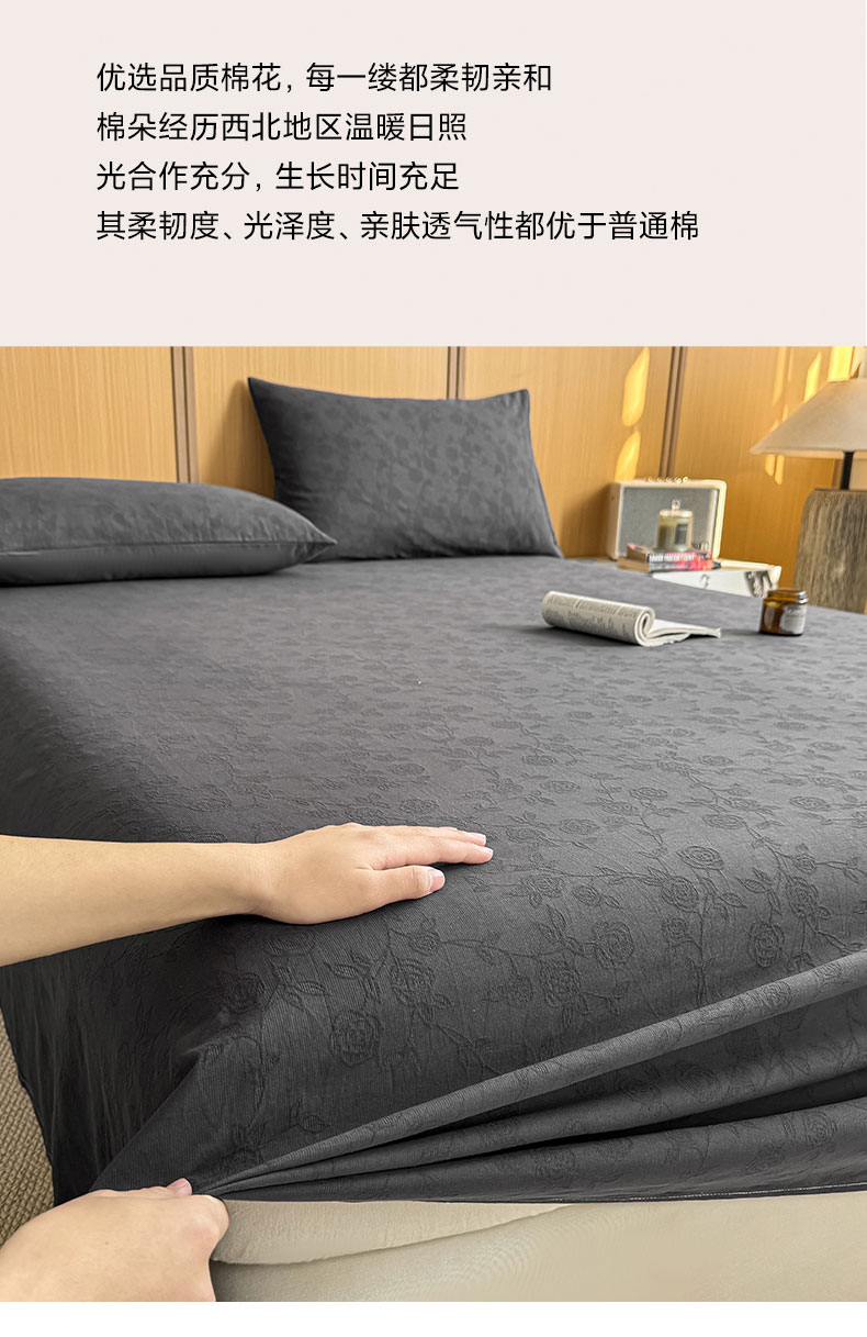 • 91家纺网 家纺一手货源 找家纺 灰鲸 2026新款全棉简约三层纱色织提花单品床单 蔷薇-素墨