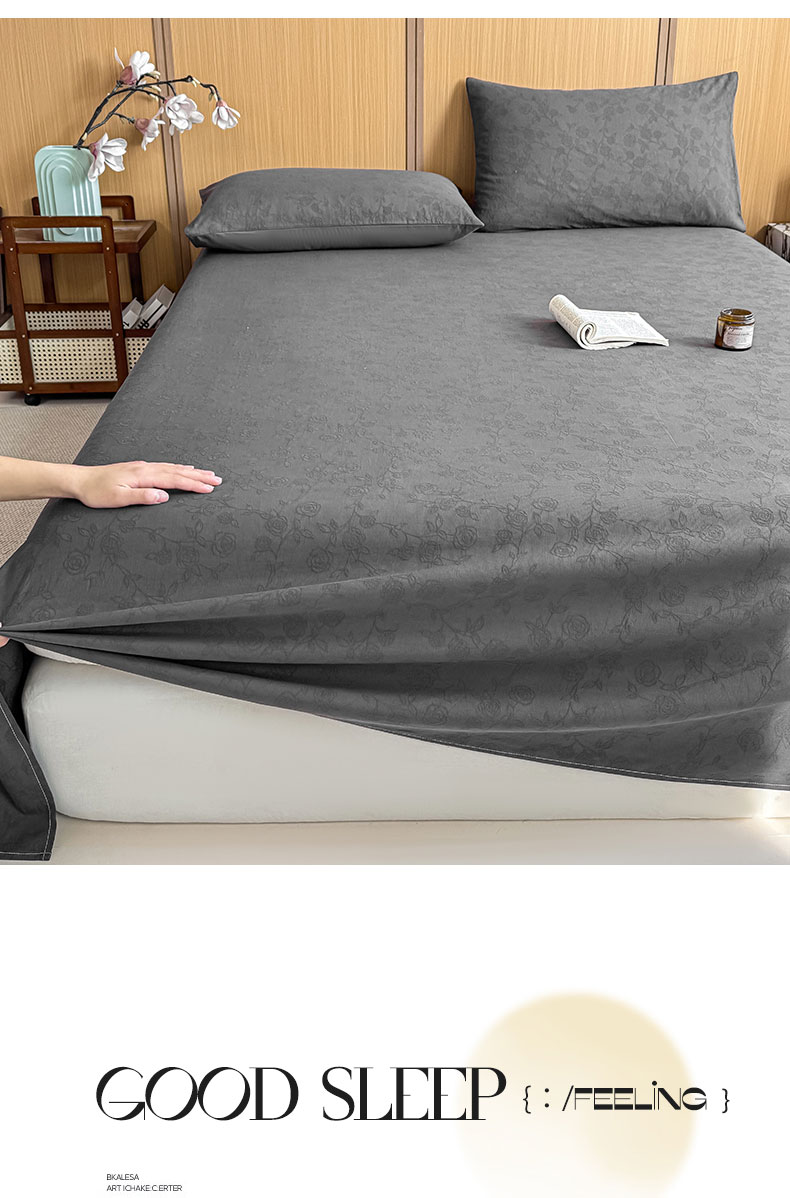 灰鲸 2026新款全棉简约三层纱色织提花单品床单 蔷薇-素墨