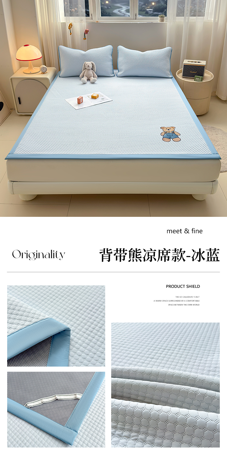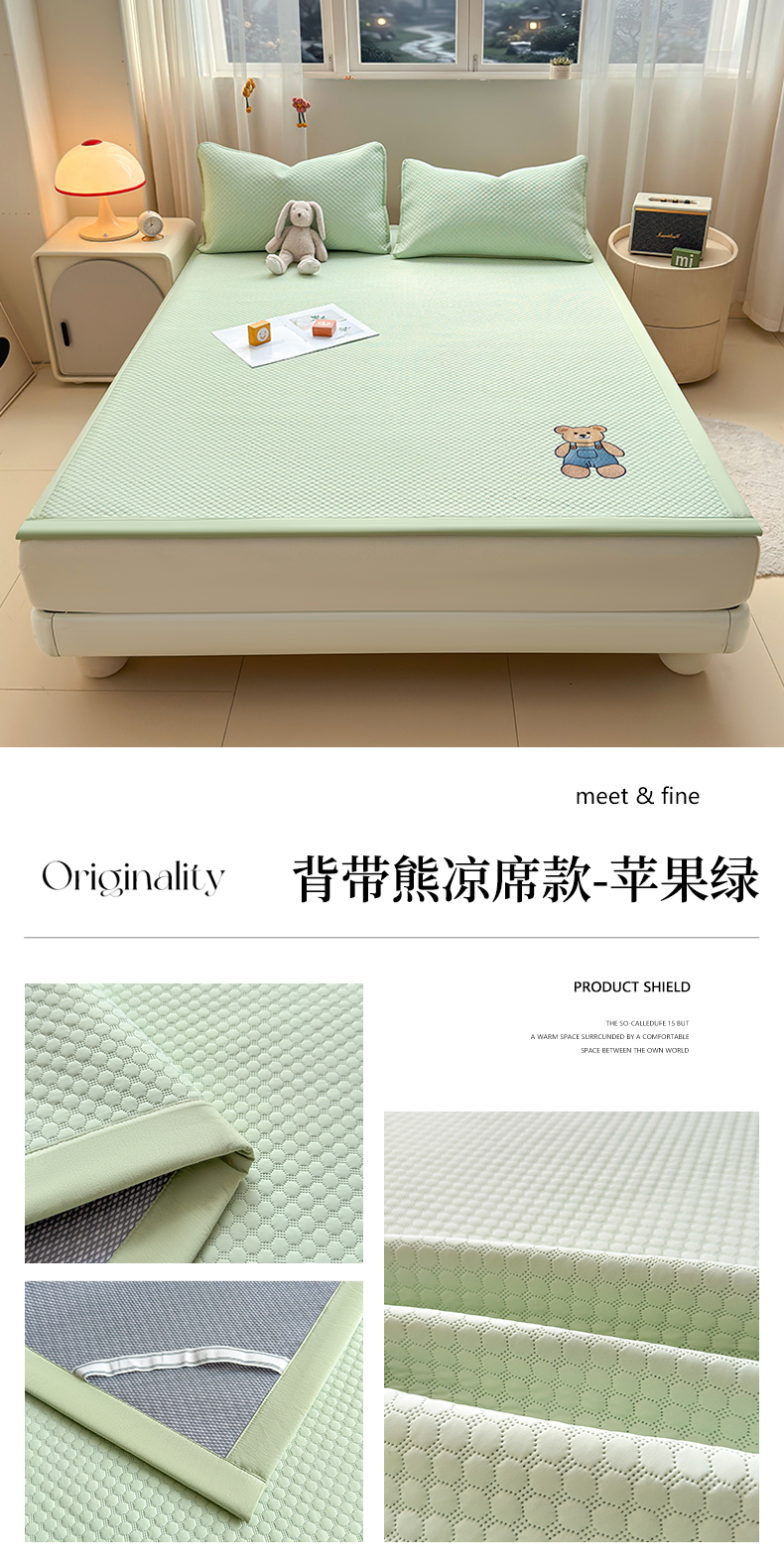 当前位置: 91家纺网 > 商品网购 > 床上用品 > 凉席 > 凉席套件 > 雯豆家纺 2026夏季新款绣花豆豆压花凉席三件套加厚三明治平铺席子纯色卡通凉席 背带熊凉席款-米黄