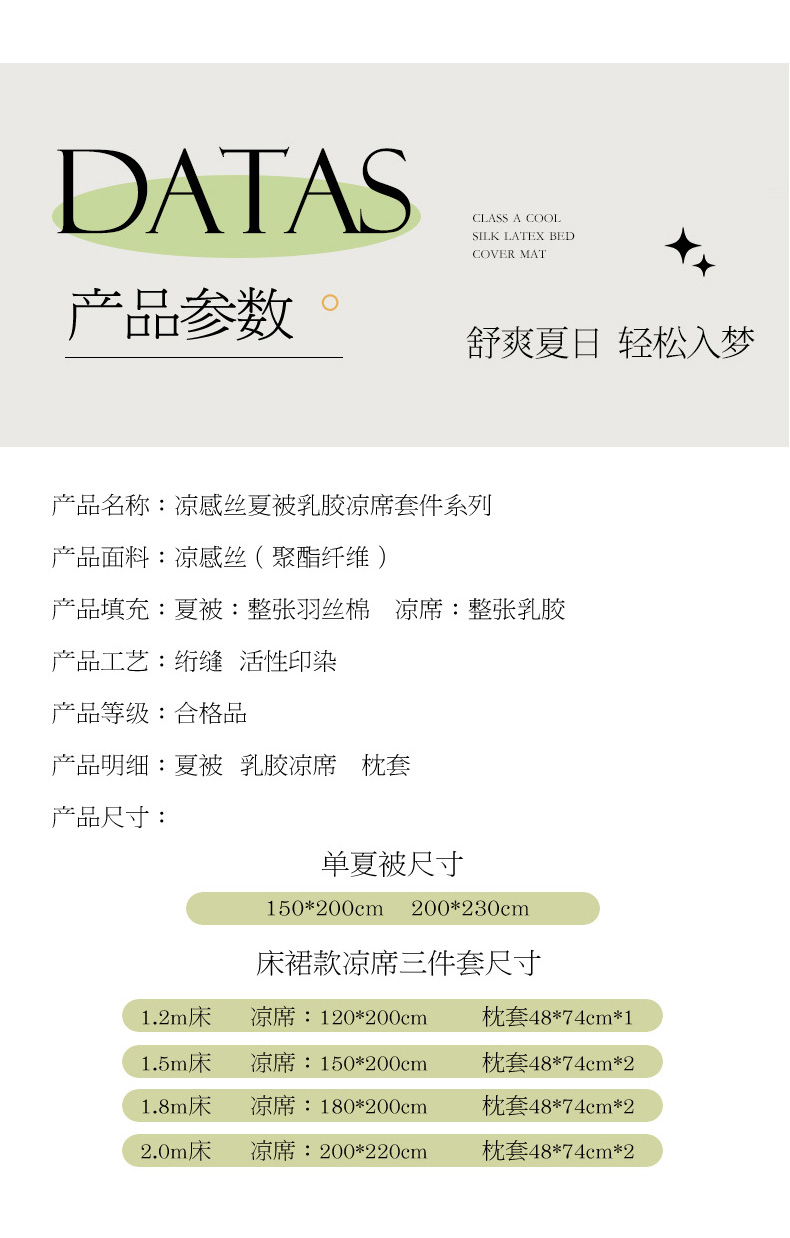 • 适用季节: 空调被/夏凉被