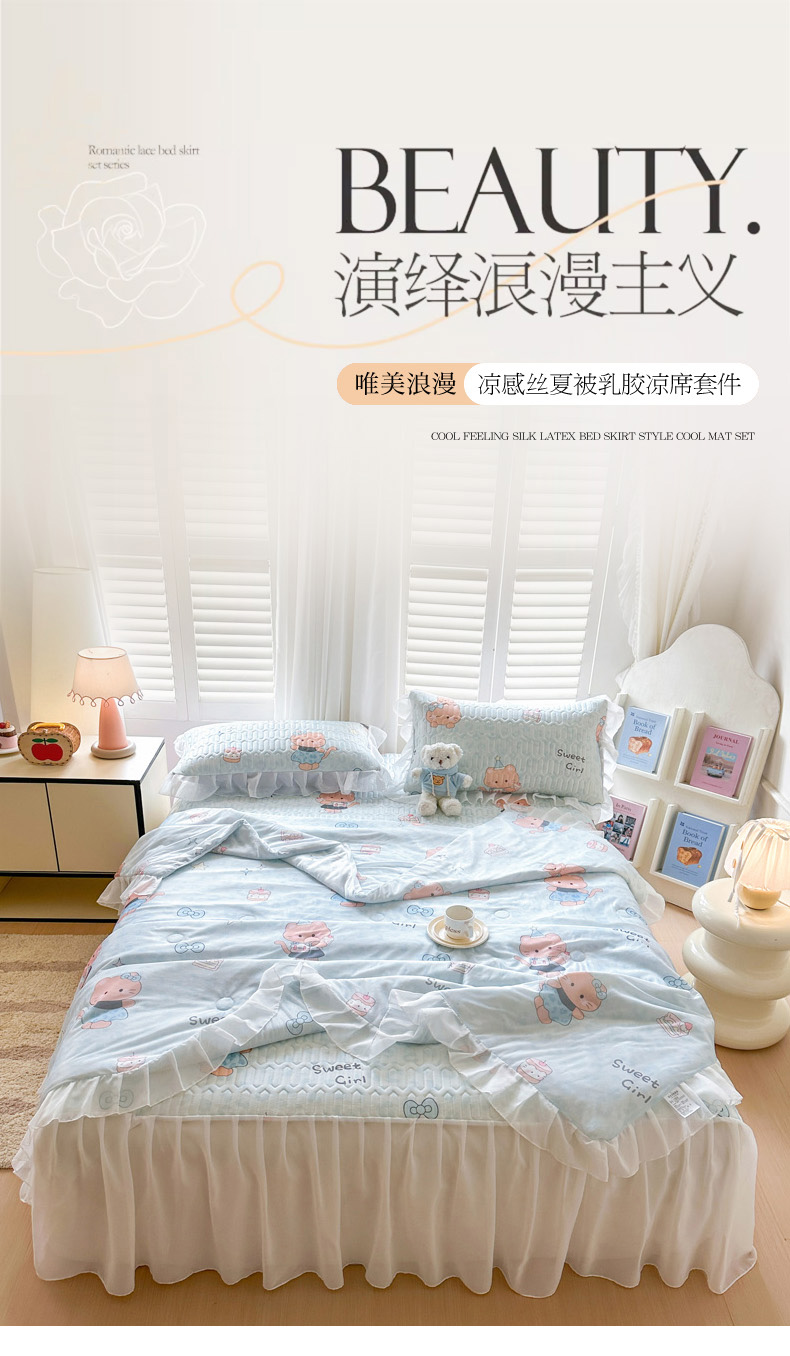 (总)慕澄2026新款小版印花床裙款乳胶凉席凉感丝夏被四件套,薄荷日记,春季花花,嘟嘟旺仔,粉蓝乐园,赫本,黑波点,黑蝴蝶,玫瑰结,美乐蒂,浅蓝条纹,素描花,小飞马,小精灵,小猫茶话会,叶子青青,紫系小兔
