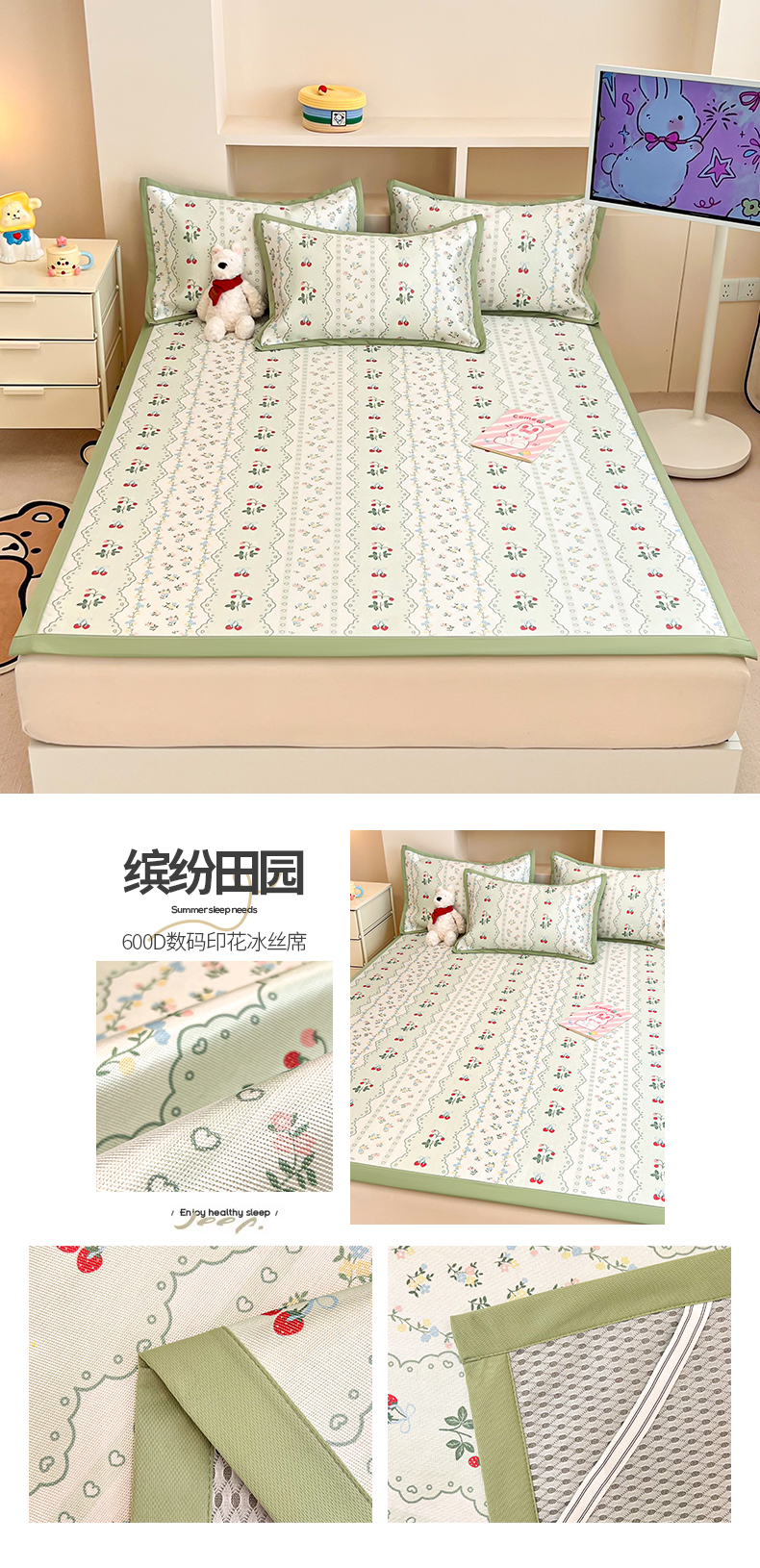 (总)懒猫家纺 2026春夏新款600D数码印花冰藤凉席席子-床笠款,芭蕾小兔,草莓与花,春意花香,呆萌小兔,动物汽车,独角兽-白,独角兽-粉,法式田园,粉色爱心,海底世界,蝴蝶领带熊,花朵粉兔,花田小兔,蓝色花骨朵,浪漫郁金香,莓果心事,奶茶猫咪,曲奇小狗,森林小熊,狮子王,时光清浅,睡意朦胧,硕果,甜品小狗,甜品小屋,甜心天使,兔兔花开,玩耍小狗-蓝,玩耍小狗-绿,小爱心,小恐龙,小恐龙怪兽,小猫泡泡浴,小星愿,小熊仔,小鸭子,星月,游乐园,郁金香