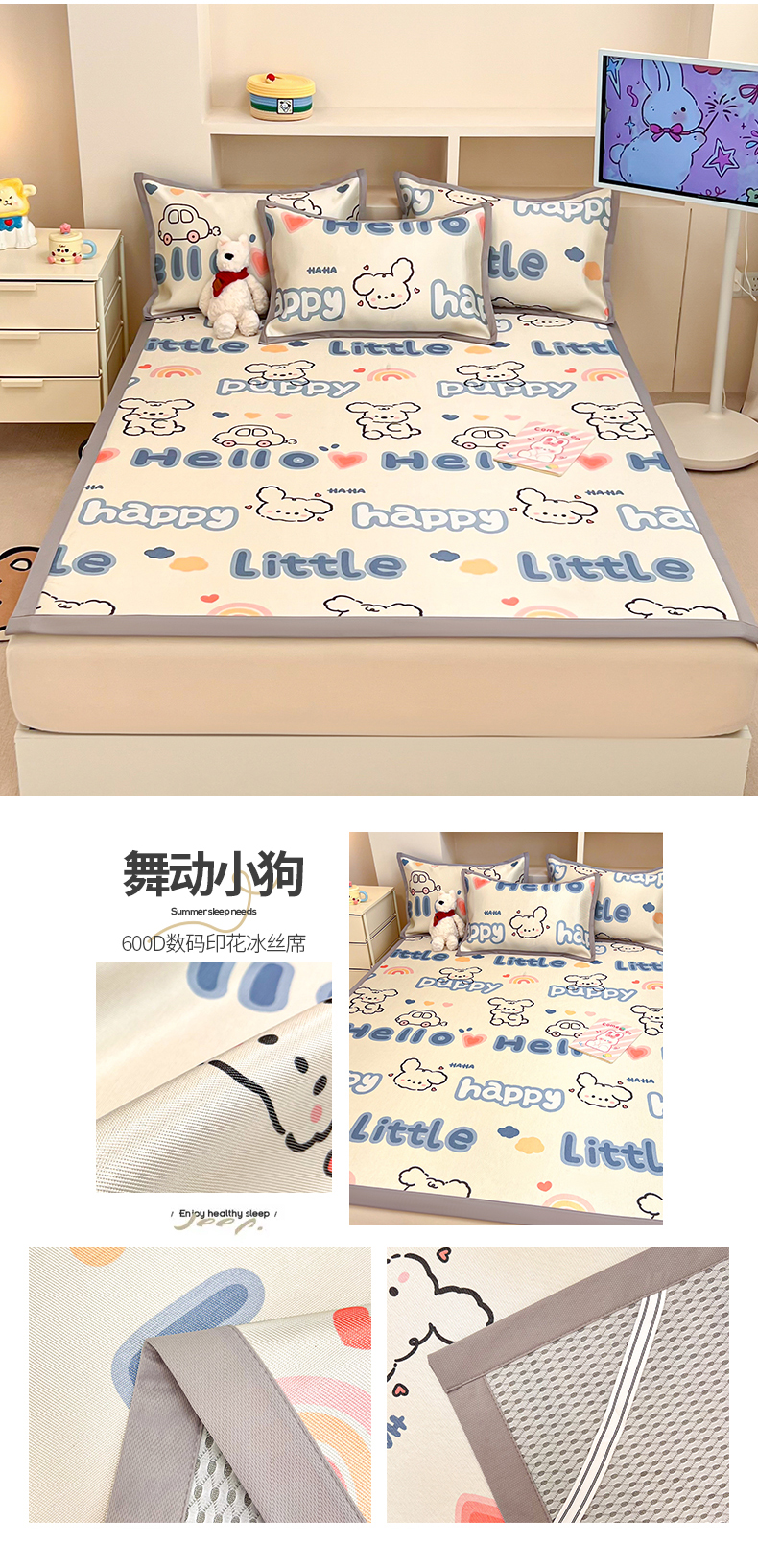 (总)懒猫家纺 2026新款250D数码印花宽边圆网冰丝凉席,采花小兔,动物乐园,精灵兔,花开狗狗,告白,复古宠吧,可爱鸭,蛋糕兔子,礼物恐龙,萝卜兔,慕斯小猫,奶芙小狗,清晨,手绘爱心,探索星球,桃心小熊,甜品屋,小兔子,小羊咩咩,邂逅,心心小兔,辛巴,星光小熊,星乐小喵,星月湾,星月小狗-蓝,星月小狗-绿,元气兔
