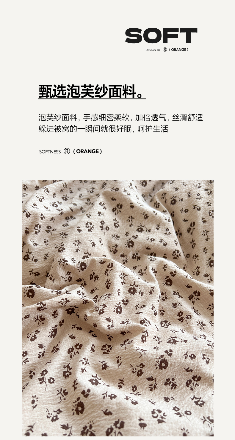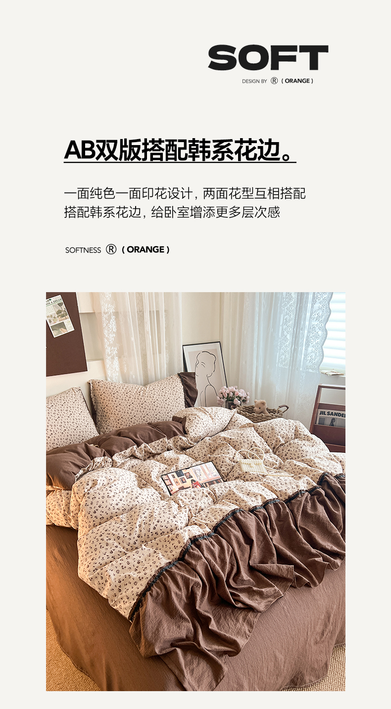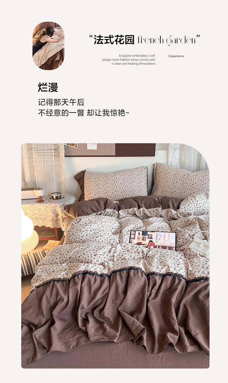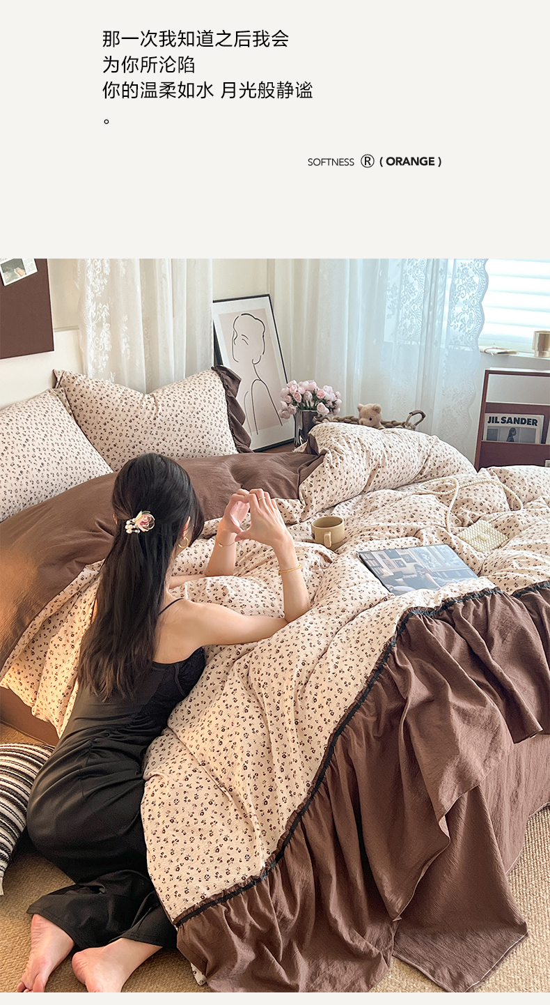 商品名称:晨曦家纺 2026新款韩系法式慵懒氛围感印花泡芙花边四件套 森系精灵