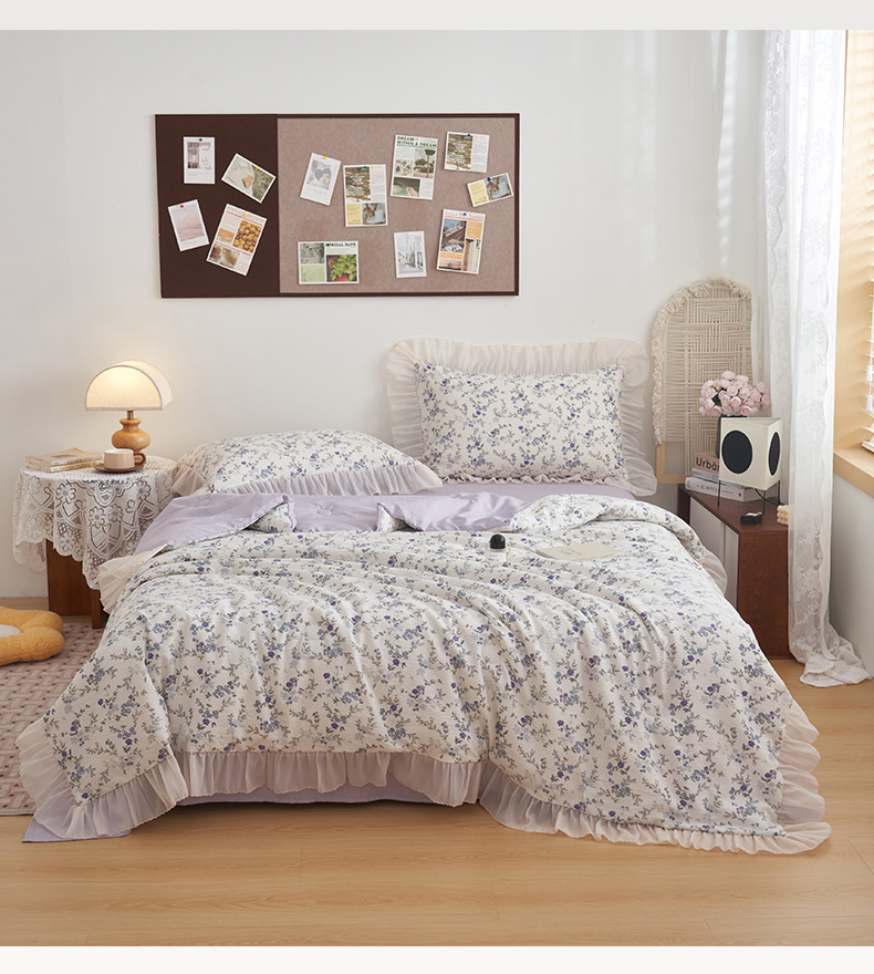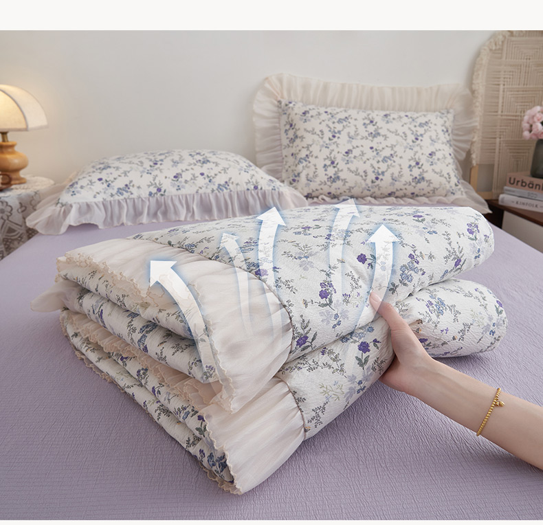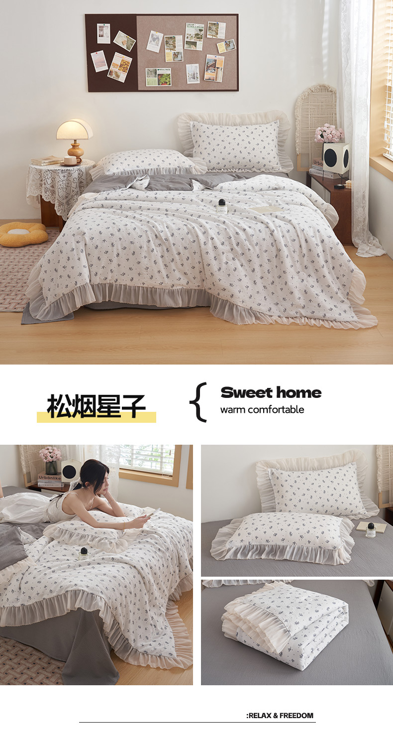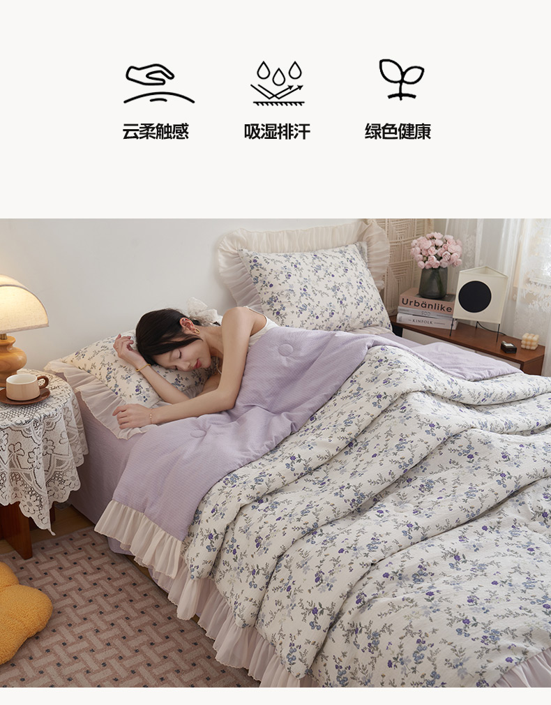 当前位置: 91家纺网 > 商品网购 > 床品套件 > 四件套 > 夏被四件套 > 晨曦家纺 2026新款皱雾纱水洗夏凉被夏被四件套少女ins风韩版 蓝花的信