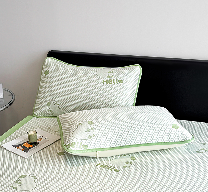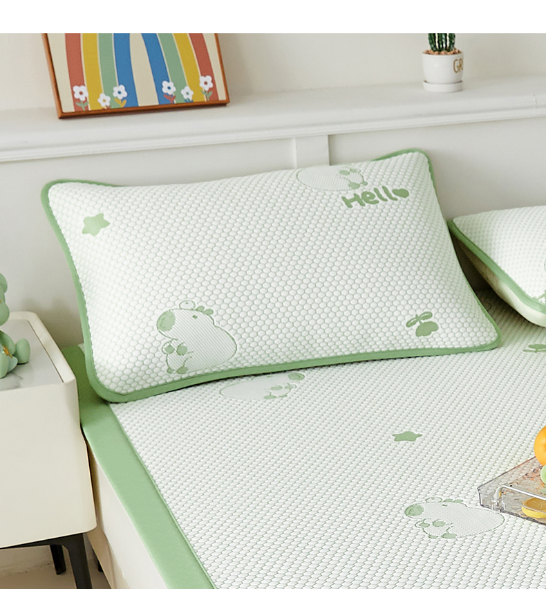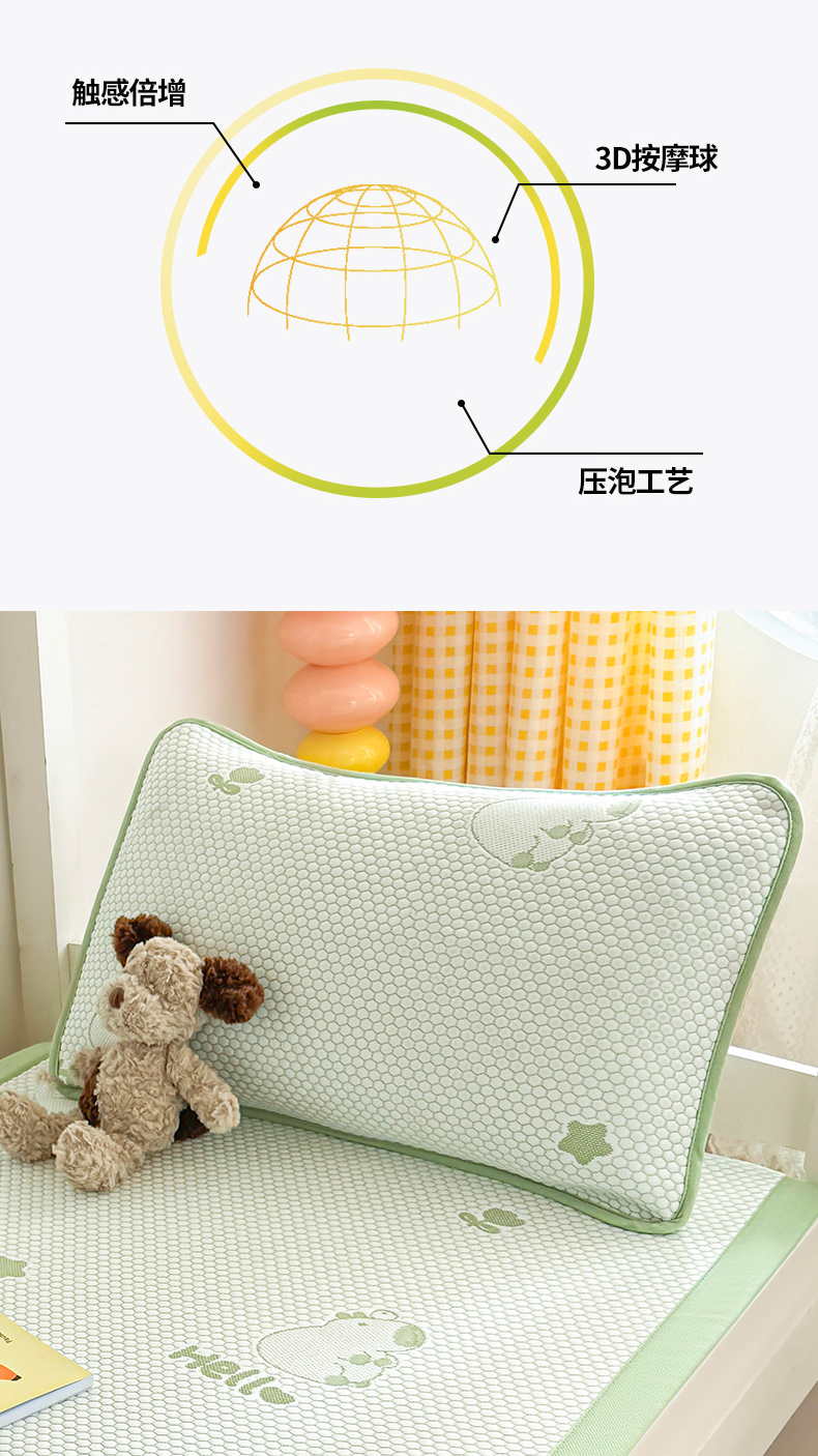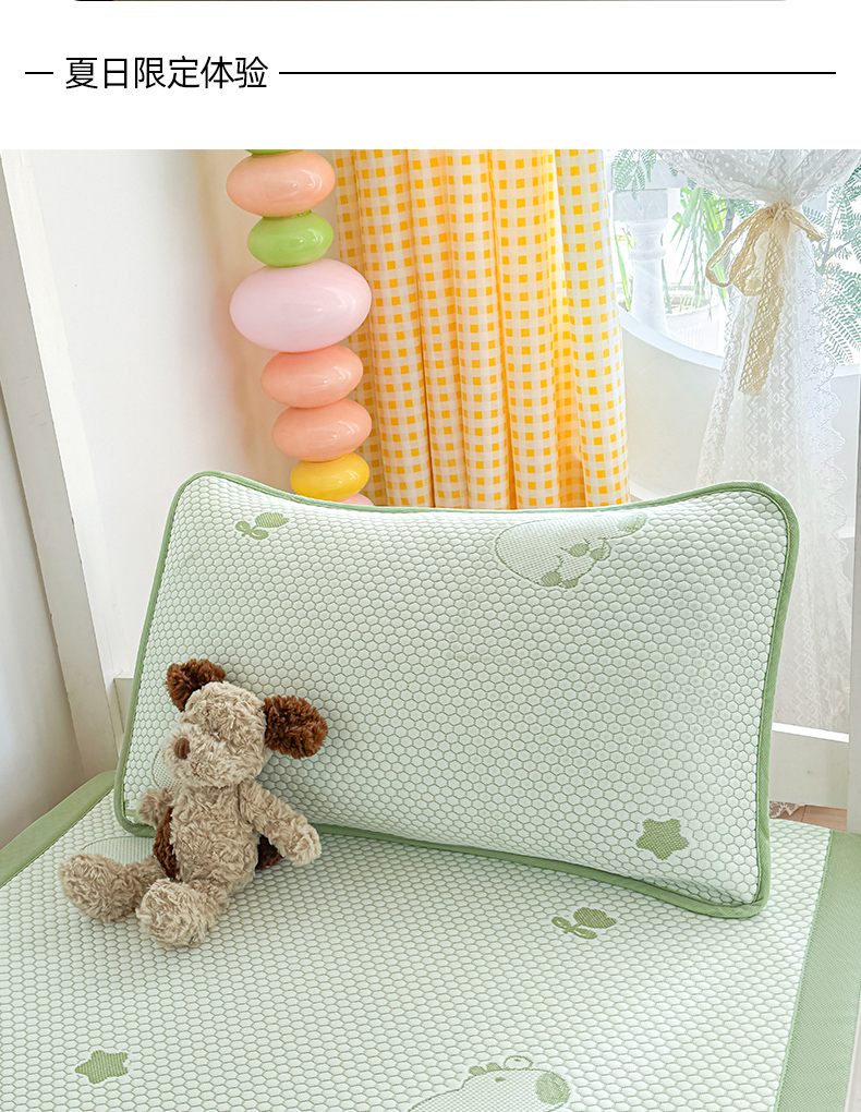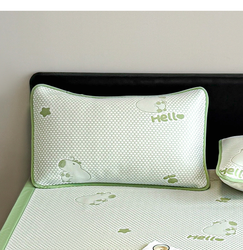 商品名称:奇丝雅 2026新款夏季A类卡通冰豆豆冰丝凉席枕套凉感家用可机洗单人学生宿舍48×74cm一只一对 卡皮巴拉-绿