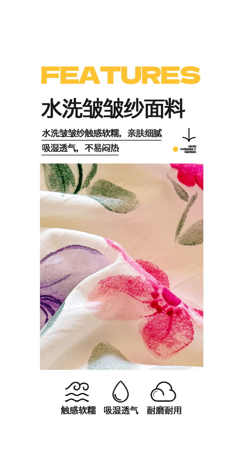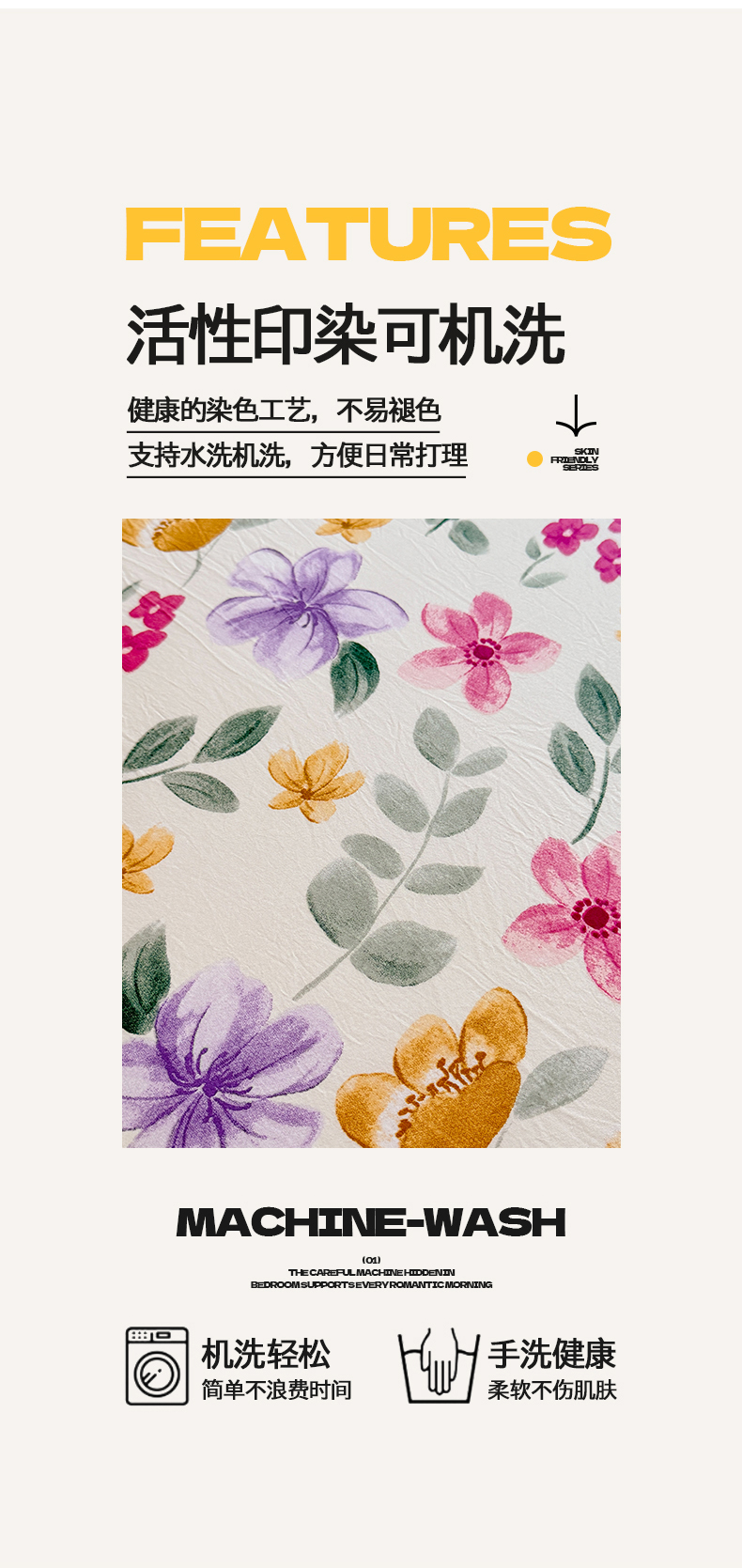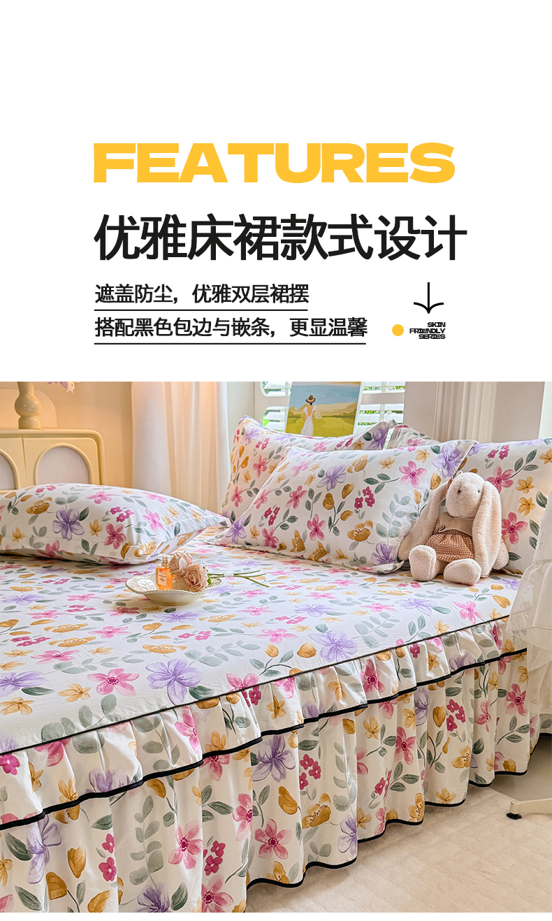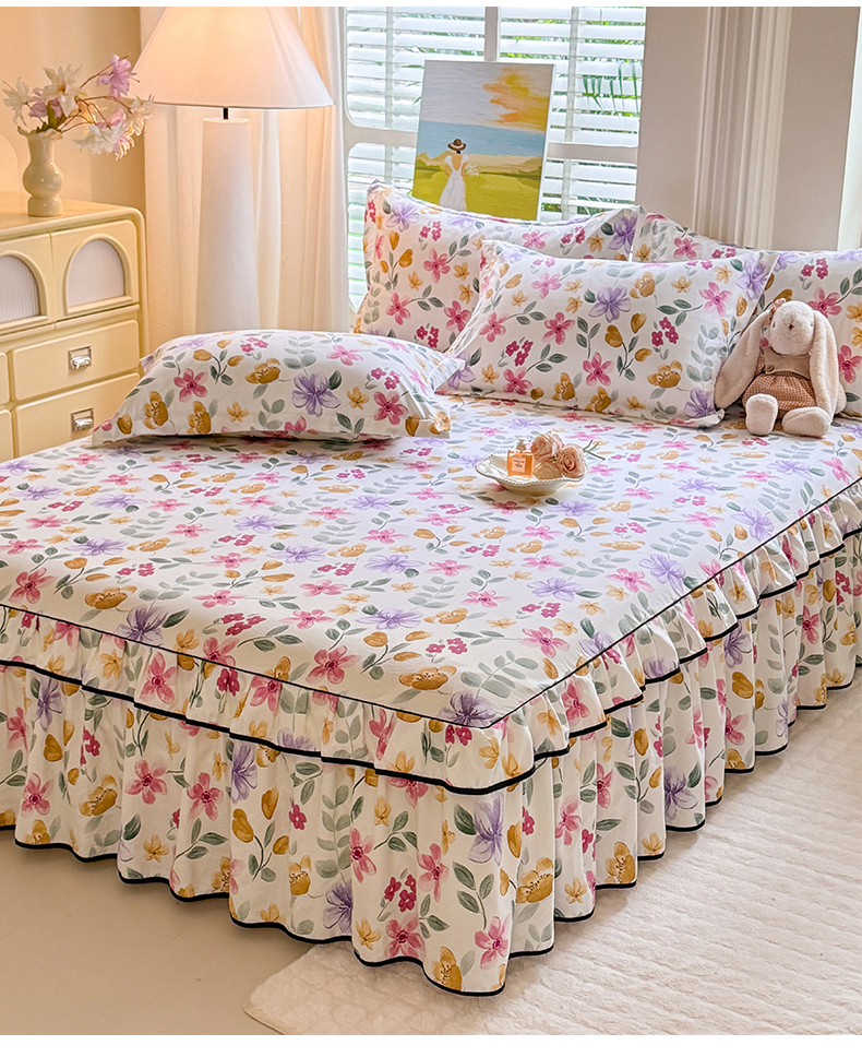 • 91家纺网 家纺一手货源 找家纺 优家居 2026新款A类水洗棉床裙单件三件套皱皱纱韩版公主风花边床罩直播爆款外贸定制 繁花似锦
