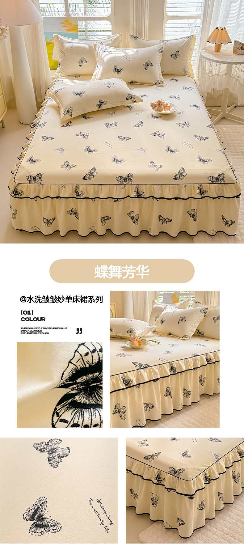 • 91家纺网 家纺一手货源 找家纺 (总)优家居 2025新品水洗棉夹棉床裙单件三件套韩版水洗皱皱纱夹棉床盖床罩直播爆款,莓好时光,爱心蝴蝶结,巴宝格-咖,豹纹-咖,蝶舞芳华,繁花似锦,粉色猫猫,粉雾结语,花花田园,秘园絮语,陌上花开,紫雾花园