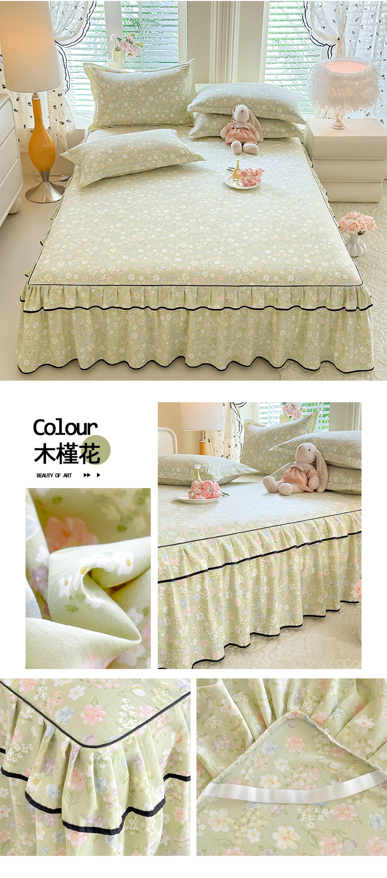 (总)优家居 2026新款A类水洗棉床裙单件三件套皱皱纱韩版公主风花边床罩直播爆款外贸定制,木槿花,一口葡萄,欧若拉,小苍蓝,梦华录,海棠花颂,爱心蝴蝶结,巴宝格-咖,豹纹-咖,蝶舞芳华,繁花似锦,粉色猫猫,粉雾结语,花花田园,莓好时光,秘园絮语,陌上花开,紫雾花园