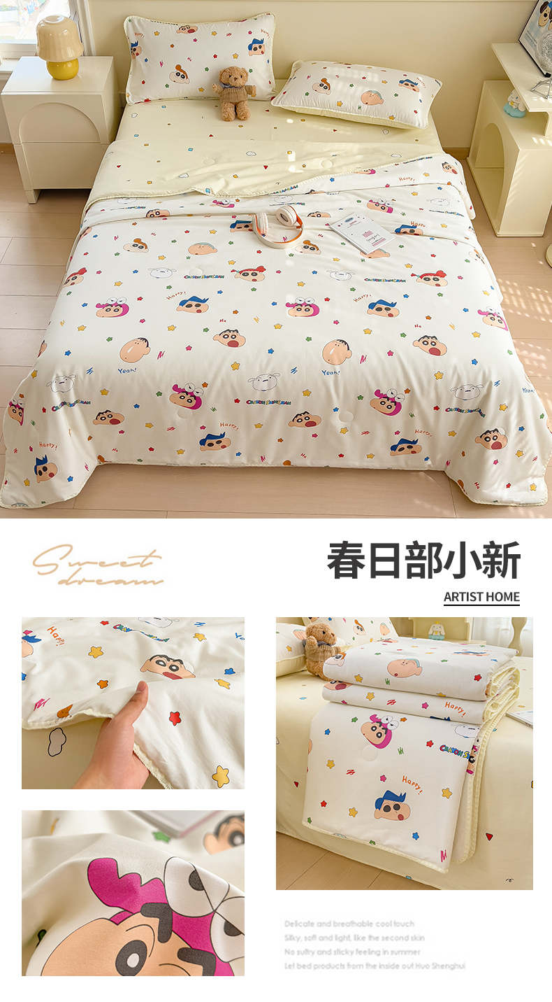 (总)兄弟坊 2026新款正版授权卡通全棉13370印花夏被夏凉被儿童被 夏被四件套,蜡笔小伙伴,云朵蜡笔小新,春日部小新,粉雾凯蒂猫,牛奶玉桂狗,甜酷凯蒂猫,晚安玉桂狗,小新快乐星球,星舰蓝奥特,紫梦库洛米