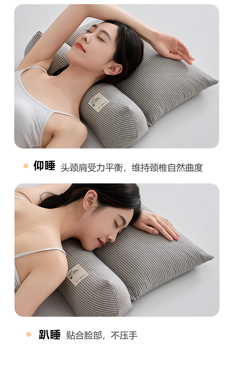 商品名称:乐可 2026新款条纹生态荞麦组合枕枕头枕芯 生态组合枕-杏仁